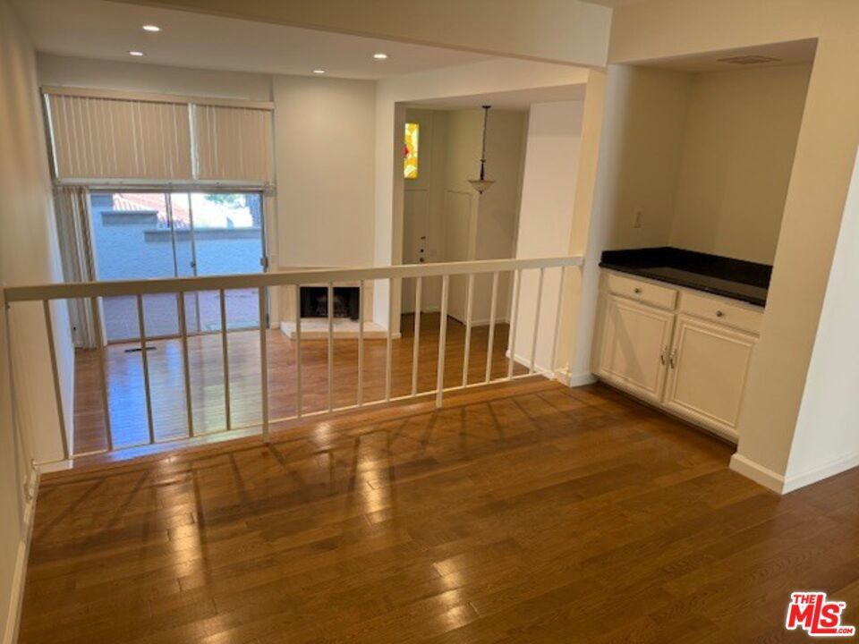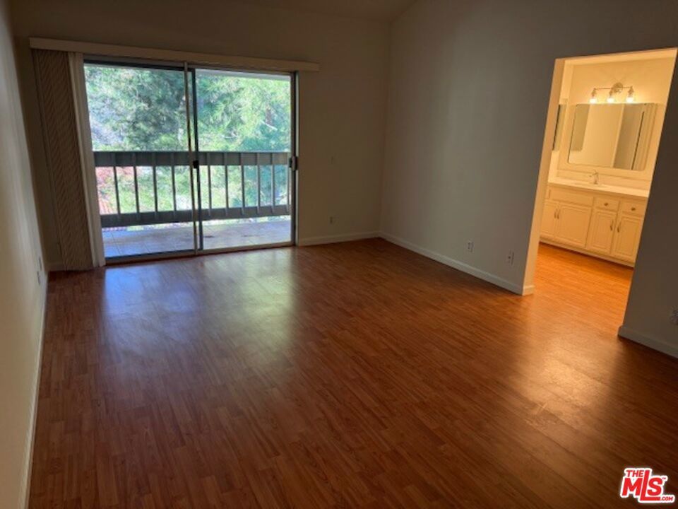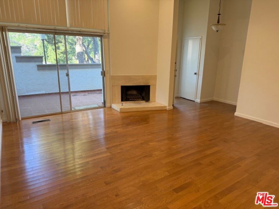 Highly desirable E-Plan with all 3 bedrooms upstairs. This property features hardwood floors. Living Room with fireplace that opens onto an enclosed patio with wonderful Mountain and Greenbelt view. There is a dining area. The Eat-In Kitchen features a new countertop, sink and faucet plus a new refrigerator. There is also a range and dishwasher. Off the kitchen is a laundry room. Plus there is a guest bathroom. Upstairs are 3 bedrooms, which includes a primary bedroom with balcony and en-suite bathroom with new countertop with double sinks. 2 additional bedrooms plus full bathroom. Association pool and spa. Rent includes water. Some new window treatments have been ordered.