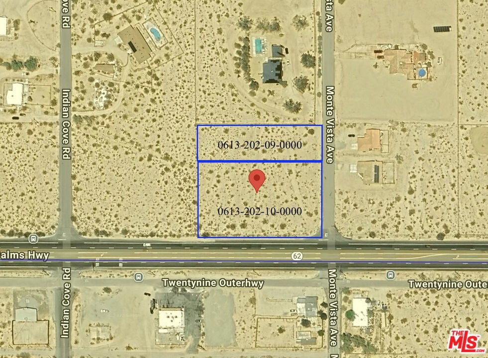 Properties being sold in conjunction with the lot next door, APN: 0613-202-09-0000; buyer to do their own due diligence regarding what can be constructed on both lots. Properties located on a corner of Twentynine Palms Highway and Monte Vista Road.