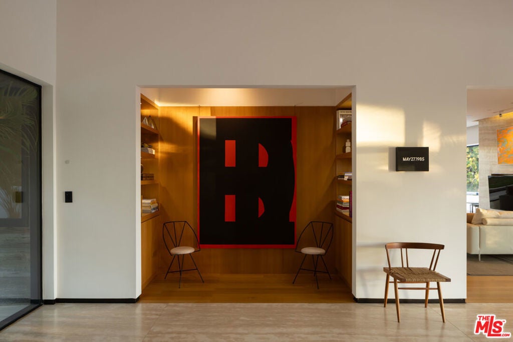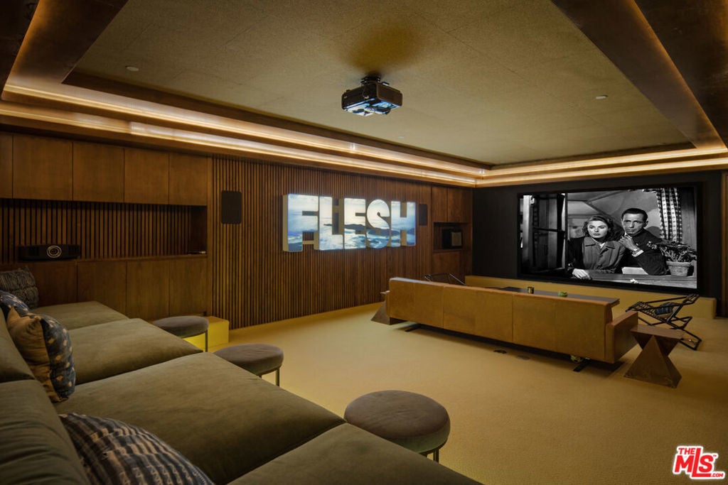 Crafted in 1957 for MGM's legendary General Manager Eddie Mannix, this Beverly Hills estate carries a cinematic lineage that has only been elevated over time. In 2010, the property underwent a meticulous reinvention - an almost complete rebuild that expanded the home from 5,000 to over 8,000 square feet - guided by a team of architects formerly with Pritzker Prize-winning David Chipperfield. Their influence is unmistakable in the restrained geometry, the Roman travertine detailing, and an intentional restraint that elevates simplicity into a statement. Clad entirely in reclaimed Montana oak, the facade sets the tone for interiors defined by natural materials, clean lines, and bespoke detailing. A private, gated drive leads to the entry gallery, setting up sight lines that capture Century City and ocean views on one end, and Downtown's skyline on the other. Enveloped by mature landscaping and sited on approx. 3/4 acres, this home feels like a rustic retreat while being moments from all the City has to offer. The main living area revolves around an open kitchen and a seamless indoor-outdoor flow created by pocketing glass doors that extend to the infinity pool, fire pit lounge, grassy yard, and a full outdoor entertaining sequence complete with bar, barbecue, and an expansive, shaded lower terrace. Inside, the west wing of the property offers two primary suites which each feature their own fireplaces, large dressing rooms, and spa-level baths with steam showers. One additional bedroom suite completes the first level. The second level offers an office, gym and three additional bedrooms. Seven total baths, including two luxuriously-appointed powder rooms, continue the home's palette of oak, stone, and bronze. Additional amenities include a fully soundproofed theater designed with the warmth of a living room with adjacent bar and glass-enclosed wine display. Convenient Crestron automation runs throughout, and storage is abundant, including attic access from both the garage and the primary closet. Gallery spaces, excellent wall space for art, and adjustable art lighting reflect the eye of the current owner, a notable collector with works placed in institutions such as LACMA and Tate Modern. Positioned within one of Beverly Hills' most discreet and desirable pockets, north of Sunset Blvd., this estate pairs architectural intention with privacy, views, and a timeless material vocabulary - an understated yet commanding retreat above the city.