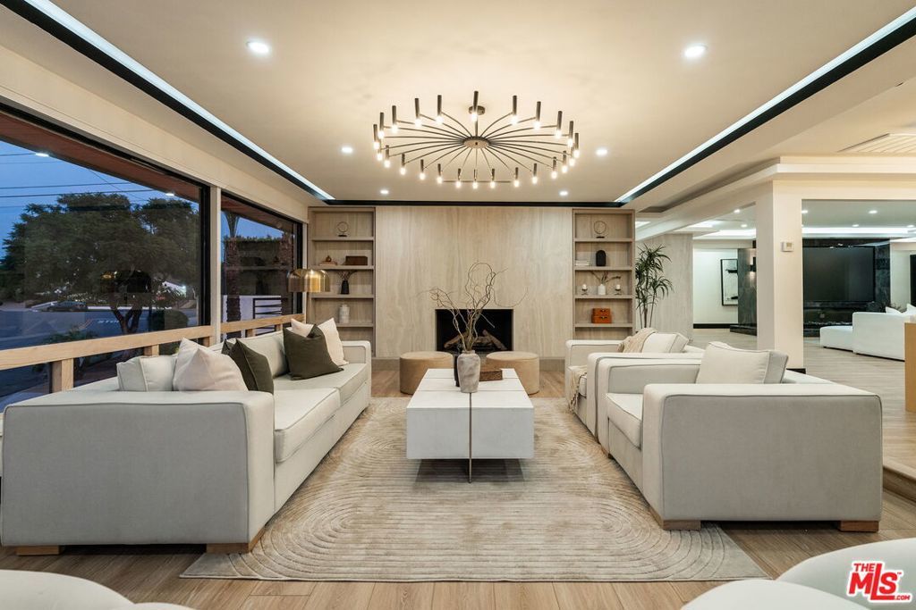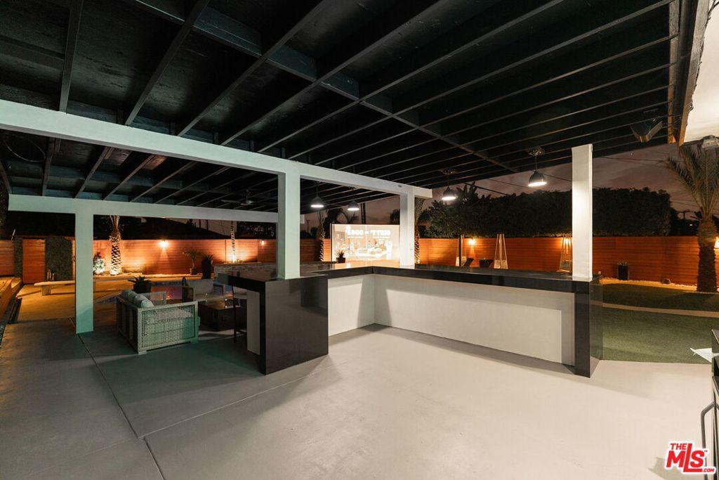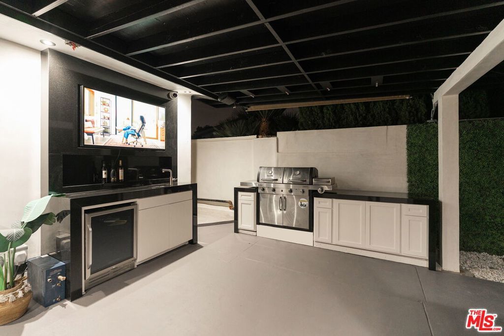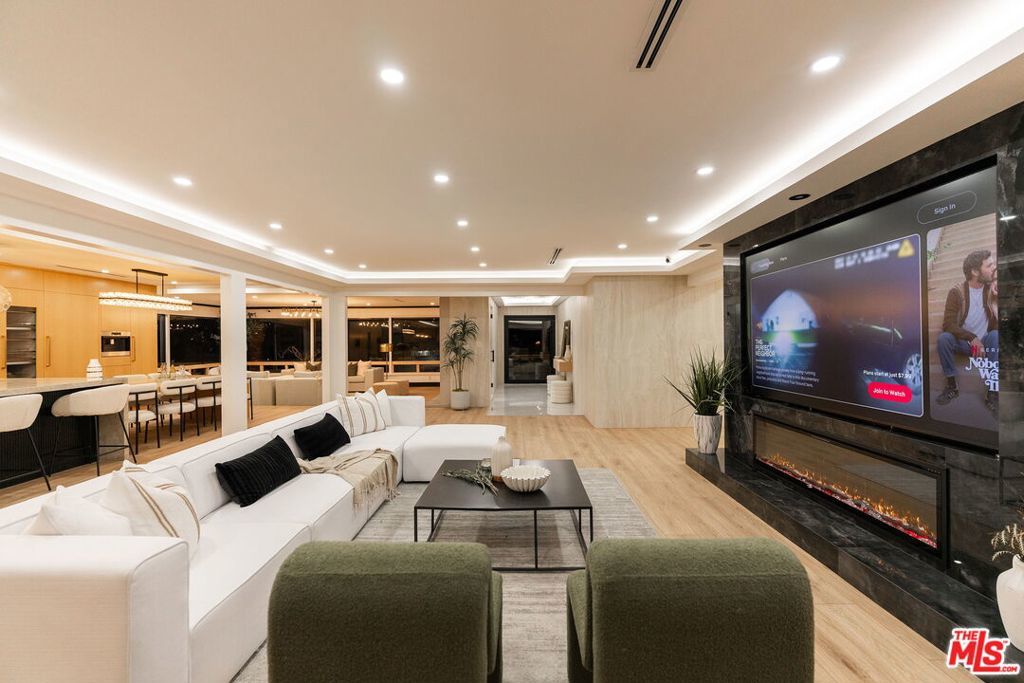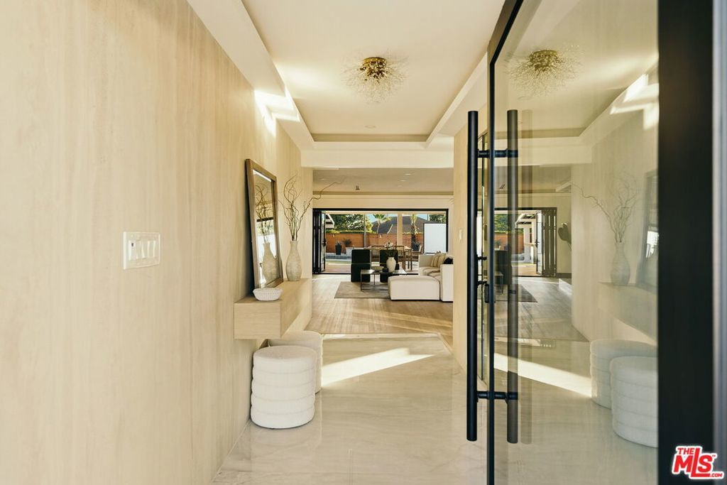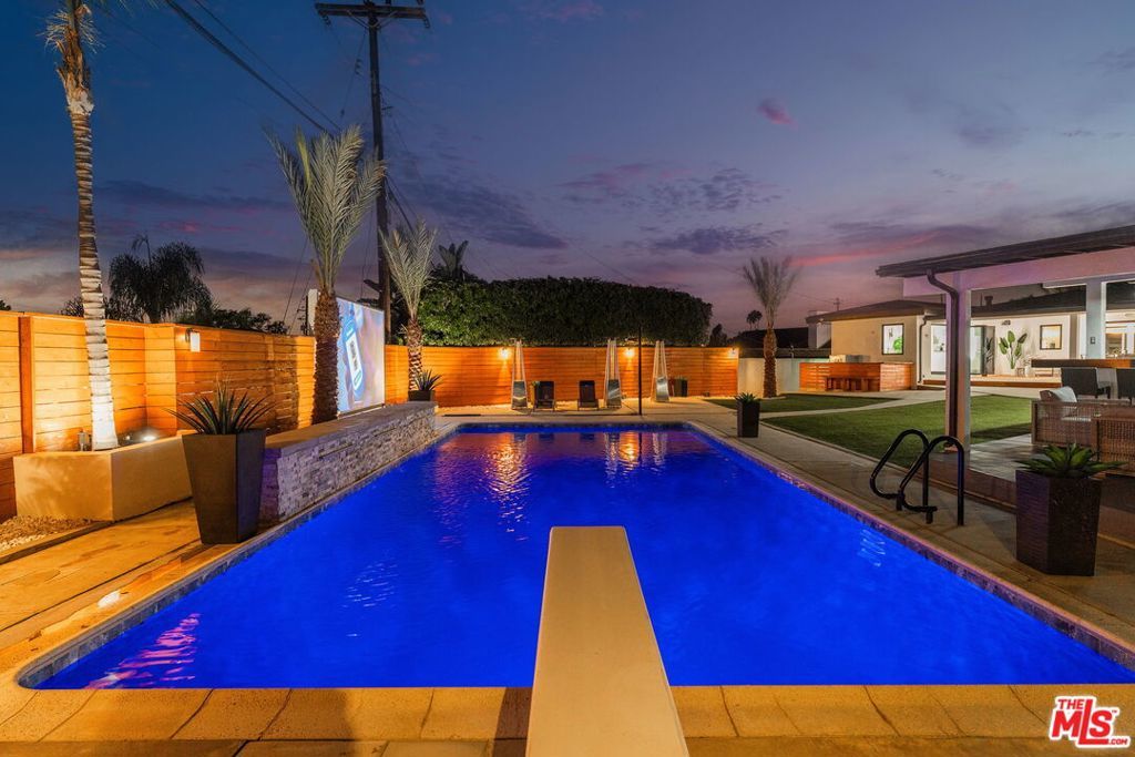 Welcome to this stunning contemporary home in the desirable Ladera Heights neighborhood, where modern elegance meets exceptional functionality. As you walk in through the impressive pivot front door, you are greeted by a sophisticated foyer featuring a wine glass enclosed display and a beautifully designed cove ceiling entry that sets the tone for the rest of the home. The inviting open floor plan seamlessly integrates the family room, which impresses with a state-of-the-art 100-inch TV and a cozy electric fireplace, while the living room features built-in bookshelves and expansive window walls that showcase breathtaking views of city lights and treetops, offering a perfect space for both relaxation and entertainment. Adjacent to the kitchen is a dedicated dining room, thoughtfully designed to accommodate gatherings with seating for eight at the dining table and four at the island counter top. The gourmet kitchen itself is a chef's dream, boasting an over sized island with Taj Mahal stone counter tops and a waterfall edge, complemented by custom cabinets and high-end Thermador appliances including a built-in refrigerator, freezer, wine cooler, and a Wolf 48-inch stove equipped with a pot filler overhead. Additional culinary conveniences include two ovens, a speed oven, two Bosch dishwashers, and a built-in coffee maker for your daily lattes. An accordion window perched above the farmhouse sink adds a unique touch, seamlessly connecting the indoor space to the outdoors, while three additional accordion doors throughout the home invite in natural light and fresh air. The primary bedroom suite serves as a personal sanctuary, complete with a lavish walk-in closet featuring built-in storage, an island, and chandelier, along with a stunning double shower that includes body sprays and a steam feature. Step outside to discover the outdoor space, truly an entertainer's paradise, featuring a spacious deck off the living room and primary bedroom, along with a fully equipped outdoor kitchen that boasts an eat-in bar accommodating approximately 10 or more people, topped with beautiful black onyx granite and a waterfall edge. This space also includes a built-in BBQ, sink, mini refrigerator, and TV, as well as a projector with an impressive 18 to 20-foot wall screen for movie nights. The over sized pool with a dramatic waterfall and beautifully landscaped grounds with palm trees and artificial grass complete this incredible outdoor oasis. This exceptional property also boasts all new electrical, plumbing, and roofing, as well as a new HVAC system with two separate Google thermostats for optimal climate control. Speakers throughout the primary bedroom and powder room enhance your living experience, making this home perfect for modern living. With a 3 car garage equipped with new doors and an EV charger, and conveniently located near shopping options like Trader Joe's, Sprouts, and Amazon Fresh, as well as just minutes from the beaches and LAX, this home offers an unparalleled lifestyle of luxury and convenience.