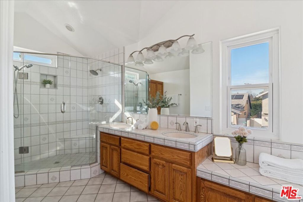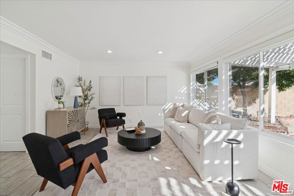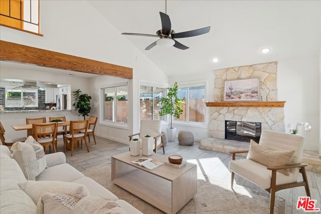 Two-story cozy pool home tucked away on a quiet Simi Valley cul-de-sac, featuring 4 bedrooms and 2.5 baths with all bedrooms located upstairs. A spacious living room with fireplace and vaulted ceilings opens to the dining area. The gourmet kitchen with granite countertops and stainless-steel appliances flows into the family room, offering views of the sparkling pool, spa, and fire pit perfect for entertaining.Upstairs features a large primary suite, three additional bedrooms, a full bath, and a versatile loft/den. Enjoy energy savings with a leased solar panel system already in place (buyer to assume the existing lease), along with a whole-house fan for added energy efficiency. Conveniently located near top-rated schools, walking paths, and Sequoia Park.