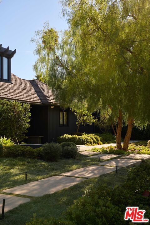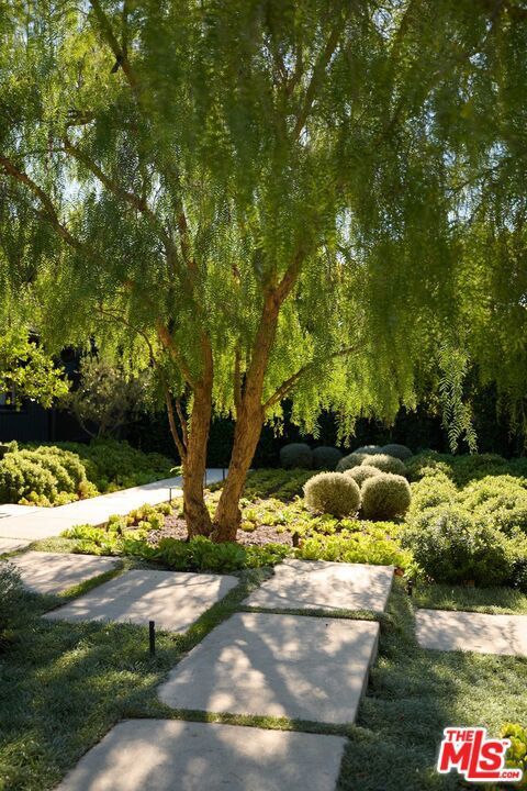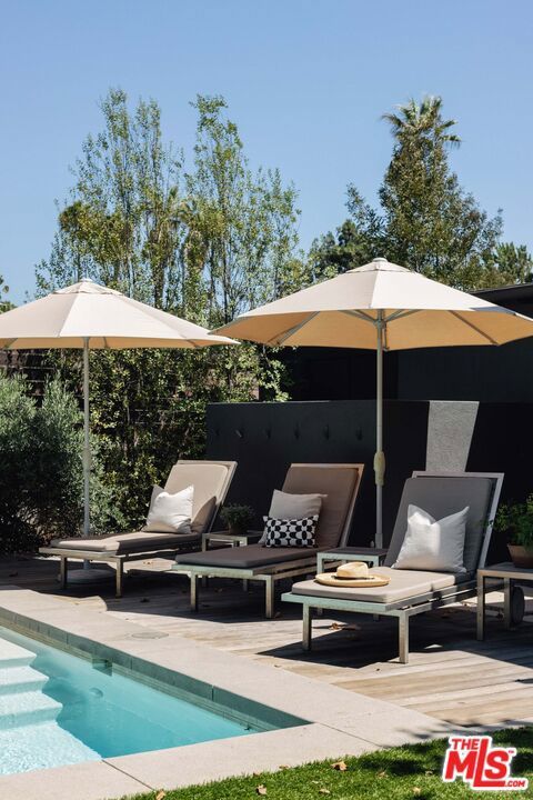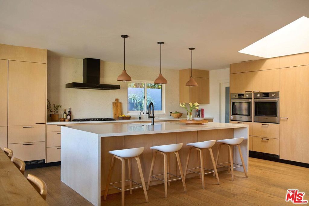 Renovated by renowned architecture firm Rios Clementi Hale, this contemporary single-story home is a rare offering on the golf course at Hancock Park's coveted Wilshire Country Club. Set behind a private entrance and lushly landscaped front yard, the residence unfolds with a sense of calm and modern California ease. With sightlines to the backyard, the entry opens into the spacious living room, with 20-foot ceilings that rise above a wood-burning fireplace, custom built-ins, and a wall of large sliding doors frame the sunny backyard, inviting effortless indoor-outdoor flow. The eat-in chef's kitchen serves as a warm gathering space, complete with bespoke finishes and an adjacent en-suite guest bedroom. On the other side of the house, the primary retreat is its own sanctuary, with expansive glass sliders, a spa-like bath with a soaking tub, and a large walk-in closet. Two additional en-suite bedrooms offer comfort and privacy for family or visitors. Outside, the generous yard embodies quintessential California living, with a heated saltwater pool, wood deck, and a covered pergola, ideal for outdoor dining. A detached guest house with its own bathroom extends the property's versatility, while the converted garage, currently outfitted as a screening room, provides even more possibility. Thoughtfully designed and bathed in natural light, this home offers sophisticated, effortless living in one of Hancock Park's most desirable settings.