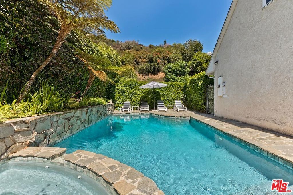 Nestled in the beautiful canyon of Lower Bel Air, 1041 Chantilly Road is a charming two-story residence offering four bedrooms and six bathrooms across just under 3,000 square feet. Beautifully maintained, this home seamlessly blends privacy, and classic California elegance. All bedrooms are located upstairs, each featuring its own ensuite bathroom for maximum comfort and privacy. The main level showcases a gracious living room with fireplace, a warm family room with fireplace and wet bar, a formal dining room, and a cozy, well-appointed kitchen. A two-car garage with direct access to the kitchen provides exceptional convenience for everyday living.Both the living room and kitchen open to the private backyard, creating effortless indoor-outdoor flow. The serene outdoor oasis features a swimming pool, spa, and multiple areas for al fresco dining and relaxation, all surrounded by lush, mature greenery.This is a rare opportunity to enjoy timeless elegance and tranquil living in one of Bel Air's most desirable and sought-after locations.