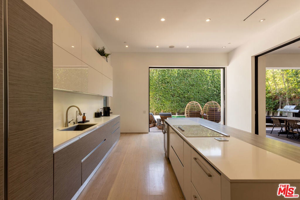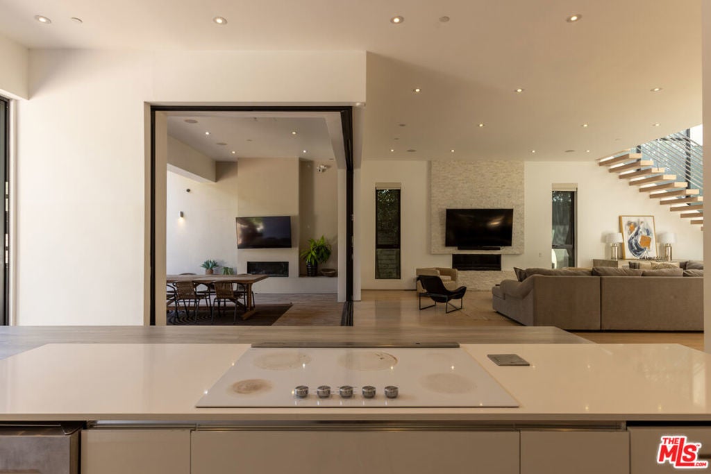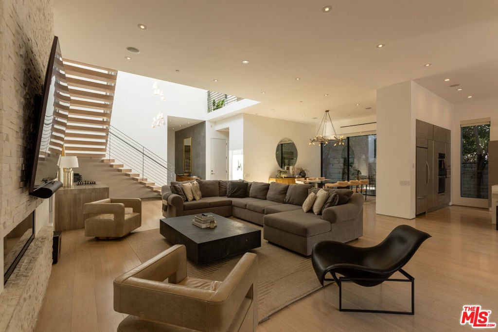 Located in the heart of Beverly Grove, this modern home offers a great mix of style, comfort, and space. With about 4,000 square feet, it features 5 bedrooms and 6 bathrooms - all en suite - giving everyone plenty of privacy. Willing to sell furnished or unfurnished. Inside, you'll find soaring ceilings and a striking floating staircase that add to the open, airy feel. The kitchen is fully equipped with high-end appliances, perfect for cooking or entertaining. The living room, complete with a fireplace, opens smoothly to the backyard, creating an easy flow between indoor and outdoor spaces. The backyard is a true retreat, with a saltwater pool, spa, mature landscaping, and plenty of room for relaxing or hosting. There's also an outdoor fireplace and TV area that make it a great spot to unwind with friends or family. The master suite stands out with its own fireplace, walk-in closet, sundeck, and a luxurious bathroom with Porcelanosa finishes. The home is also outfitted with smart technology and solar panels for energy efficiency. This gated property offers both privacy and convenience, just minutes from The Grove and the Sunset Strip - some of LA's best dining, shopping, and entertainment. If you want a stylish, comfortable home with plenty of room to live and entertain, 132 N Laurel Ave is a wonderful choice.