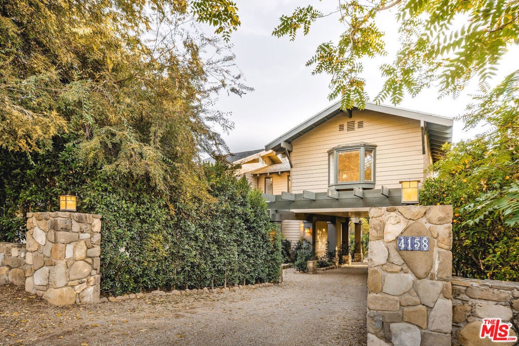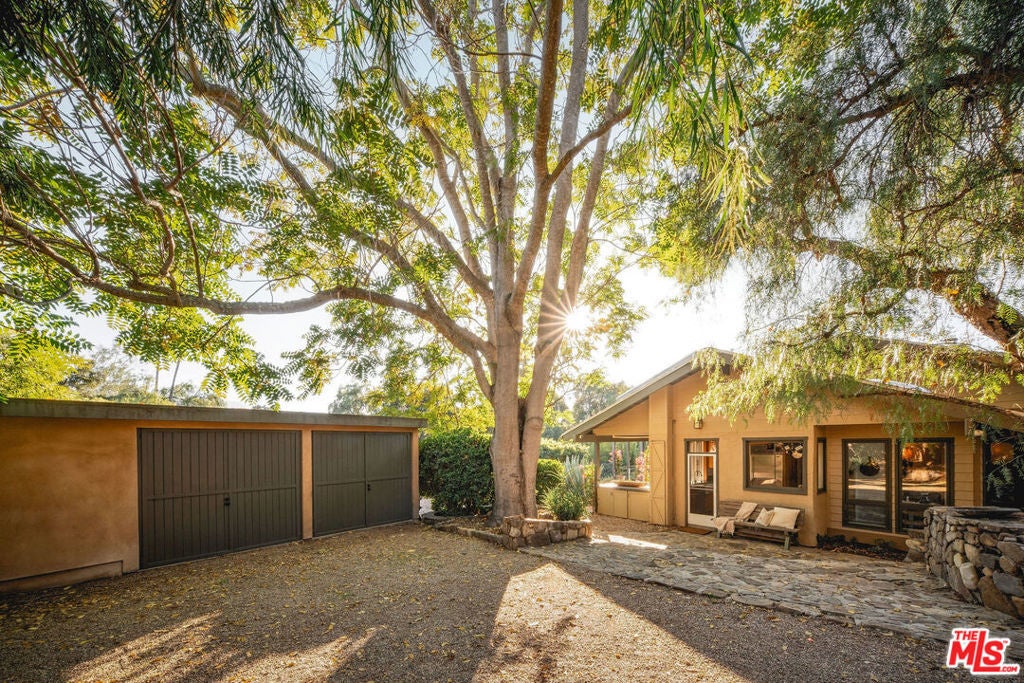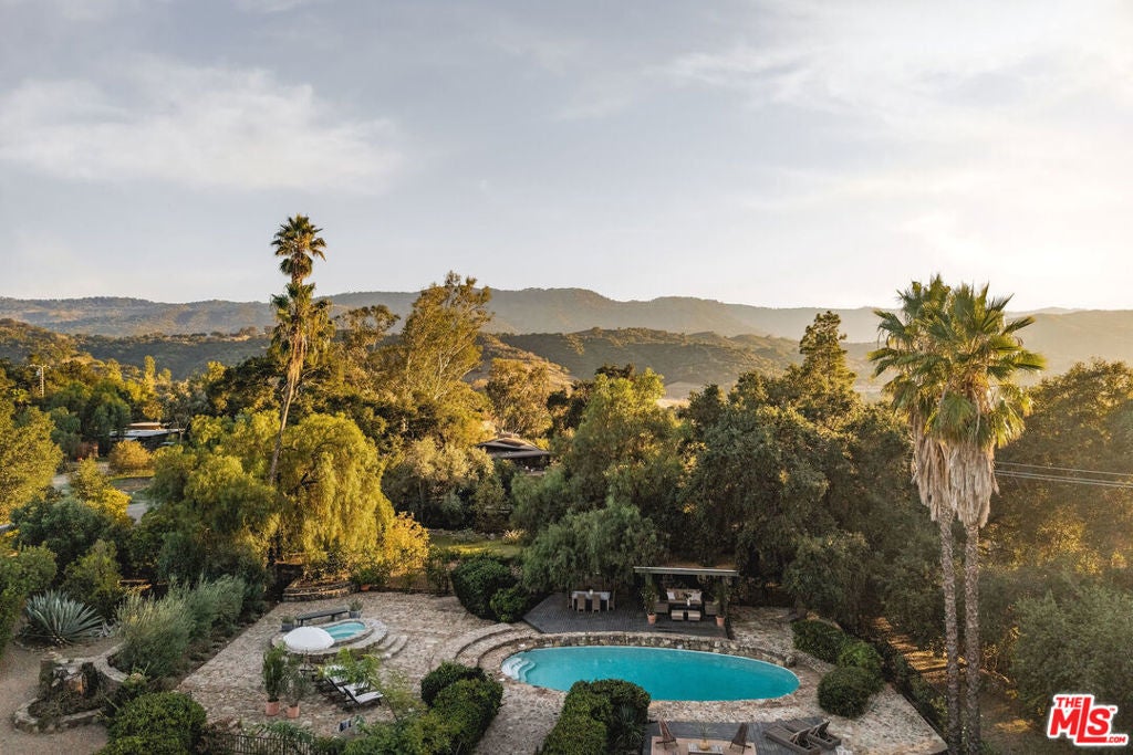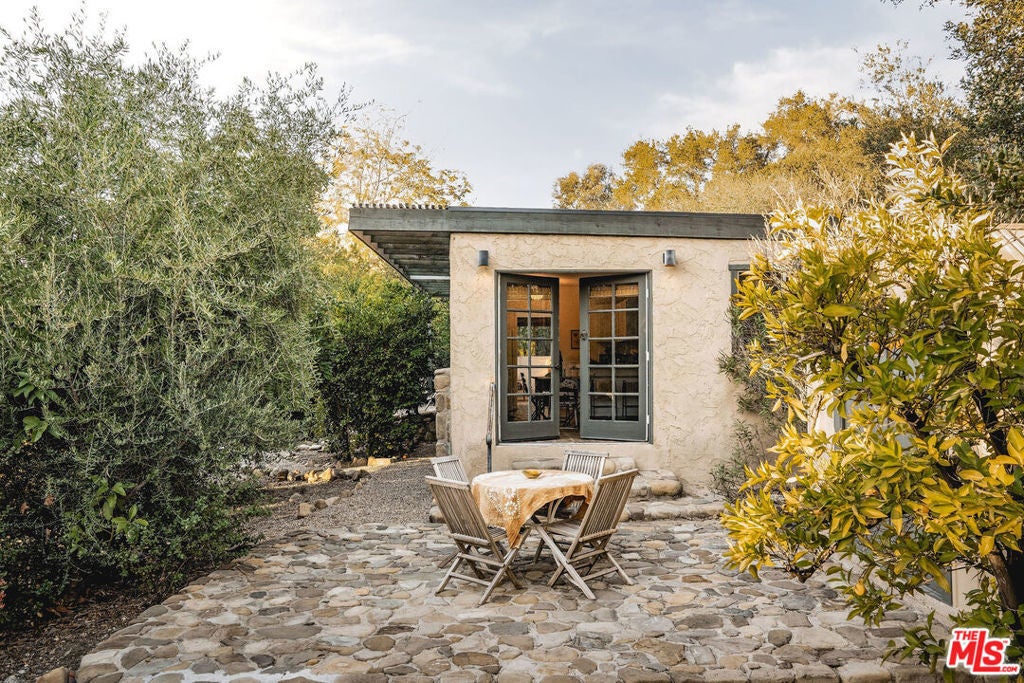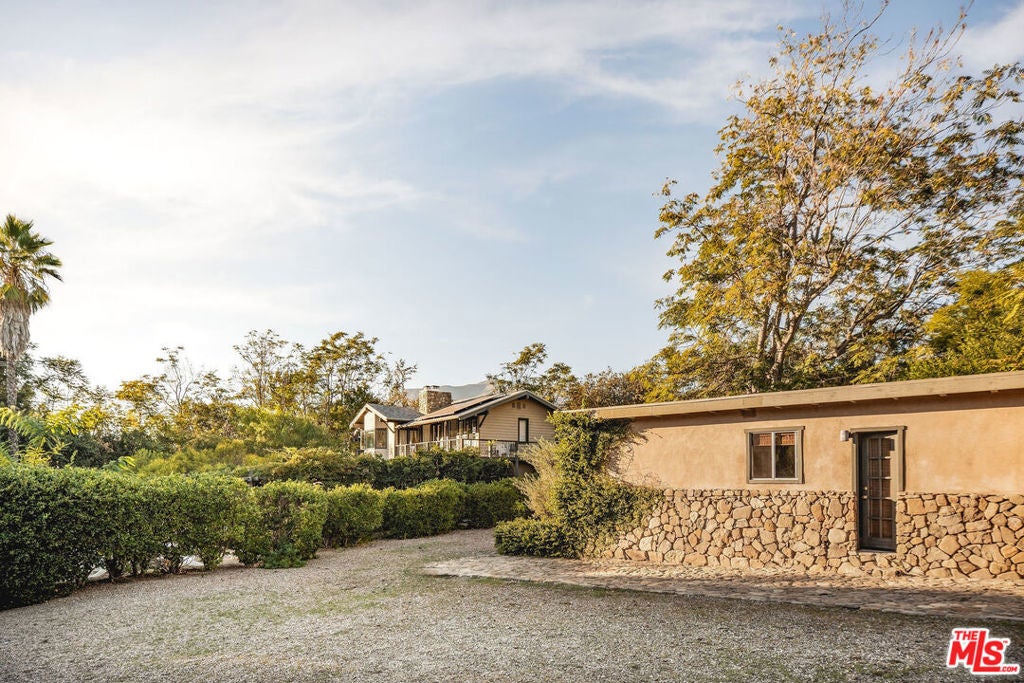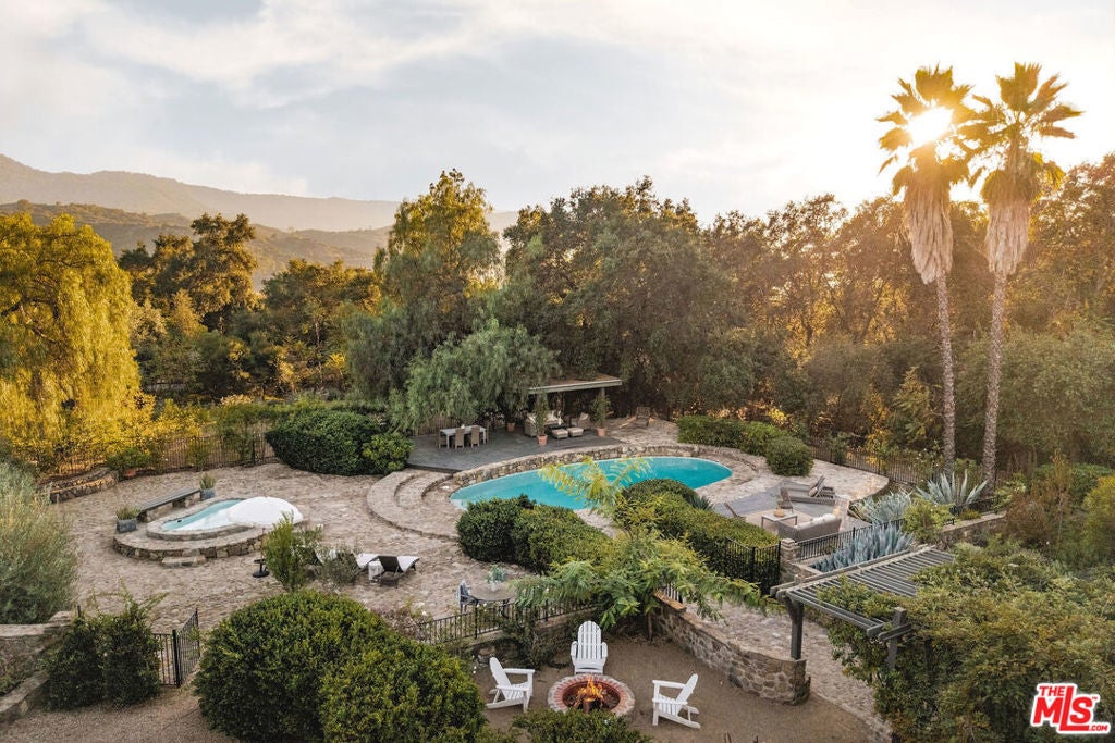 Set against Ojai's storied East End backdrop, and recently featured in The New York Times, 4158 Grand Avenue is a soulful five-bedroom retreat where timeless design and natural beauty converge. Three of the home's bathrooms have just been updated with hand-troweled plaster finishes and new flooring - an understated, contemporary refresh that feels chic yet seamlessly in tune with the home's original character. Hidden behind citrus groves and mature oaks, the property captures the essence of relaxed California living-warm, grounded, and effortlessly elegant. Inside, handcrafted stone fireplaces, vaulted ceilings, and the rich texture of brick-and-wood floors create a sense of comfort and continuity throughout. Sunlight fills each room, highlighting thoughtful architectural details and inviting spaces designed for connection and calm. The kitchen blends vintage charm with everyday functionality, opening toward the gardens and surrounding greenery. Five fireplaces anchor the home's living and sleeping spaces, including two in the serene primary suite, where a private sitting room, dual baths, view decks, and cedar sauna form a true sanctuary. Throughout the home, French doors and picture windows frame lush garden views, drawing the outdoors in and emphasizing the property's sense of seclusion and harmony. Four of the five bedrooms include en-suite baths, offering comfort and privacy for family and guests alike. Outdoors, the estate's saltwater pool, spa, and wisteria-covered pergola unfold amid native landscaping, fruit trees, and meandering paths. Beyond the main residence, a detached three-car garage with art studio, laundry, and full bath expands the home's versatility, while a separate one-bedroom guest house - privately tucked at the rear of the property - offers a welcoming space for guests or creative pursuits. Located just minutes from Ojai's farmers market, trailheads, and celebrated local restaurants, 4158 Grand Avenue offers an exceptional balance of privacy, comfort, and connection - an Ojai sanctuary that feels both timeless and alive.