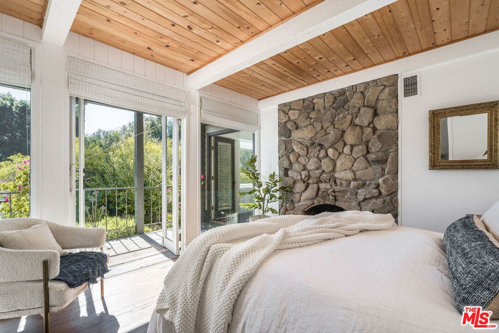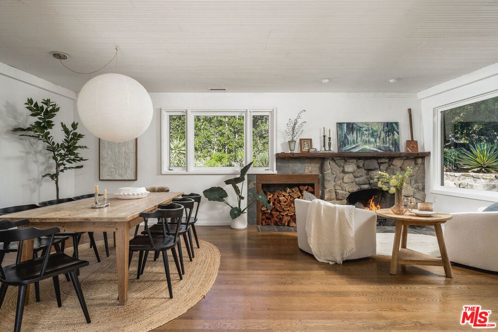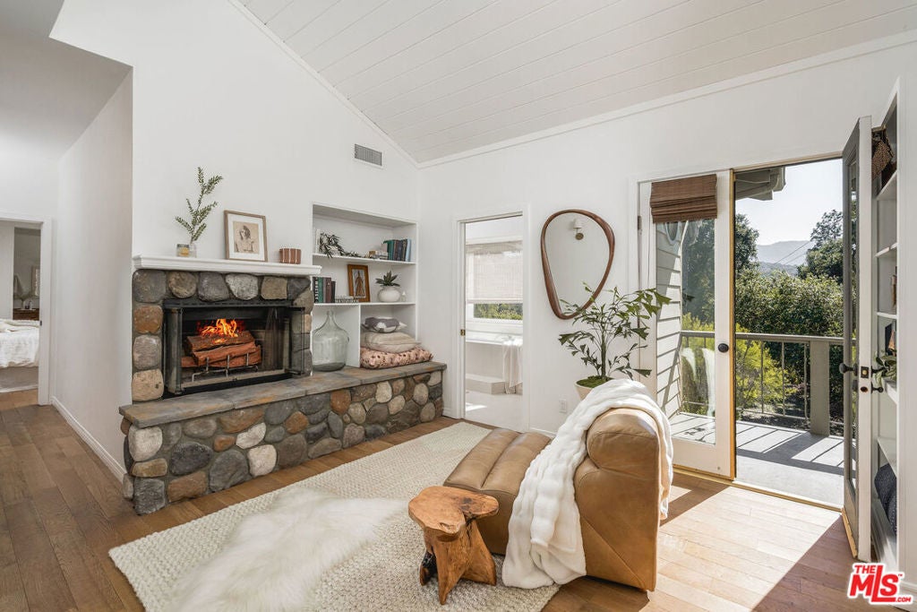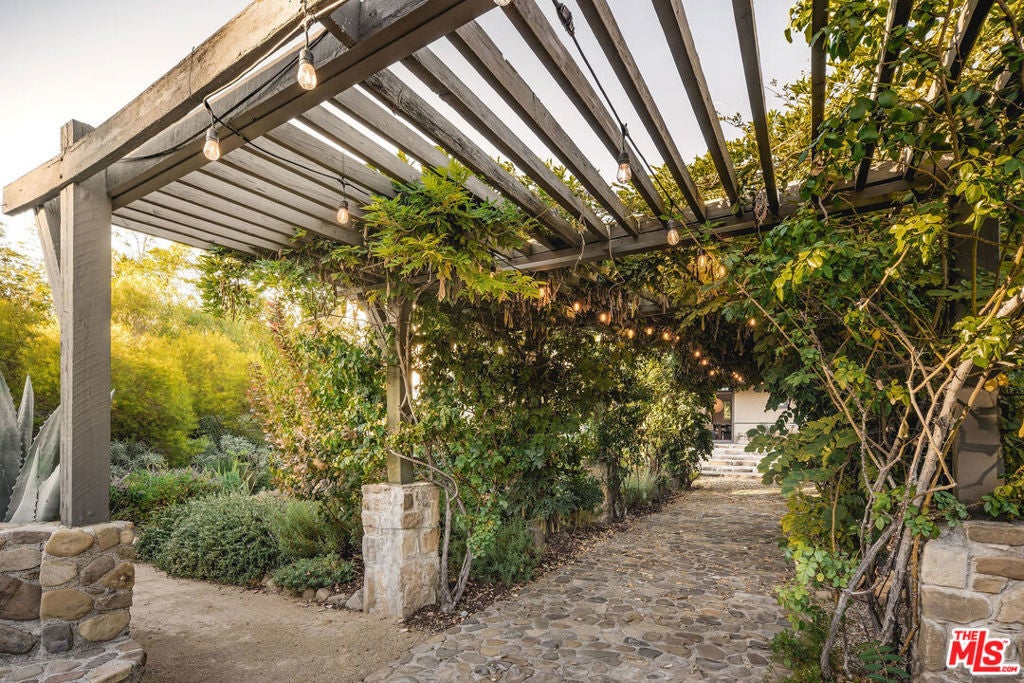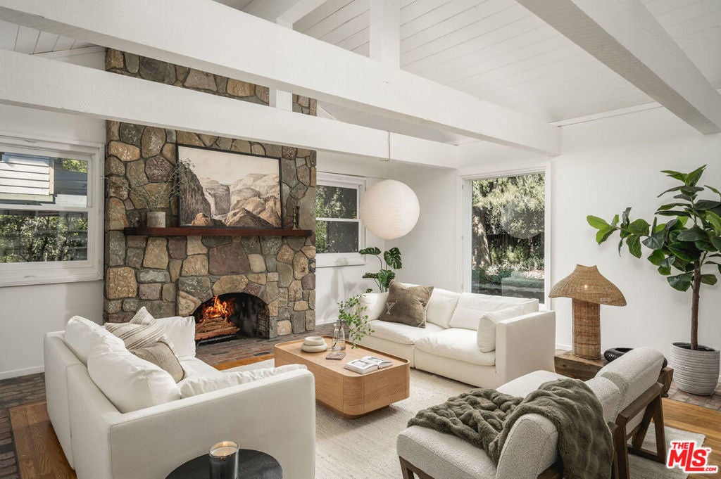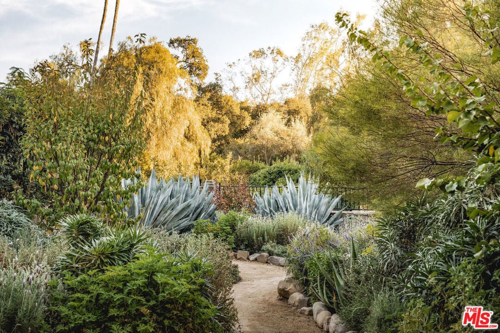 Set against Ojai's storied East End backdrop, and recently featured in The New York Times, 4158 Grand Avenue is a soulful five-bedroom retreat where timeless design and natural beauty converge. Three of the home's bathrooms have just been updated with hand-troweled plaster finishes and new flooring - an understated, contemporary refresh that feels chic yet seamlessly in tune with the home's original character. Hidden behind citrus groves and mature oaks, the property captures the essence of relaxed California living-warm, grounded, and effortlessly elegant. Inside, handcrafted stone fireplaces, vaulted ceilings, and the rich texture of brick-and-wood floors create a sense of comfort and continuity throughout. Sunlight fills each room, highlighting thoughtful architectural details and inviting spaces designed for connection and calm. The kitchen blends vintage charm with everyday functionality, opening toward the gardens and surrounding greenery. Five fireplaces anchor the home's living and sleeping spaces, including two in the serene primary suite, where a private sitting room, dual baths, view decks, and cedar sauna form a true sanctuary. Throughout the home, French doors and picture windows frame lush garden views, drawing the outdoors in and emphasizing the property's sense of seclusion and harmony. Four of the five bedrooms include en-suite baths, offering comfort and privacy for family and guests alike. Outdoors, the estate's saltwater pool, spa, and wisteria-covered pergola unfold amid native landscaping, fruit trees, and meandering paths. Beyond the main residence, a detached three-car garage with art studio, laundry, and full bath expands the home's versatility, while a separate one-bedroom guest house - privately tucked at the rear of the property - offers a welcoming space for guests or creative pursuits. Located just minutes from Ojai's farmers market, trailheads, and celebrated local restaurants, 4158 Grand Avenue offers an exceptional balance of privacy, comfort, and connection - an Ojai sanctuary that feels both timeless and alive.