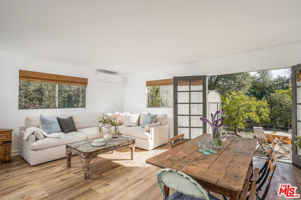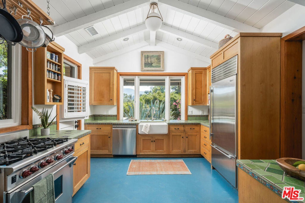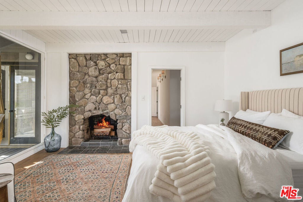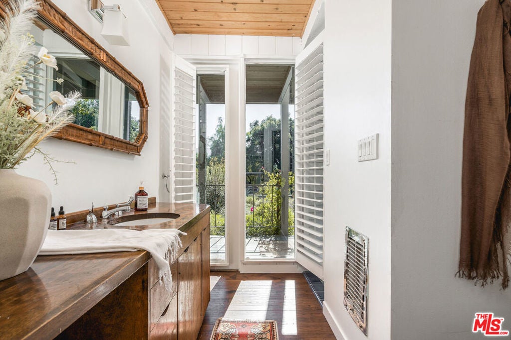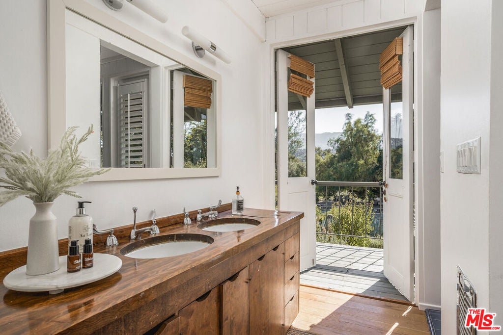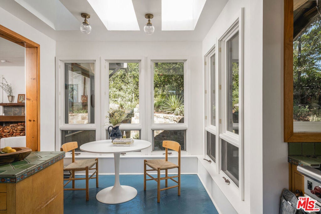 Set against Ojai's storied East End backdrop, and recently featured in The New York Times, 4158 Grand Avenue is a soulful five-bedroom retreat where timeless design and natural beauty converge. Three of the home's bathrooms have just been updated with hand-troweled plaster finishes and new flooring - an understated, contemporary refresh that feels chic yet seamlessly in tune with the home's original character. Hidden behind citrus groves and mature oaks, the property captures the essence of relaxed California living-warm, grounded, and effortlessly elegant. Inside, handcrafted stone fireplaces, vaulted ceilings, and the rich texture of brick-and-wood floors create a sense of comfort and continuity throughout. Sunlight fills each room, highlighting thoughtful architectural details and inviting spaces designed for connection and calm. The kitchen blends vintage charm with everyday functionality, opening toward the gardens and surrounding greenery. Five fireplaces anchor the home's living and sleeping spaces, including two in the serene primary suite, where a private sitting room, dual baths, view decks, and cedar sauna form a true sanctuary. Throughout the home, French doors and picture windows frame lush garden views, drawing the outdoors in and emphasizing the property's sense of seclusion and harmony. Four of the five bedrooms include en-suite baths, offering comfort and privacy for family and guests alike. Outdoors, the estate's saltwater pool, spa, and wisteria-covered pergola unfold amid native landscaping, fruit trees, and meandering paths. Beyond the main residence, a detached three-car garage with art studio, laundry, and full bath expands the home's versatility, while a separate one-bedroom guest house - privately tucked at the rear of the property - offers a welcoming space for guests or creative pursuits. Located just minutes from Ojai's farmers market, trailheads, and celebrated local restaurants, 4158 Grand Avenue offers an exceptional balance of privacy, comfort, and connection - an Ojai sanctuary that feels both timeless and alive.