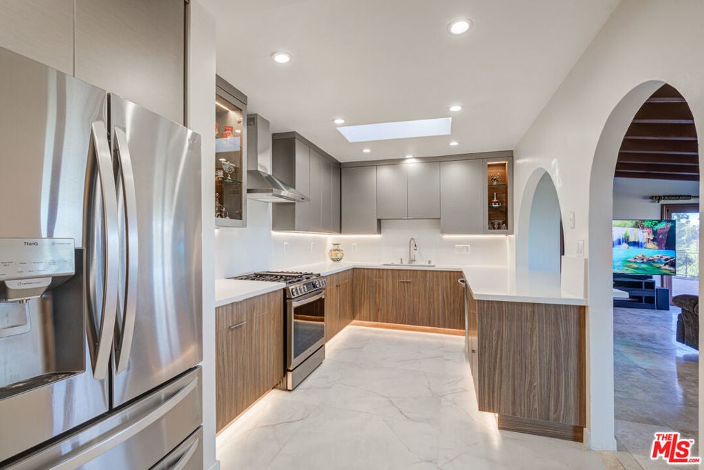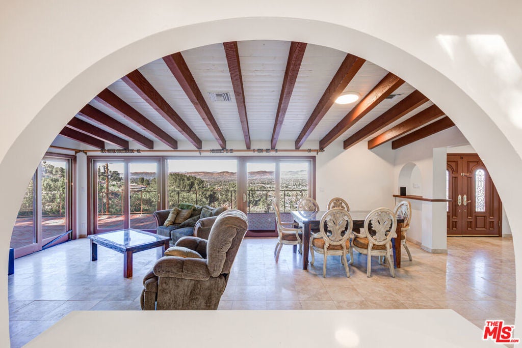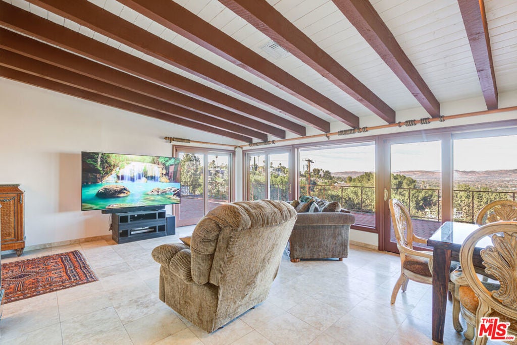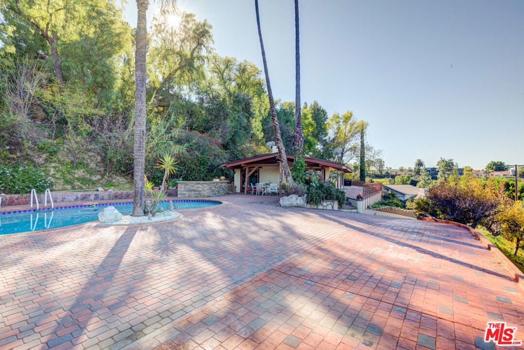 RARE ENCINO COMPOUND FOR LEASE! 4 bed, 3 bath updated home on a huge 36,000 square lot! If you are looking for endless views & privacy in the Encino hills, this home is the one for you. The long private driveway leads to an amazing scene - panoramic views of the valley and a gorgeous pool. There is also a ton of parking for guests - you can easily fit at least 10-15 cars. On the other side of exterior, enjoy the backyard area. There is a garage for extra storage or parking. As you walk into the home, you are invited into a spacious living room with a fireplace, windows for natural light and views, and a sliding door that leads to the exterior. There is also a bedroom/bathroom that leads to the exterior. Enjoy the updated bathrooms and kitchen - the kitchen has all new appliances! Next to the kitchen is a large open dining room with extra living room space for entertaining. On the other side of the house you will be welcomed to three bedrooms and 2 large master style bathrooms. The master suite is fantastic with a beautiful en suite bathroom that leads to the backyard/exterior. Enjoy the new laminate flooring and mixed marble/tile throughout the home. Super cozy home on on a very rare huge lot with rare views and privacy.