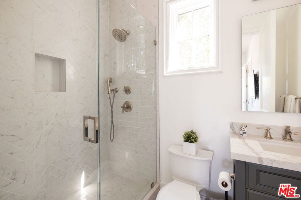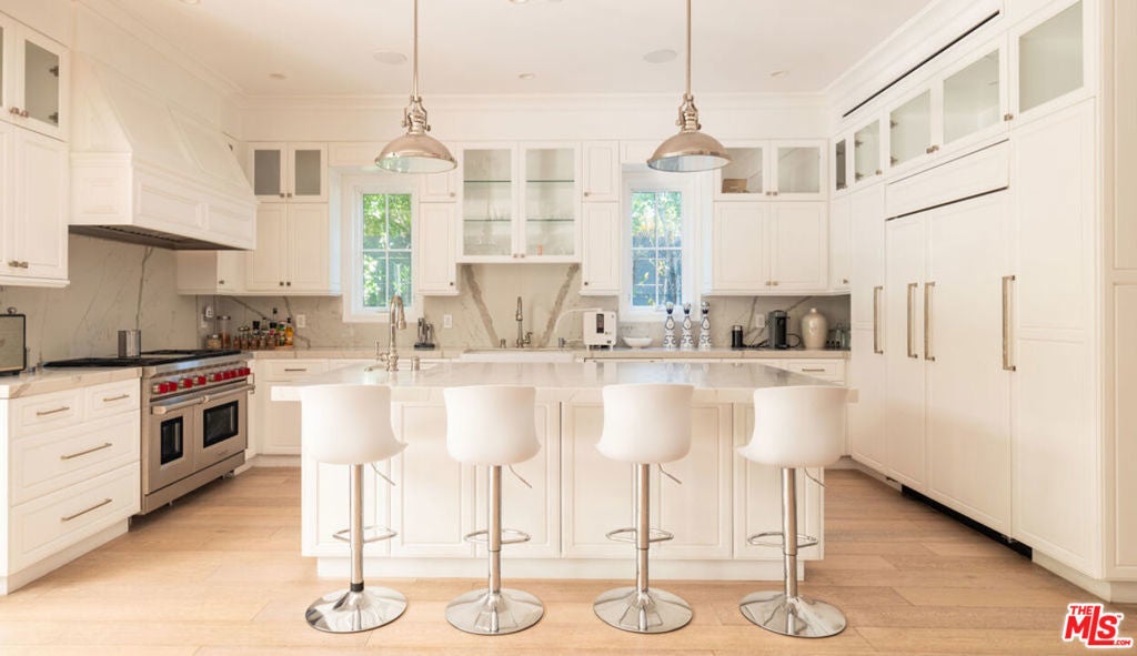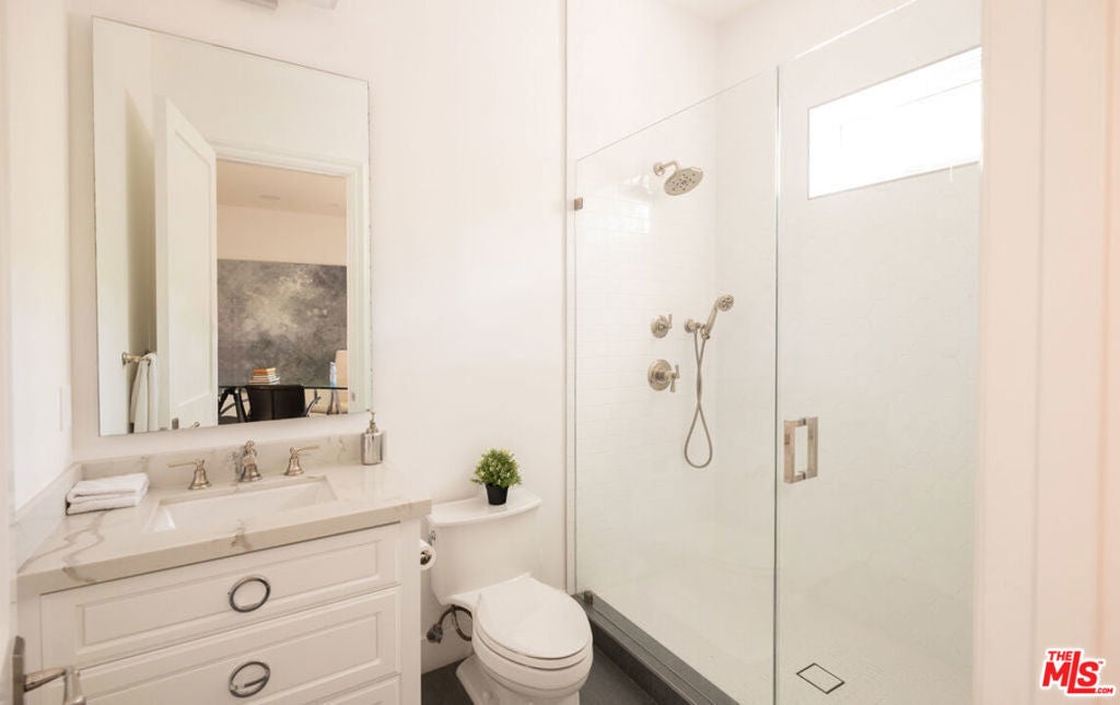 Welcome to this privately nestled true Traditional in the Melrose Village FULLY FURNISHED! On a gated and secured lot sits a 3,597 sqft 4 bed 5 Bath home with an oversized rooftop deck with 360 degree views of the LA skyline. High ceilings throughout provide a grand feel that leads you out onto a privately hedged backyard oasis. Built to take full advantage of the indoor outdoor living that LA is made for. Large spa and pool is surrounded by space to entertain and relax. The first floor is accommodated by a formal dining room, wine cellar, as well as an en suite guest bedroom. Upstairs the primary suite is accompanied by 2 more bedrooms and a laundry room for easy access. Stairs lead to a generous rooftop deck overlooking LA. Centrally located, you are a short walk from the best shopping and restaurants la has to offer. Also available for sale at $4,200,000.