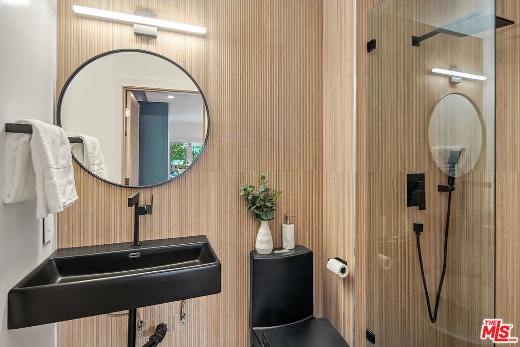 This expertly renovated, like-brand-new contemporary is optimized for the ideal indoor-outdoor Southern California lifestyle with a focus on recreation, tucked away on a coveted 'The Hills' cul-de-sac: Promising great value, the incredibly versatile backyard is perfect for entertaining with two covered patios, vast mahogany entertainer's deck, fire pit, heated swimming pool with water feature, spa, grassy yard, basketball free-throw line court, playhouse, and built-in barbecue! There is even a terraced organic vegetable garden for harvesting fresh home-grown fare. A fusion of varied texture and tone contribute to the exterior's curb appeal together with the lush, pristine gardens. Enter through a glass-paned pivot door to a double-height foyer illuminated by a large skylight above the staircase. Discover high-end finishes and wide-plank oak floors throughout. The living room features a bay window, cathedral ceiling, and a stylish quartz-clad fireplace with mantel. The formal dining room has a tray ceiling and large picture windows with sweeping views of the pool, valley, and surrounding greenery. The kitchen is fitted with a Forza porcelain double-sided waterfall island and matching backsplash with shelving, custom cabinetry, and top-of-the-line stainless-steel appliances including Wolf range, built-in coffee/espresso, and massive side-by-side refrigerator/freezer while adjacent breakfast nook is relaxing with a spectacular view. The family room is striking, with its magazine-worthy accent wall appointed with built-in cabinets, fireplace, and wine bar cellar creating a soothing atmosphere. Ground level offers a modern-design bathroom with exterior entrance, ideal for pool guests, plus an additional formal powder room. The separate office and light-filled in-law suite with attached bathroom complete the main floor in this elegant villa that can satisfy all family needs. Upstairs, through double doors is a spacious primary suite with marble fireplace and panoramic private balcony with spectacular vistas of the city, greenery, hills, Braemar, and the Valley beyond. Its spacious bathroom includes a vaulted ceiling with skylight, double-sink floating vanity, make-up desk, water closet, glass-enclosed shower with eucalyptus steam bath, and giant soaking tub. Several closets complete the ample spaces of the suite. Upper floor includes three more bedrooms and two en-suite bathrooms, one of which is Jack-and-Jill. Additional amenities include central vacuum, laundry chute, Nest smart home technology with all-in-one app control, built-in safe, new dual-zone AC/heat, and three-garage. Welcome to your new luxury lifestyle in 'The Hills' near Braemar and El Caballero golf clubs, schools and parks, the 101 Freeway, and the numerous shops and restaurants along Ventura Boulevard. Available with furnishings.