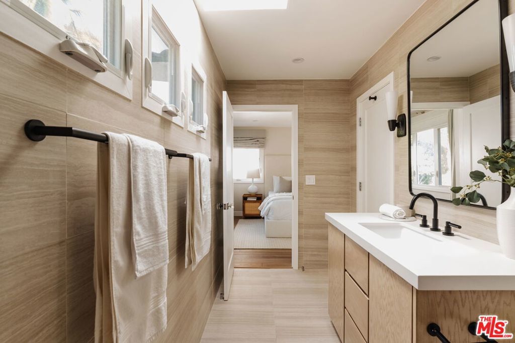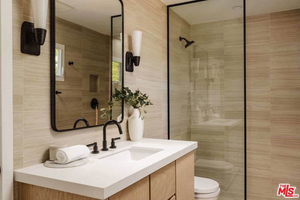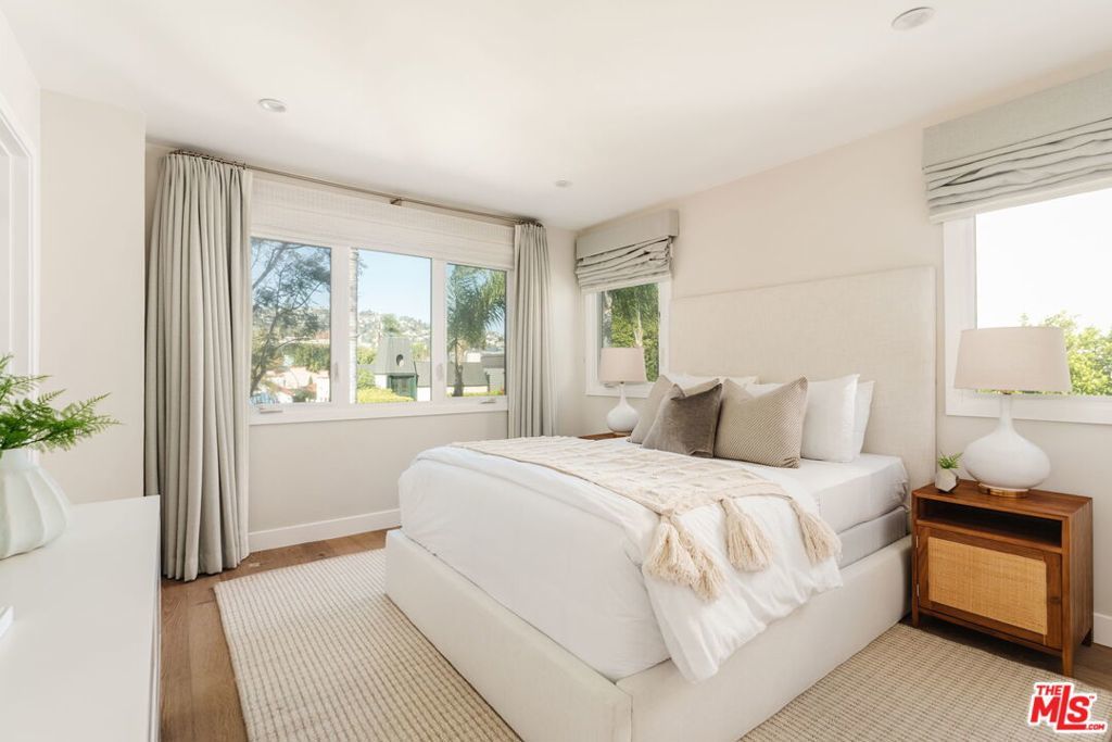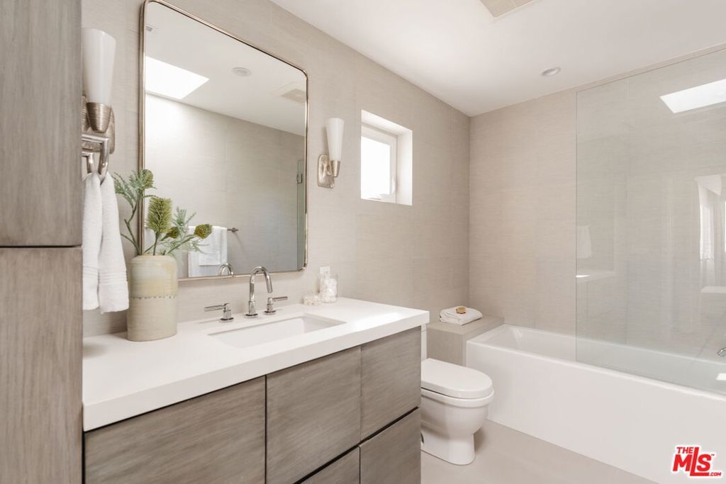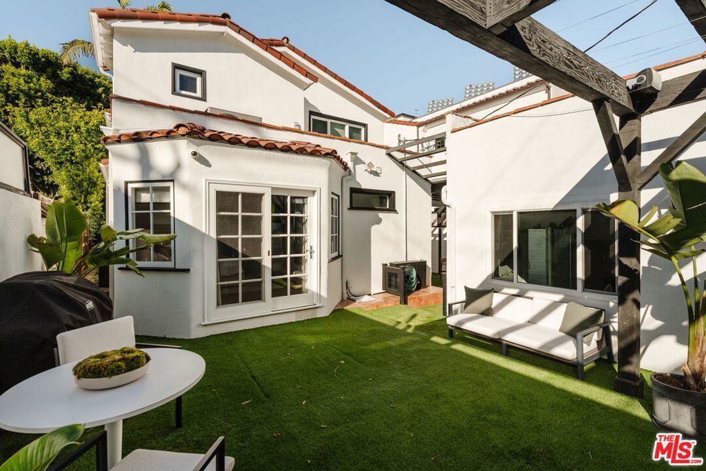 Set along a quiet, tree-lined street in a sought-after pocket of West Hollywood, this fully gated Spanish Revival has been thoughtfully reimagined through a comprehensive renovation completed between 2020 and 2024. A newly added second level and meticulous modernization of the main residence, guest house, and surrounding grounds bring contemporary ease to the home's enduring architectural character. A hedged front garden creates a graceful approach, opening to interiors defined by warm wood floors, generous natural light, and a calm, cohesive palette. The living spaces unfold with quiet refinement -- from the inviting living room to a sunlit dining area and a beautifully appointed kitchen designed for both everyday living and effortless entertaining. Caesarstone surfaces, Sub-Zero and Wolf appliances, and abundant pantry storage anchor the space with understated sophistication. Advanced home tech is seamlessly integrated throughout, including Sonos surround sound, Lutron lighting, smart climate control, dual tankless water heaters, automated pedestrian and driveway gates, and a security system with perimeter cameras. The main residence offers three en-suite bedrooms, including a serene primary suite on the main level. Here, sliding doors open directly to the garden, while a custom walk-in closet and spa-inspired bath -- featuring a glass-enclosed rain shower and dual floating vanity -- create a tranquil retreat. Designed with Southern California living in mind, the backyard unfolds as a series of intimate outdoor moments. Two custom pergolas frame areas for dining and lounging, while a turf lawn and tall privacy fencing create a secluded setting for entertaining. A fully renovated detached guest house -- with its own designer kitchen, living space, bedroom, and full bath -- offers flexibility for extended stays, a creative workspace, or potential rental income. Moments from the energy of West Hollywood's entertainment corridor and world-class dining and shopping along Beverly Boulevard and Melrose Avenue, the home offers a rare balance of architectural presence and quiet residential charm in the heart of the city.
