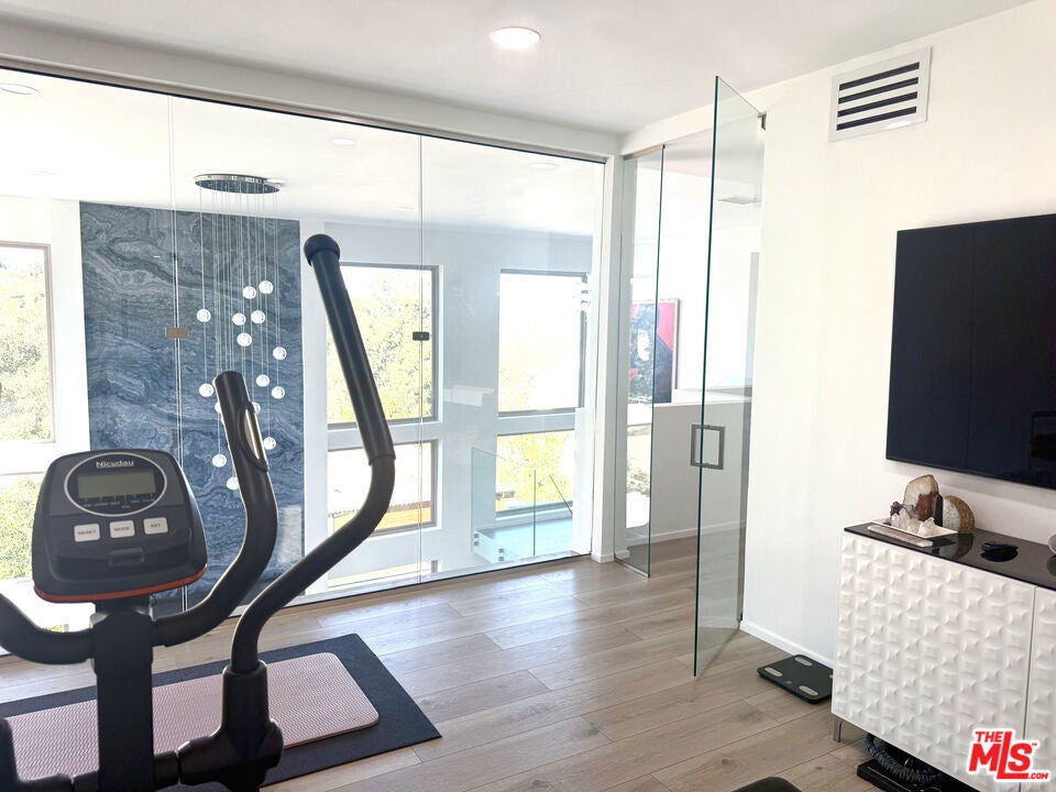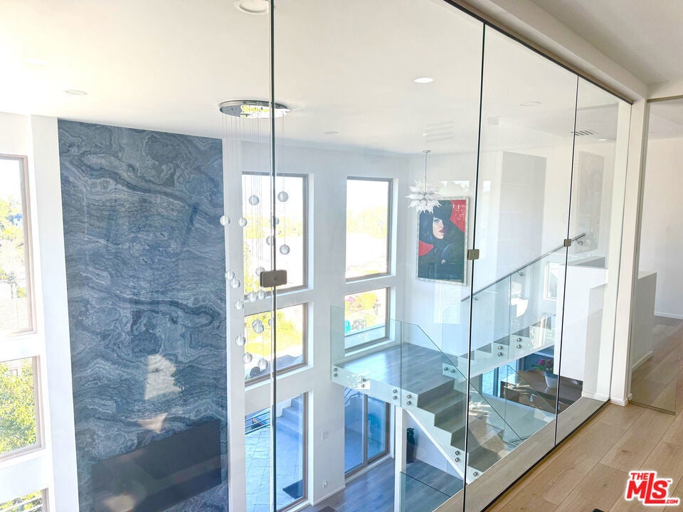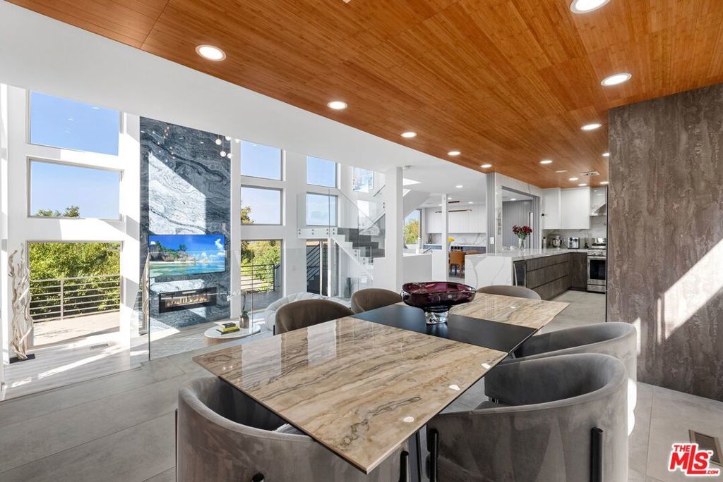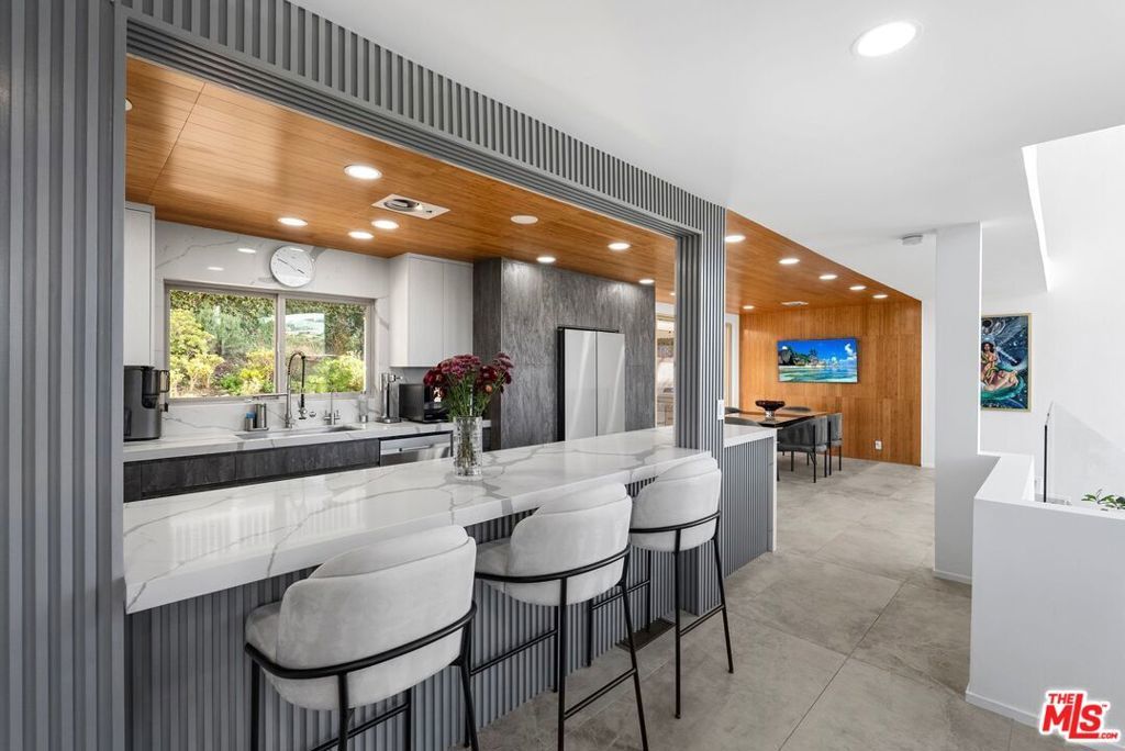 A rare opportunity to acquire a fully remodeled luxury estate in the coveted Royal Woods enclave of Sherman Oaks, where privacy, prestige, and long-term value converge. Set on an expansive 14,112 sq ft lot and offering 3,716 sq ft of refined living, this residence presents a level of quality and craftsmanship that would be exceptionally difficult to replicate at today's construction and labor costs. Located south of Ventura Boulevard, the property offers a secluded, tranquil setting while remaining moments from the 405 and 101 freeways, Ventura Blvd's premier dining and shopping, and nearby hiking trails an ideal balance of accessibility and privacy highly sought after by discerning buyers. Completed in 2023, the home has undergone a comprehensive, top-to-bottom renovation, both interior and exterior, featuring extensive designer upgrades including new stucco, electrical, plumbing, flooring, and custom bathrooms. The interiors are defined by soaring ceilings, expansive floor-to-ceiling windows, and a sophisticated European-style kitchen equipped with premium stainless steel appliances designed for both everyday living and elegant entertaining. The thoughtfully curated layout includes a custom entertainment room with elegant built-in bar and karaoke room, an upper-level family room with vaulted ceilings and fireplace, formal dining area, and a luxurious primary suite with a spa-inspired, fully remodeled bathroom. A striking floor-to-ceiling glass-walled gym or executive office adds flexibility for modern living, while guest and master bedroom with breathtaking view of the valley and tastefully renovated bathrooms complete the upper level. The outdoor spaces elevate the estate into a true private retreat designed to entertain big parties, featuring a waterfall, koi pond, covered patio, and a modern pergola with full outdoor barbecue kitchen. The wrap-around front patio offers sweeping valley views, creating a setting ideal for refined entertaining or quiet moments of retreat. Additional features include a dedicated office, whole-house water softening system, in-ceiling sound system throughout, and a comprehensive security and alarm system all contributing to a seamless luxury lifestyle. Properties of this caliber, location, and lot size in Royal Woods rarely become available, making this a compelling opportunity for buyers seeking privacy, turnkey condition, and long-term value in one of Sherman Oaks' most prestigious neighborhoods. Showings by appointment only. Text the agent to schedule.