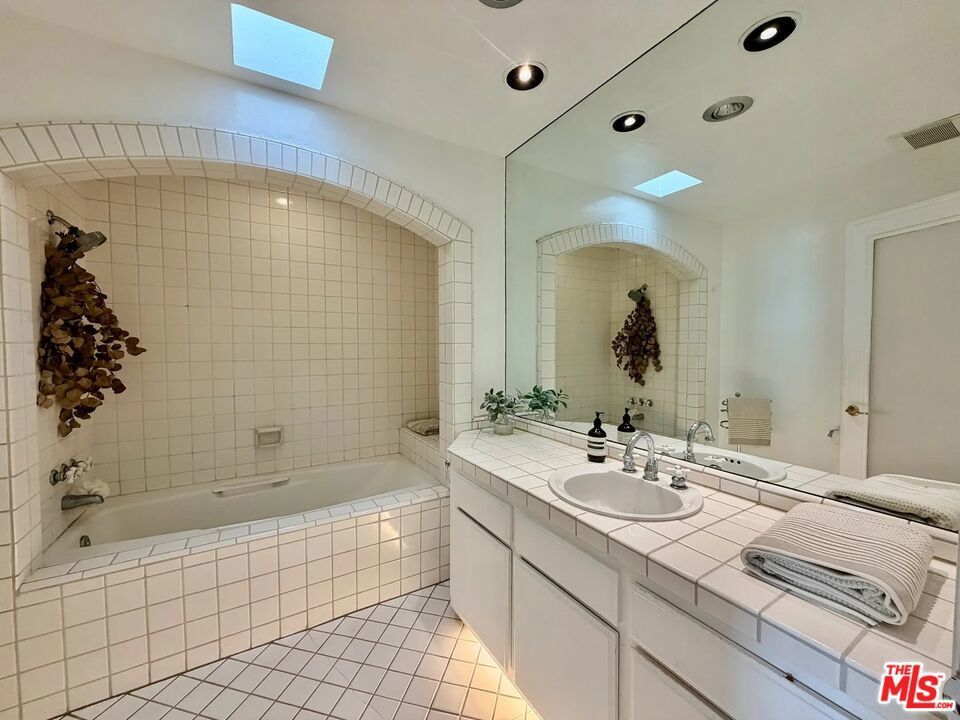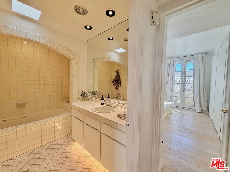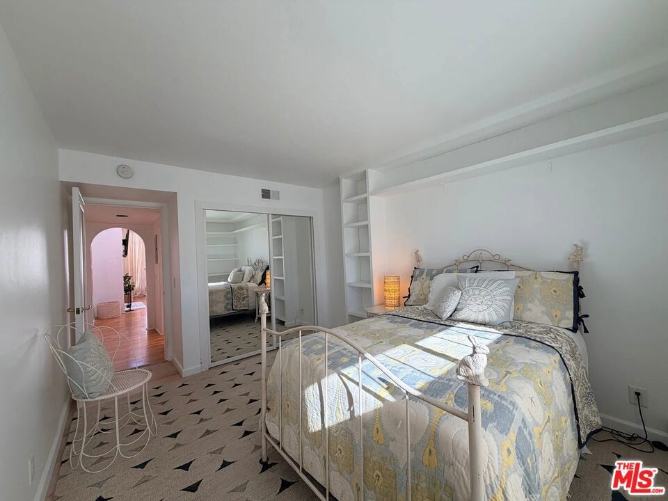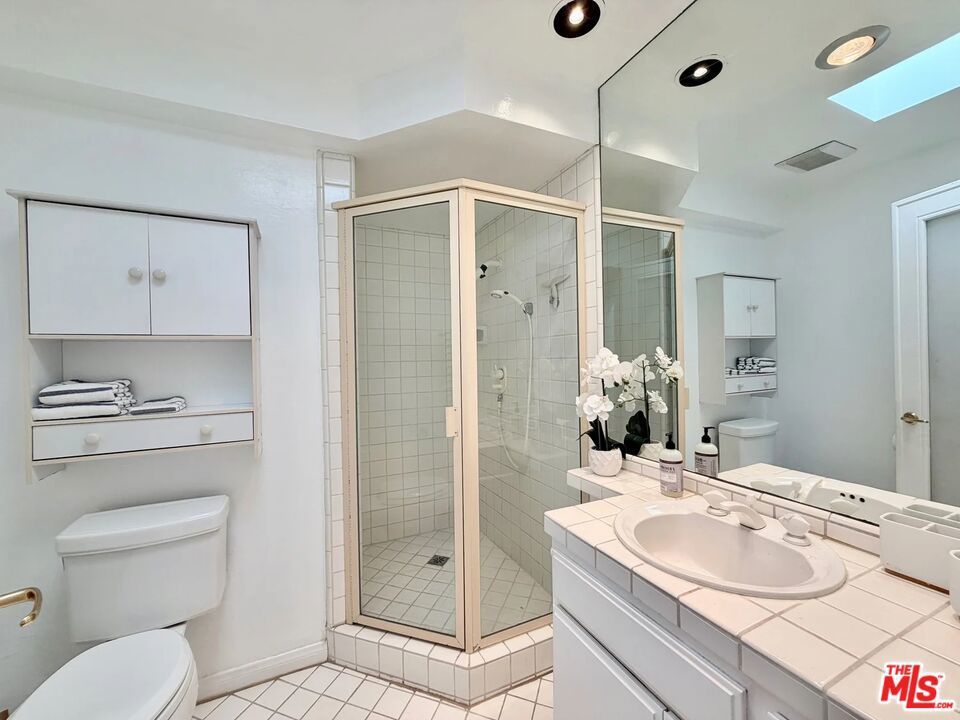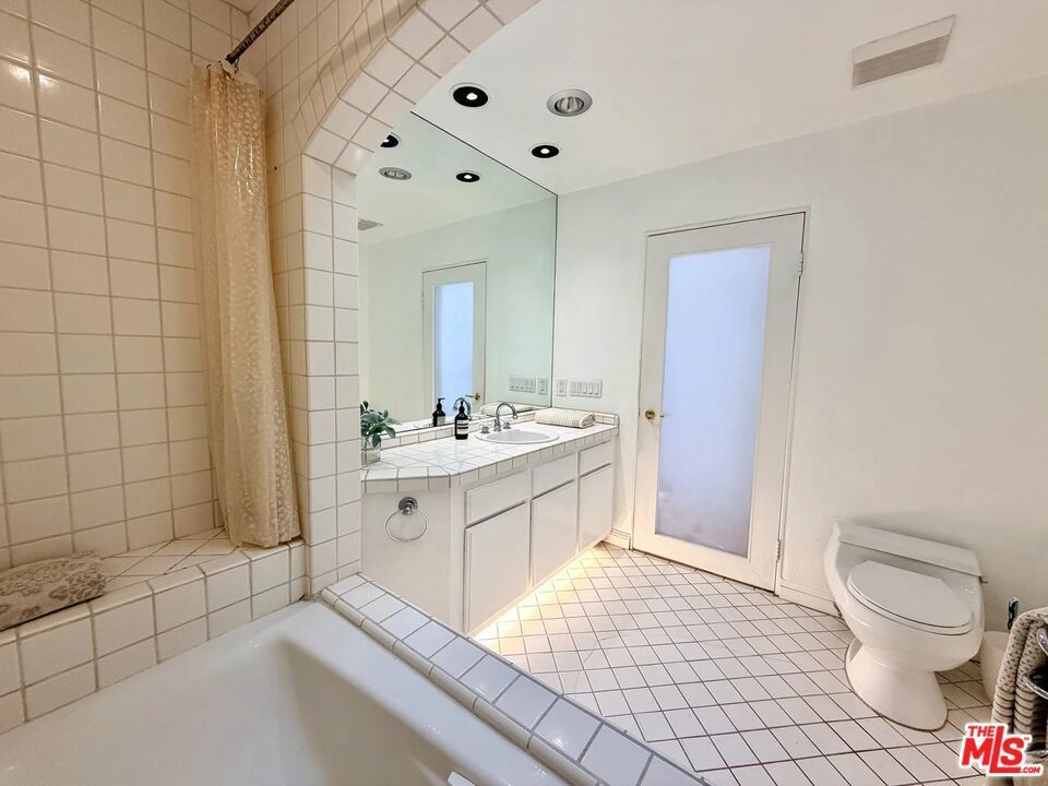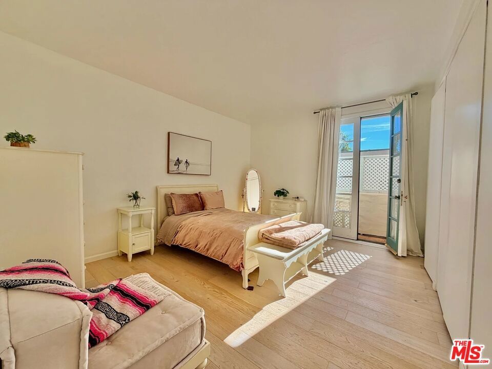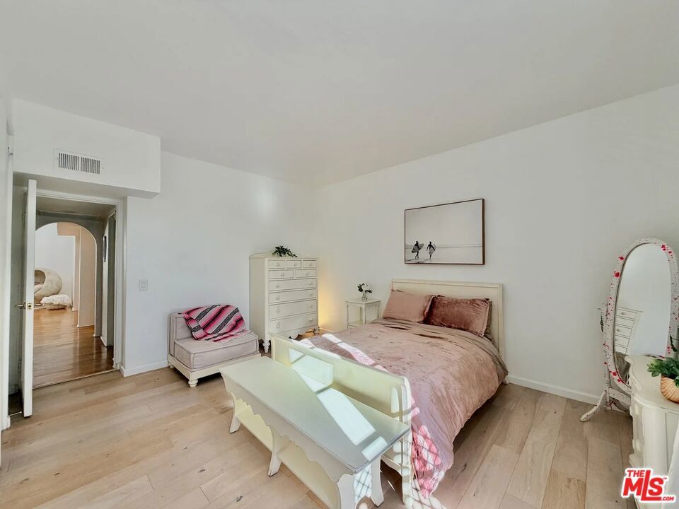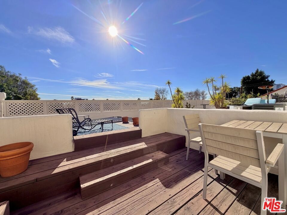 Rare, unique, award-winning, have all described the Villa Flores architecture surrounded by its prime West Hollywood location. The courtyard steeped in Spanish Mediterranean character leads you to the top floor two-story home that exudes the quality and influence of its surroundings. Twenty-foot ceilings, French doors and windows, bring natural light into the space continuously highlighting the textured walls, spiral stairs and fireplace. The master and guest bedroom boast private living areas with en-suite bathrooms and large closets. Up the wide spiral stairs leads you to the open loft/office/media room with two separate rooftop patios ideal for entertaining; one south facing, one north facing, showering you with blue sky, city lights, and views of the hills towering over the Sunset Strip. Taking advantage of this opportunity would be an understatement. Walk to shops, restaurants & groceries etc. Laundry in unit. 2 parking spots. Rooftop Deck.