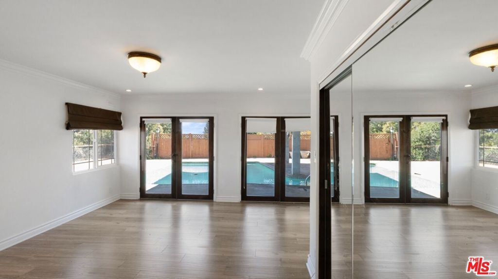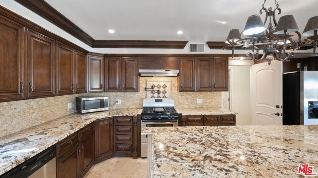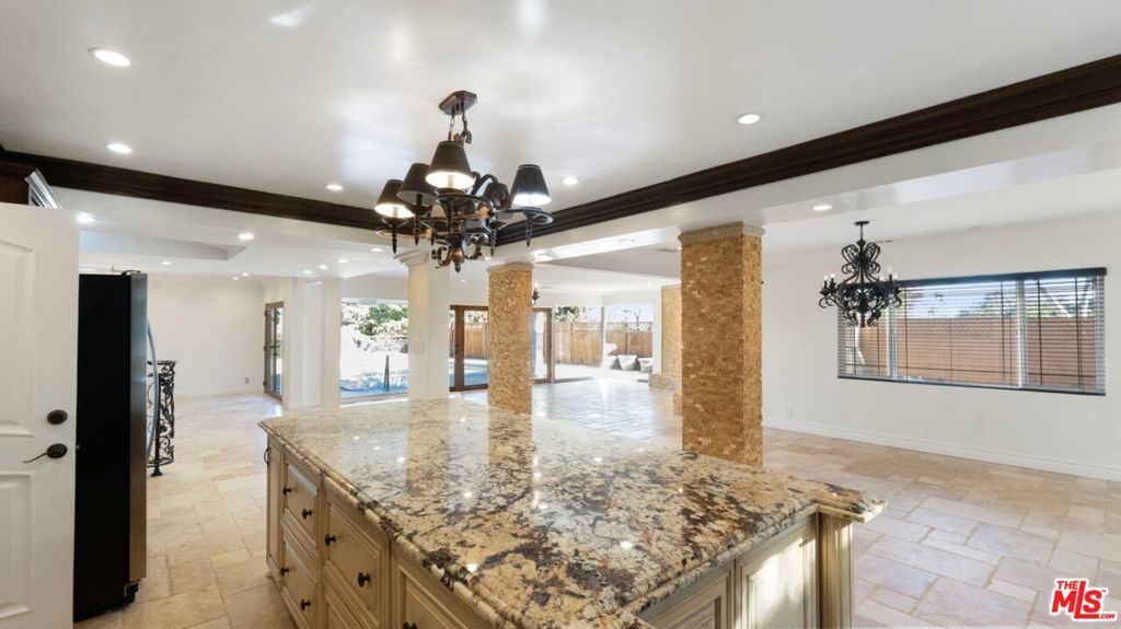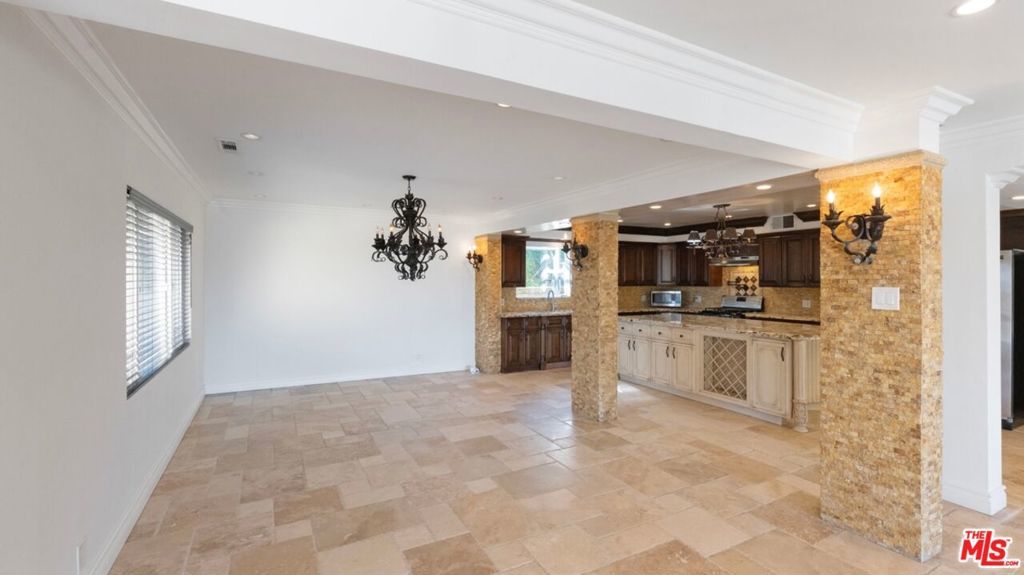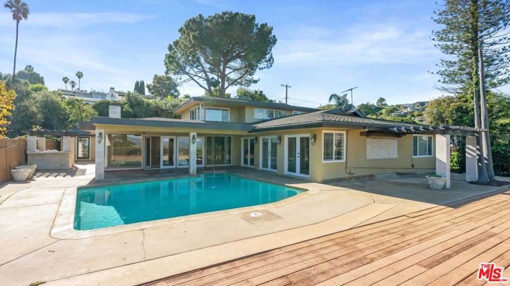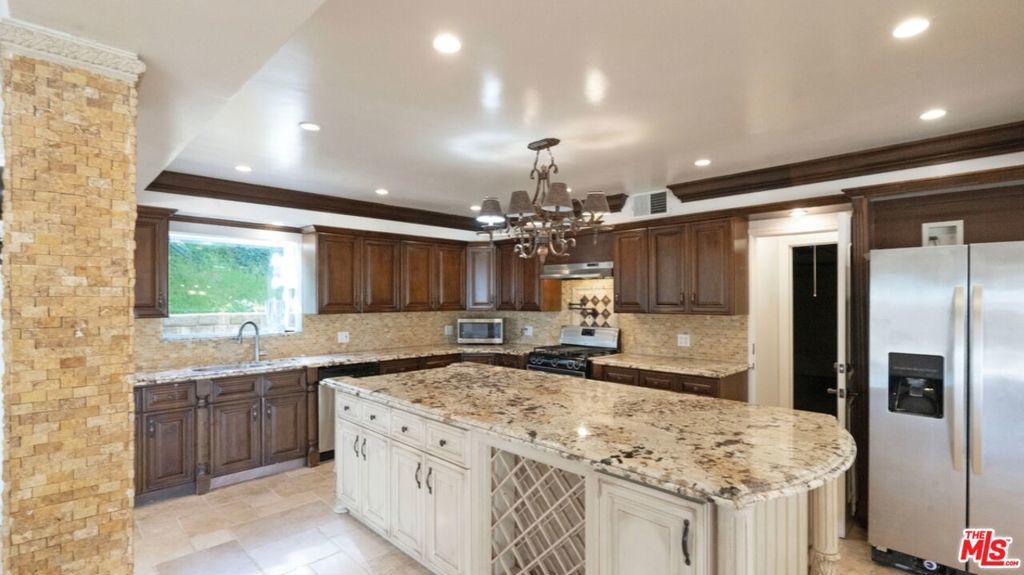 This beautifully refreshed Encino Hills view home offers 3,400 square feet of elegant two-story living with 4 bedrooms and 3 full bathrooms in a quiet, peaceful hillside neighborhood. The home features a formal living room with a large fireplace and an open indoor-outdoor feel that is perfect for entertaining, along with a formal dining area and generous storage throughout. The kitchen is designed for both style and function and includes stainless steel appliances such as a refrigerator, stove and oven, microwave, and dishwasher, along with stone countertops, a large center island, and a walk-in pantry. Upstairs, the spacious primary suite offers a walk-in closet and beautiful views of the surrounding hills, while the additional bedrooms provide flexible space for family, guests, or a home office. The private backyard is a true retreat, complete with an in-ground swimming pool, built-in BBQ and entertaining area, lush landscaping, and sweeping hillside views. Additional features include central air and heat, a two-car garage, fresh interior paint, and pet-friendly accommodations. Pool and gardening service are included and paid by the owner, making this an exceptional opportunity to enjoy resort-style living in one of Encino's most desirable neighborhoods.