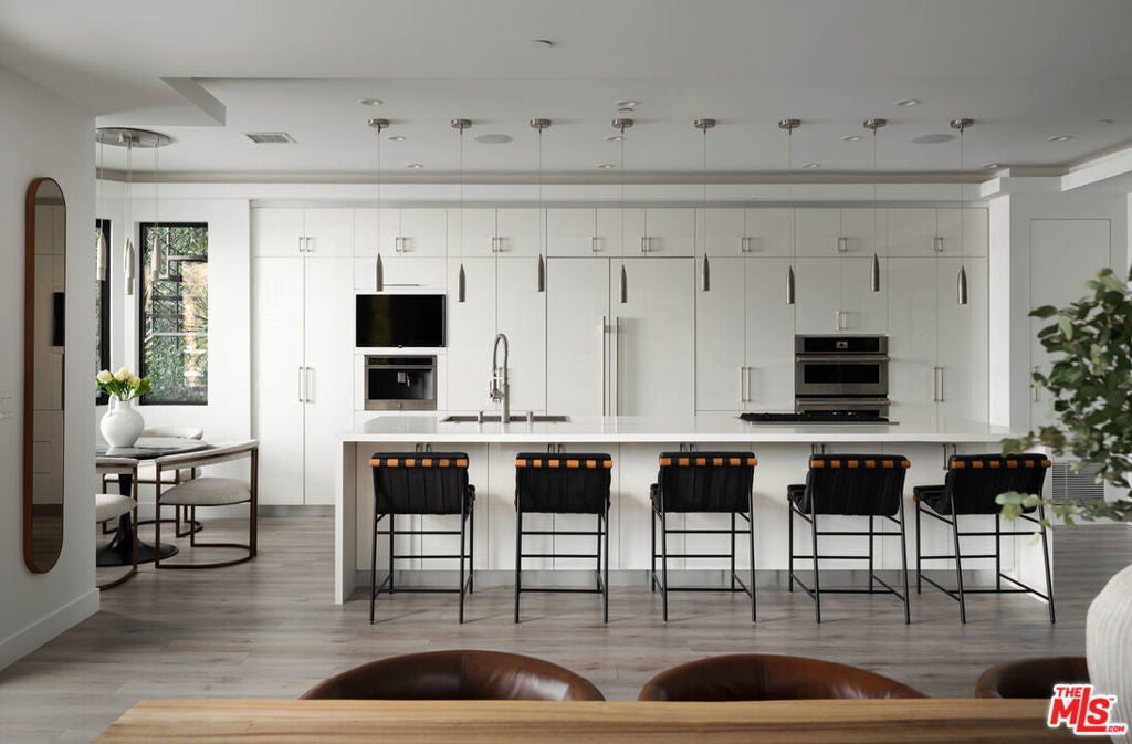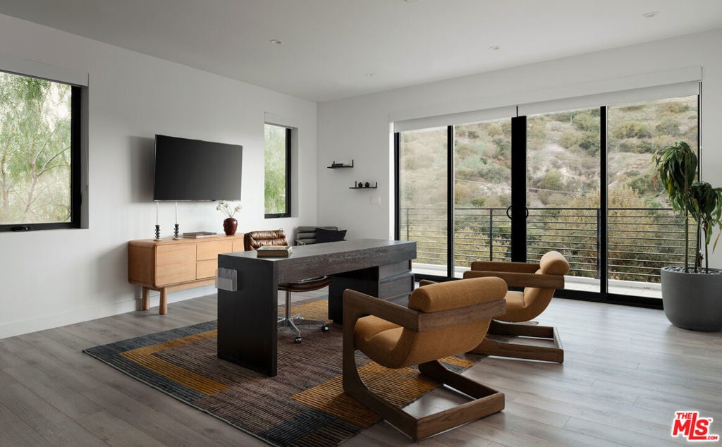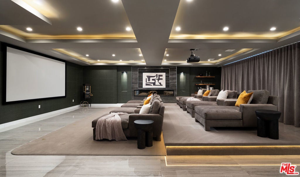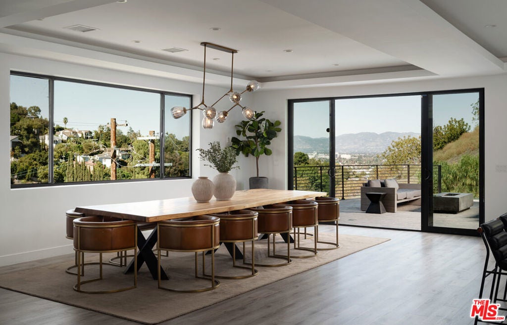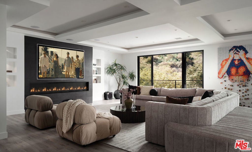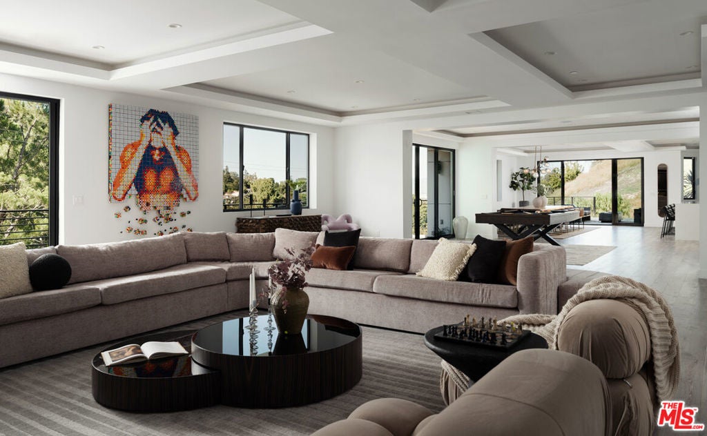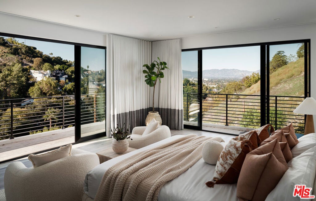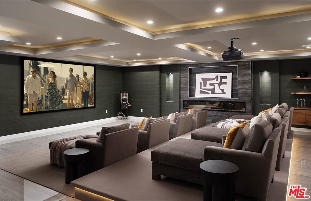 Perched high in the Sherman Oaks hills, this striking modern estate embodies design, performance, and luxury. Completed in 2020 and enhanced to perfection, the residence spans roughly 8824 square feet of open, light-filled living space framed by breathtaking mountain and city views. Every detail was envisioned for effortless entertaining, from the showpiece chef's kitchen with an expansive island and floor-to-ceiling glass, to the outdoor terrace that evokes the ambiance of a five-star rooftop escape, complete with an infinity-edge pool, cascading waterfall, fire pit, and multiple lounge areas for relaxation and gatherings. Lifestyle amenities include a professional-grade home cinema with advanced automation, and a fully equipped gym integrated within a remarkable 10-car showcase garage. A private elevator connects all levels with ease. The primary suite offers a tranquil retreat with a wraparound terrace, spa-inspired bath with soaking tub, and a custom dressing area, all capturing sweeping valley panoramas. Secured by gated entry and comprehensive surveillance, this property ensures privacy and peace of mind while defining elevated California living through bold architecture, refined finishes, and flawless execution.