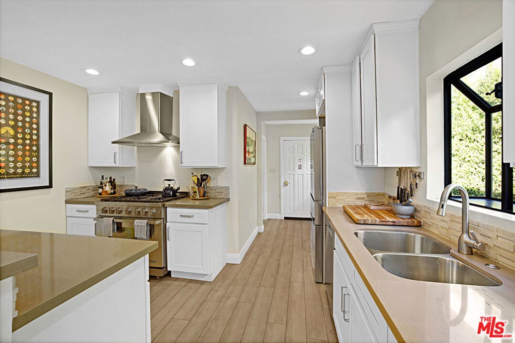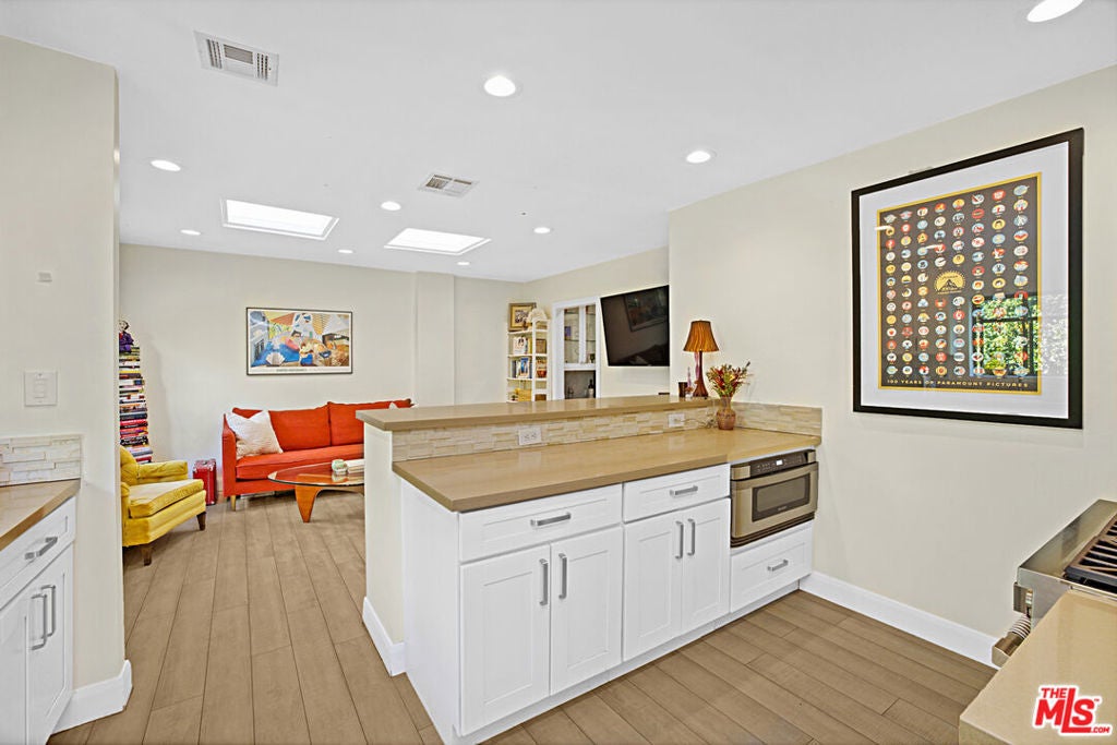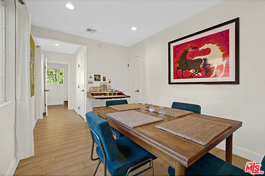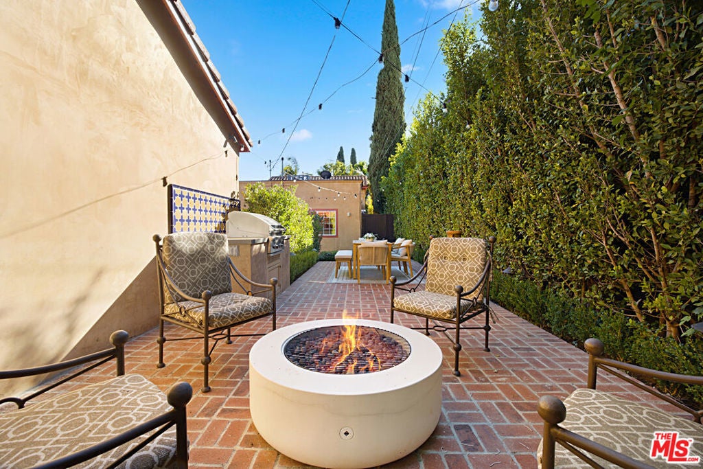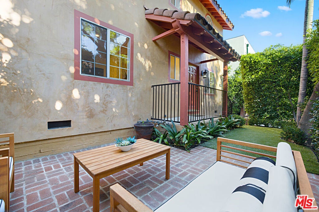 This beautifully updated Spanish-style duplex presents a rare opportunity to own or reside in a gated fully mature hedged private property in the heart of vibrant West Hollywood, offering an exceptional balance of lifestyle, location, and serene privacy. Just moments from premier restaurants, boutiques, and local markets, the property seamlessly blends timeless character with modern functionality and strong investment appeal. The duplex features two spacious units. The owner's 3 bedroom plus 2.5 Bathroom townhouse residence, delivered vacant, offers a thoughtfully designed layout with an en-suite primary bedroom on the main level, along with a gracious living room, den, dine-in kitchen, and powder room. Upstairs, two additional bedrooms and a full bathroom provide flexible living options ideal for family, guests, or a home office. The secondary unit includes two generously sized bedrooms with ample closet space, a luxurious full bathroom, and a gourmet kitchen that opens to a bright and inviting family room, perfect for comfortable everyday living or rental income. Outdoor spaces elevate the property further, highlighted by a large newly constructed patio designed for alfresco dining and entertaining. Planters are already in place for creating your own organic garden, while the built-in barbecue and expansive layout provide ample space for relaxing and hosting gatherings. The front patio, surrounded by lush landscaping and tall hedges, offers a private and tranquil retreat with excellent ambiance. A gated motor court and three car garage provide abundant off-street parking, with additional potential to convert or finish the garage for added living space or supplemental income (buyer to verify). Offering timeless Spanish charm, modern updates, and exceptional versatility, this property is a rare find in one of Los Angeles' most sought after areas.