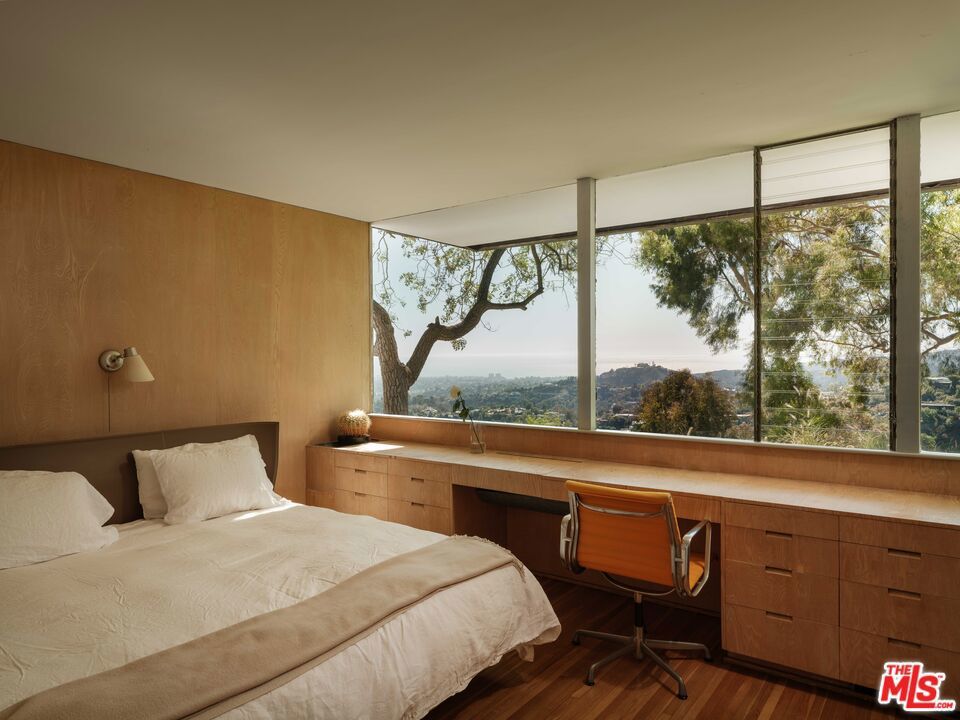 The Sale House, 1960. Designed by celebrated architect Richard Neutra, the residence stands as the crowning jewel of Brentwood's famed Tigertail Road, perched at its highest peak. Nestled within the Crestwood Hills community, a modernist enclave of significant architecture, the home overlooks one of the finest views of the city and the Pacific Ocean. Set on just over an acre and surrounded by mature trees and reimagined landscaping by Ivette Soler Gardens, it offers complete privacy and embodies Neutra's belief that architecture should heighten one's relationship to nature. Sensitively restored, many of the defining details, built-in furniture, mosaic work by Elsa Sale, and even the original pool and diving board, have been preserved while integrating modern comforts with care. Equally suited for full time living or as a thoughtfully appointed pied-a-terre, this is a rare opportunity to own one of the few remaining Neutra's on the coveted Westside of Los Angeles.