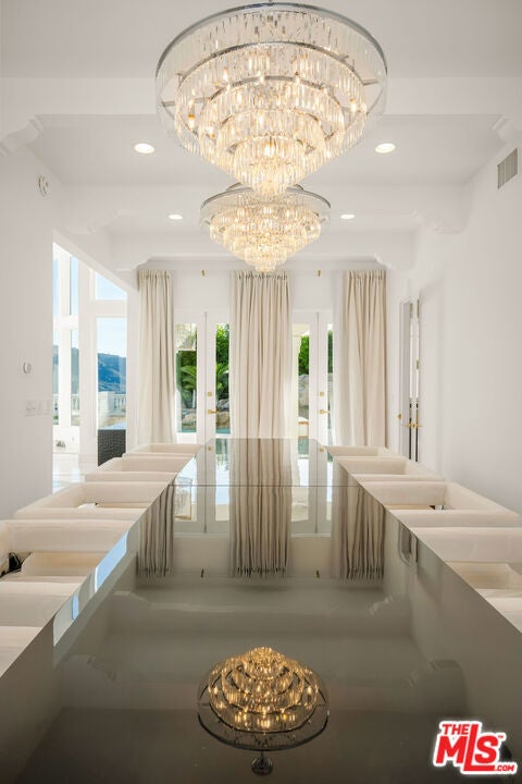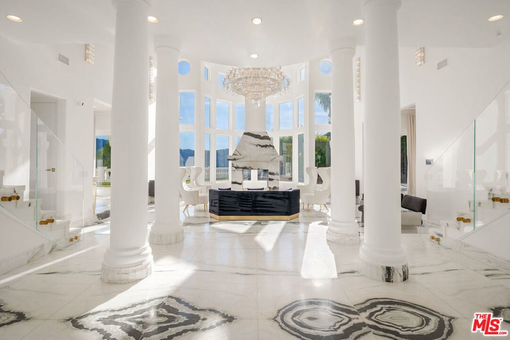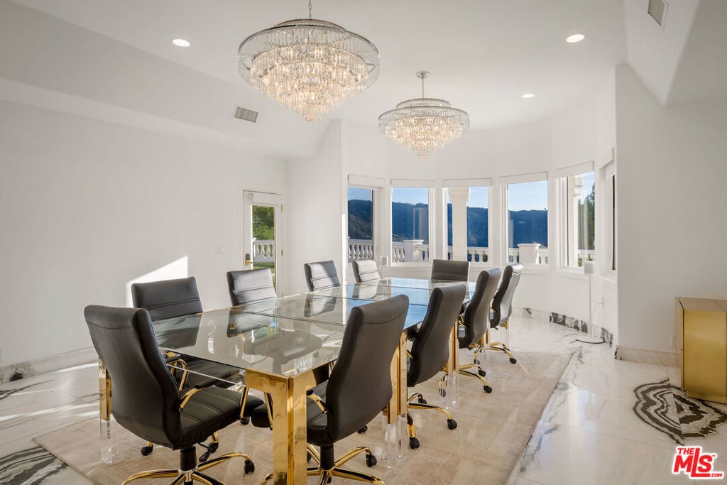 Set on over six acres behind private gates, this distinguished Mediterranean inspired modern estate offers a level of quality and discretion suited for the most particular owners. The residence spans approximately 7547 square feet with six bedrooms and six bathrooms and is introduced by soaring ceilings and expansive walls of glass that frame the tranquil grounds and mountains beyond. Every finish has been thoughtfully selected, showcasing refined stonework, designer surfaces, and a statement fireplace that anchors the grand living spaces and creates an atmosphere of understated luxury. A separate guest suite with its own entrance and patio provides an elegant and private retreat for visitors or extended stays. The outdoor areas evoke a true resort setting with a meticulously positioned pool capturing sweeping views, complemented by multiple terraces and manicured landscaping that enhance both serenity and sophistication. This exceptional Calabasas estate represents a rare offering for buyers seeking pedigree design, substantial acreage, and the utmost privacy.