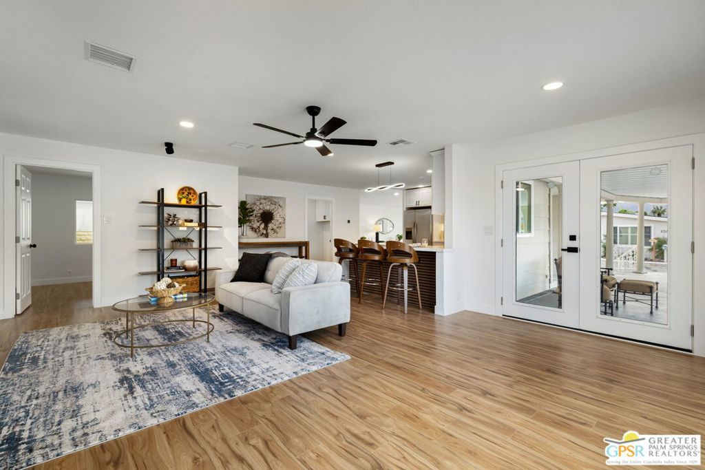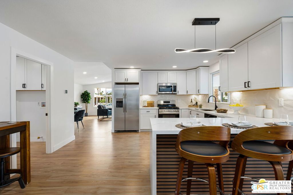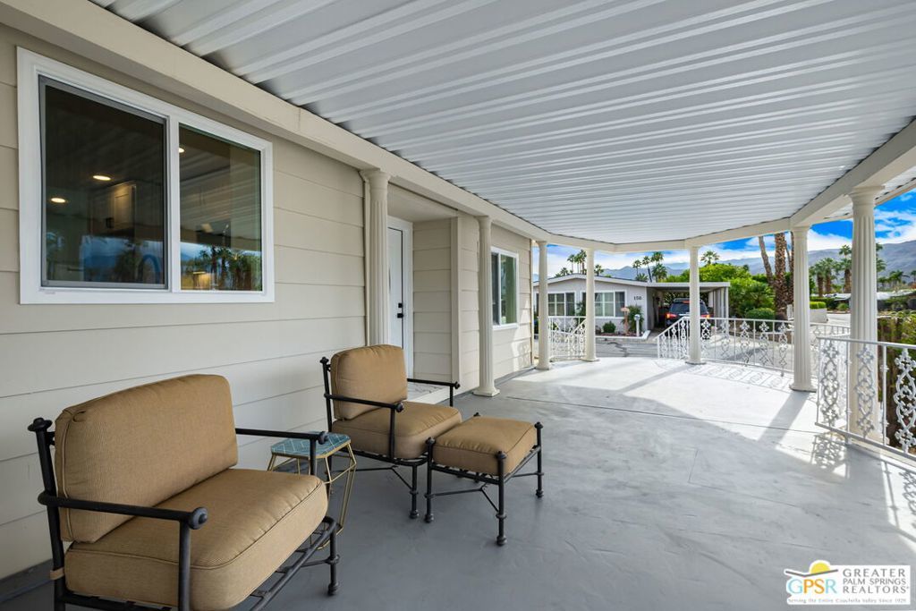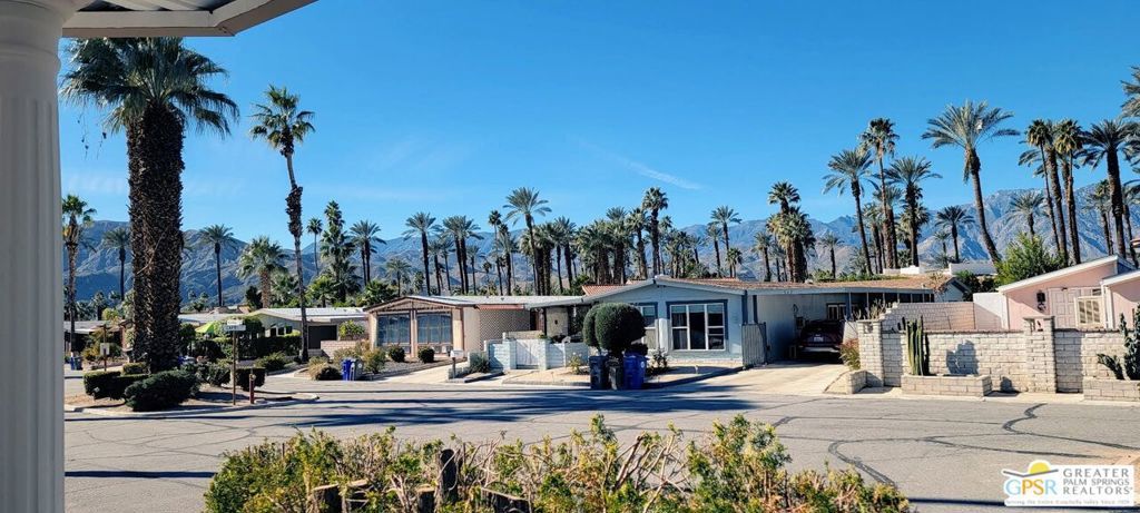 Welcome to elevated desert living in The Colony, a gated all-ages community. This fully remodeled 2-bedroom, 2-bath + den (easily a 3rd bedroom) residence redefines what a luxury manufactured home can be. Perfectly positioned to capture sweeping, million-dollar mountain views, this home has a high-end design for the discerning buyer. At the heart of the home is a stunning open-concept kitchen with waterfall-edge counters, seamlessly flowing into expansive living and dining spaces. Large windows and sliders frame the dramatic mountain backdrop and open to an oversized view patio, creating a true indoor-outdoor experience and a front-row seat to unforgettable sunsets. The primary suite is highlighted by a gorgeous, two-person walk-in shower with large rain showerheads, a rare and striking feature that feels straight out of a luxury resort. Thoughtfully designed finishes and generous scale make this space both indulgent and functional. The additional den offers flexibility for guests, a home office, or a third bedroom, complemented by a beautifully updated secondary bath. A two-car covered carport with a garage door provides privacy, convenience, and a polished aesthetic. Residents enjoy top-tier community amenities, including a clubhouse with a Pub, pickleball and tennis courts, a fitness center, and a resort-style pool, enhancing the relaxed, social, and active lifestyle. This is refined, resort-style living, proof that luxury is defined by design, view, and lifestyle. Come see this beauty today.