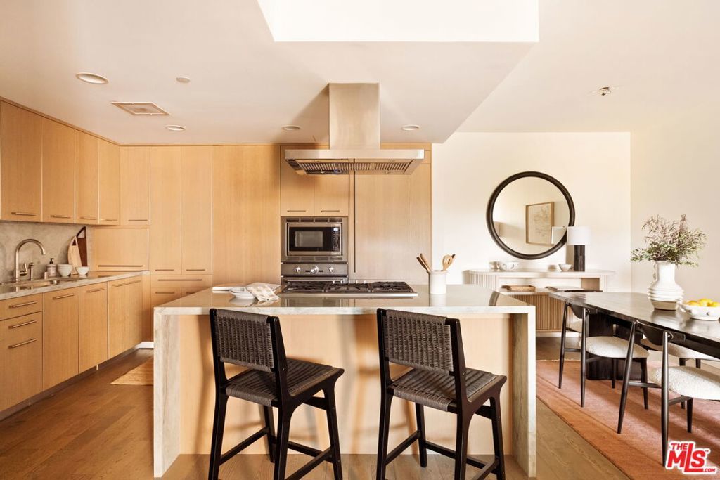 Exceptional Value in Santa Monica's Most Coveted Luxury Building. This west-facing residence presents a rare opportunity to own in The Seychelle, Santa Monica's premier full-service building, just one block from the beach. Bathed in natural light and cooled by ocean breezes, this is the largest one-bedroom floor plan in the building and easily the best value currently available in this iconic coastal address. The open, contemporary layout blends sophistication with comfort, featuring wide-plank wood floors, custom cabinetry, and generous storage throughout. The sleek kitchen is outfitted with stainless steel appliances and a marble island, flowing seamlessly into the dining and living areas and out to a patio, perfect for morning coffee or enjoying evening sunsets. The spacious primary suite offers abundant closet space and a spa-inspired bath with dual marble vanities and a glass-enclosed shower. Additional highlights include a guest powder room, in-unit laundry, and two side-by-side gated parking spaces. The Seychelle delivers true resort-style living with a rooftop saltwater pool and hot tub showcasing panoramic ocean views, cabanas, BBQ and dining areas, a state-of-the-art fitness center with yoga and Pilates studio, 24-hour concierge and doorman, conference room and pet spa. All of this, moments from the beach, the Pier, and the best of Santa Monica's dining, shopping, and entertainment.