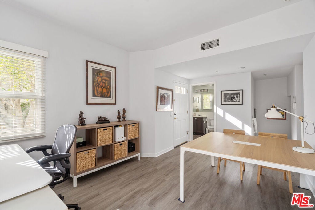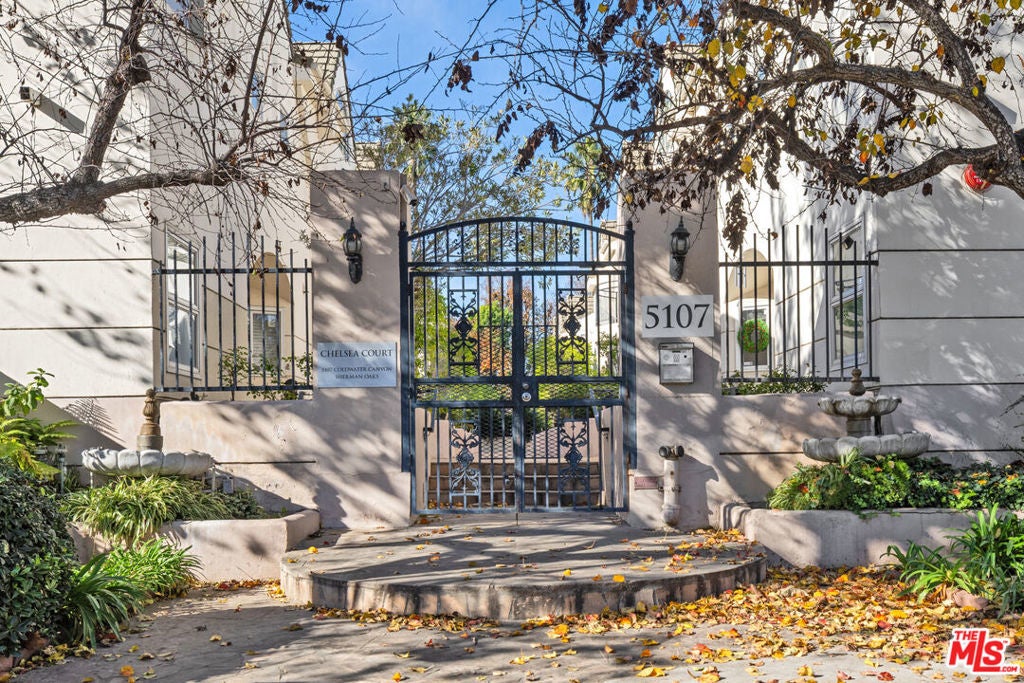 Welcome to the beautiful and stylish Chelsea Court in SHERMAN OAKS! A majestic iron gate with intercom welcomes you to an inviting well-maintained tranquil courtyard with stone-paved walkways, lush tropical landscaping and regal water fountains with only 16 units in this stunning architectural complex. This LARGE (1498 Sq Ft) 2-Bed, 2-bath END UNIT is perfectly situated in the middle of the community. This executive townhome is light and bright with 3 balconies, large windows with new vertical blinds, recessed LED lighting, NEST thermostat and new flooring throughout. As you enter, you have a den/office (possible 3rd bedroom) and powder room with shower leading to a lavish living room with a cozy gas fireplace. The beautifully remodeled kitchen with classic subway tiles and clean quartz countertops provides plenty of counter space and an abundance of cabinets with newer LG stainless steel appliances. Enjoy dining/entertaining on the outside patio. UPSTAIRS are two en-suite updated bedrooms with dramatic vaulted ceilings, large custom walk-in closets and their own private balconies. The spacious primary bedroom suite has its own upgraded private bath with double vanity, separate shower & tub. The laundry area is conveniently located in the upstairs hallway and has a newer full-size LG washer and dryer. Each unit has direct access to the secured, gated subterranean garage with 2 reserved side-by-side parking spaces (with ample guest spots) that makes parking a breeze. Plus, this townhouse is complete with a sizable in-unit STORAGE space. This desirable location is situated in the heart of Sherman Oaks with easy access to the 101 FWY, nearby to: Whole Foods, Ralphs, Sportsmen's Lodge, Equinox, Erewhon, upscale restaurants, shops and quality schools. BONUS: HOA includes water and earthquake insurance!