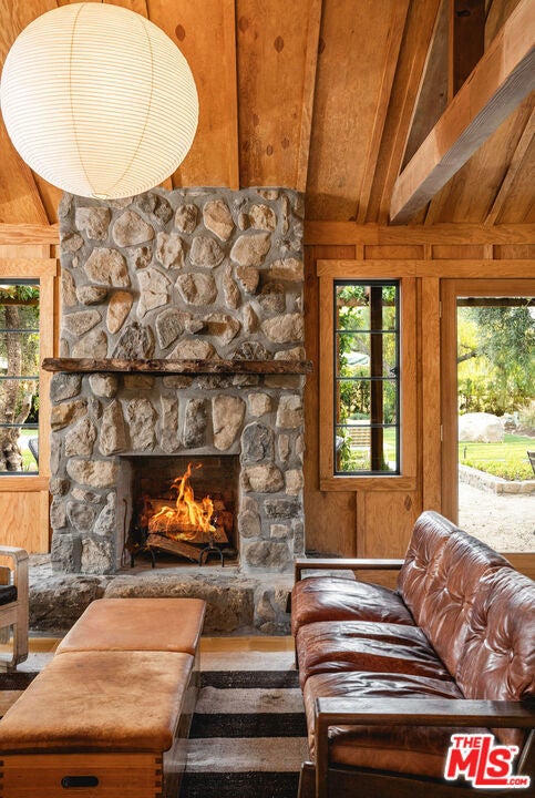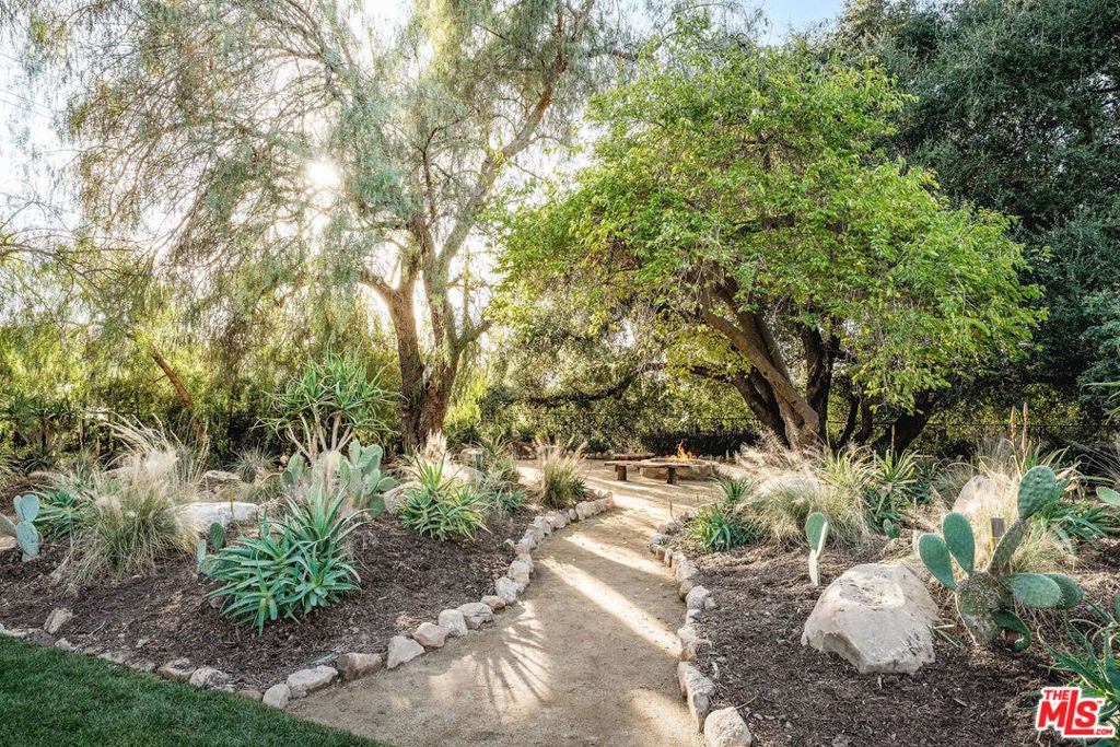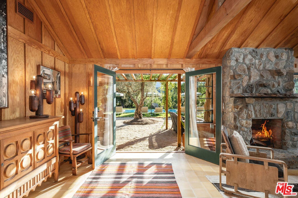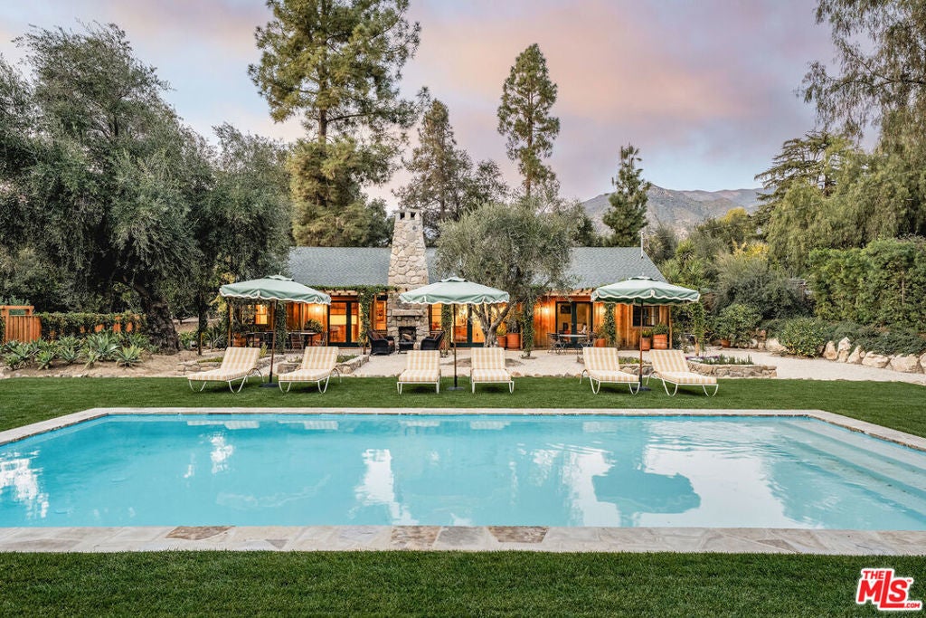 California soul, reimagined in the timeless spirit of vintage Ojai style. Set quietly at the end of an East End lane, this thoroughly rebuilt home reflects the best of Ojai's classic aesthetic. The design balances rustic textures and an evocative play of shadow and light with today's modern comforts, resulting in a residence defined by craftsmanship, intention, and quiet luxury.Wrapped in new cedar board and batten siding, the home feels like a hidden retreat. Restored antique steel windows frame views of native plantings - sage, grasses, ancient olive trees, and flowering species chosen to soften the architecture and echo the landscape of early California estates. Pathways lead to intimate outdoor areas, including a fire pit terrace tucked into its own private area, perfect for slow evenings under the stars. A portion of the property is dedicated to a thriving and abundant citrus orchard featuring navel oranges and Meyer lemons.The 15' x 40' pool becomes a shimmering focal point of the grounds: long, elegant, and framed by a green lawn and curated plantings. It reads more like a boutique hotel pool- refined, calm, and designed for both swimming and sunlit lounging. The surrounding landscape includes rock-curbed planters, perimeter hedges, and thoughtful fencing, lending the property a sense of privacy and natural enclosure.Inside, the home has been fully rebuilt for modern longevity including: new plumbing, new electrical, upgraded panels, new gas main and septic, a 4-ton, 2-zone HVAC system, and on-demand hot water. These systems quietly support a world defined by warm materials- Douglas fir and redwood paneling, cork floors, encaustic cement tile, custom cabinetry, and vintage lighting sourced for authenticity. The kitchen looks out on the great room and dining area with custom shelving, handcrafted counters, and Viking equipment including a 36" range and hood. An adjoining pantry, complete with paneling, shelving, counter space, and a wine cooler, functions like a private back-of-house galley designed for effortless hosting. Through the pantry is a dedicated laundry and mud room with a separate entrance. The living room is a showpiece of California ranch architecture, with structural trusses, Douglas fir paneling, and a stone fireplace that anchors the home. It's a space that invites gathering, conversation, and long, quiet mornings. Just outside the living area is a trellised area with exterior living areas for dining and a fireplace for cozy evenings. The primary suite channels the intimacy of a vintage casita, with cork flooring, warm paneling, vintage lighting, and two walk-in closets. Its ensuite bath features hand-laid cement tile, a soaking tub, a custom shower, and Waterworks fixtures, chosen to bridge heritage and luxury.Two additional bedroom suites continue the theme of craftsmanship, one with an ensuite bathroom, each wrapped in redwood paneling with generous built-ins and decorative beams. Their bathrooms, also finished with Waterworks fixtures, bring a spa-like refinement to the residence. Even the utility spaces carry the same level of care - the laundry room with custom counters and shelving, LG stacked machines, and paneling; the powder room with Waterworks fixtures and a built-in closet - demonstrating that no detail was overlooked. A finished attic room, reached by a ladder, serves as a secret hideaway for kids, with built-ins for mattresses for hosting sleepovers and endless fun.This home is a rare expression of classic Ojai restored, revived, and elevated, a private refuge crafted for those who appreciate architectural soul paired with modern ease.