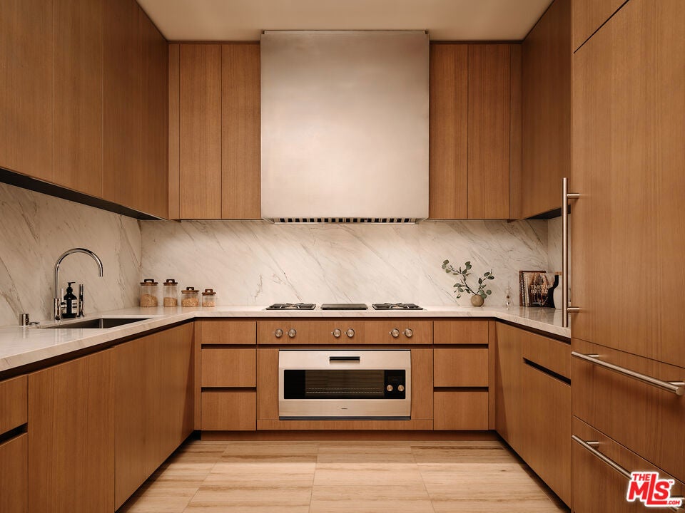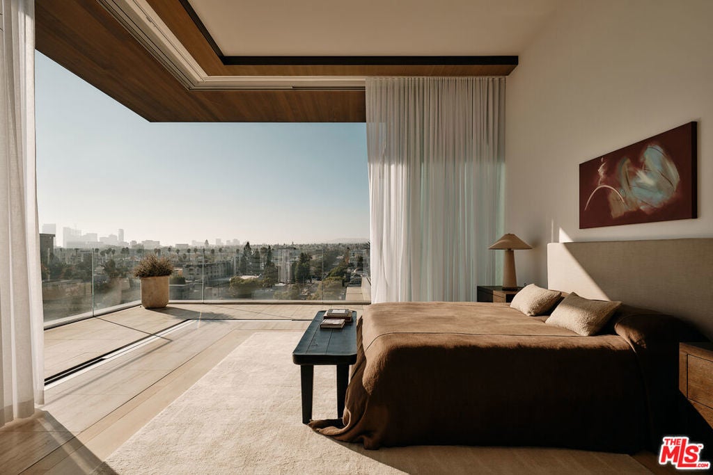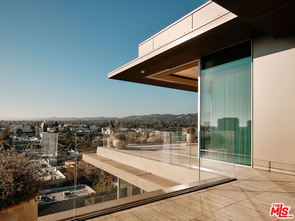 Introducing Penthouse West at 8899 Beverly - the largest top-floor residence in this Olson Kundig-designed architectural masterpiece in West Hollywood's Design District. This sprawling 7,303-square-foot penthouse is an art collectors dream. Experience full-service, luxury living with 4 bedrooms, 5 full bathrooms, 2 powder rooms, and a versatile media room set up as private office space apart from the main residence living areas. Designed to impress, the Penthouse features a great room with soaring 14-foot floor-to-ceiling motorized Vitrocsa glass walls that open to a 1,900-square-foot wraparound terrace with breathtaking, panoramic views of the Hollywood Hills and Los Angeles skyline. The gourmet kitchen pairs functionality with artistry, boasting Calacatta gold marble countertops, custom white oak cabinetry, and premium appliances by Gaggenau, Miele, and Subzero. A separate butler's kitchen and discreet service entrance enhance the penthouse's hosting capabilities, ideal for entertaining at scale or enjoying intimate gatherings. The expansive primary suite, a private sanctuary over 1,000 square feet, includes dual walk-in closets, luxurious dual bathrooms, and direct access to the terrace, offering uninterrupted views of the Hollywood hills. The three guest bedrooms feature ensuite bath and stunning south-facing views, providing the utmost privacy and comfort. For the car aficionado, Penthouse West features a private four-car autostable behind bespoke enclosed doors, plus two additional valet spaces, accommodating up to six vehicles. A private and discreet Penthouse lobby in the garage offers direct elevator access to the top floor. Exclusive resident amenities elevate the experience further, with a resort-style pool, outdoor kitchen, fireplace gardens, fitness center, and yoga studio. Situated in the heart of the West Hollywood Design District, this penthouse boasts a Walk Score of 92, with Bristol Farms, high-end dining, designer boutiques, and entertainment just steps away, delivering an unparalleled lifestyle in one of LA's most coveted and walkable neighborhoods.
