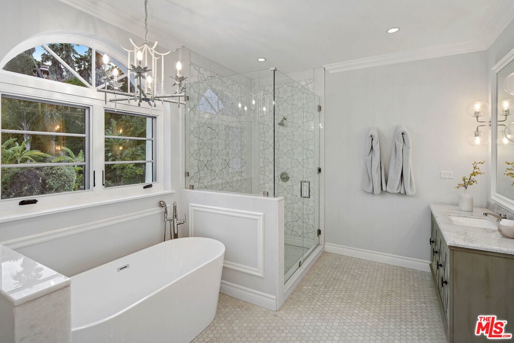 Behold the vision of this Parisian transformation that marries traditional, contemporary and art deco elements with understated elegance and sublime sophistication. Perched high up off the street, behind a secure imposing gate, sits this utterly private view estate. Voluminous light from all rooms and exhilarating views of the Valley make this home airy and bright, giving that coveted expansive indoor/outdoor feel. An unforgettable primary suite. A main level gym and a bar where everyone will gather. The kitchen's huge center island is the heartbeat of the home, feeding into the great family room and exquisite dining room with more spectacular views. The beautiful breakfast nook, the huge family room with folding accordion doors revealing the stunning backyard oasis. A rear yard "palapa" hut is perfect for reflective moments, or just enjoying a cigar. The massive 1.2 acre lot offers ample covered parking and a huge motor court. The way you want to live.