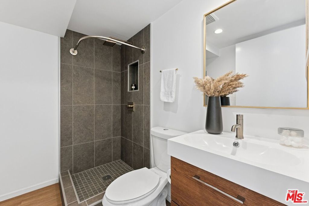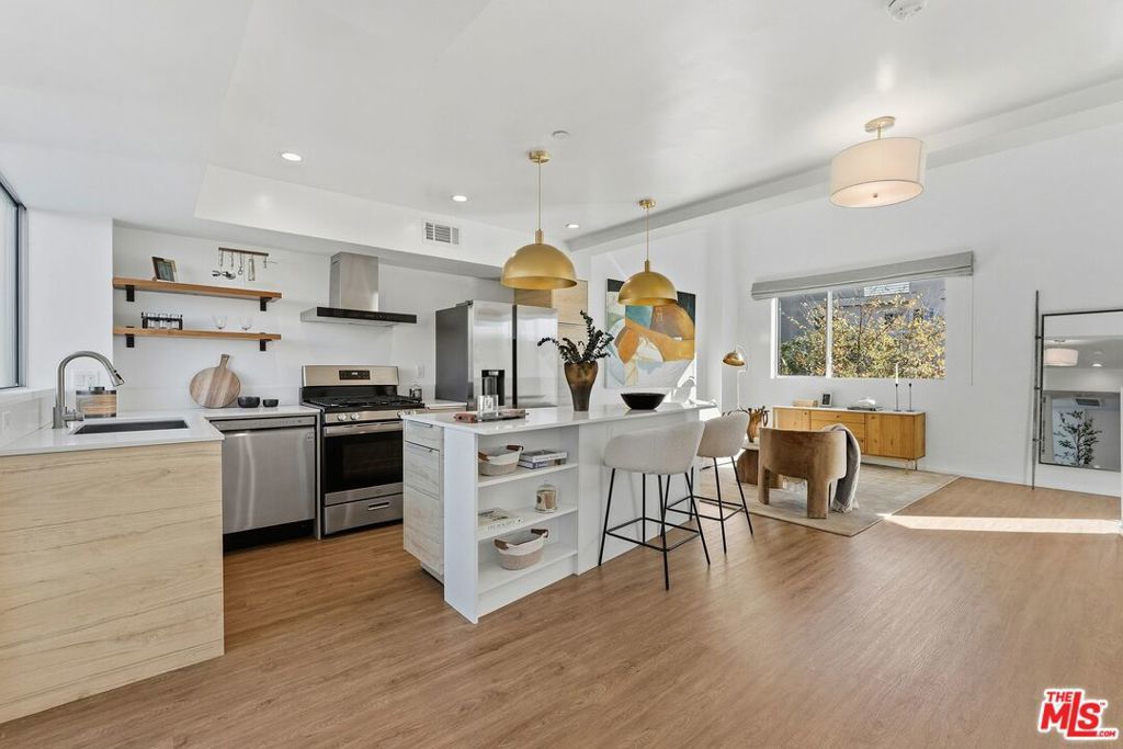 Welcome to a thoughtfully crafted, architect-designed modern residence in a boutique five-unit building completed in 2022. This home blends clean contemporary design with soaring ceilings, walls of glass, and an airy open-concept layout filled with natural light. The interiors feature a refined mix of concrete and hardwood flooring, a sleek designer kitchen with premium appliances, and curated finishes that feel both warm and modern. A light-filled skylight room adds architectural interest and flexibility ideal as a home office, creative studio, or serene retreat. The layout offers distinct yet connected living and entertaining spaces, while a private rooftop deck captures city views with an ocean backdrop perfect for sunset lounging or casual gatherings. Additional amenities include central HVAC, in-unit laundry, secure subterranean parking, and solar panels supporting energy-efficient living. Ideally located just minutes from Wilshire Boulevard, the beach, top dining, and everyday conveniences, this residence delivers a relaxed yet refined Santa Monica lifestyle with timeless architectural appeal.