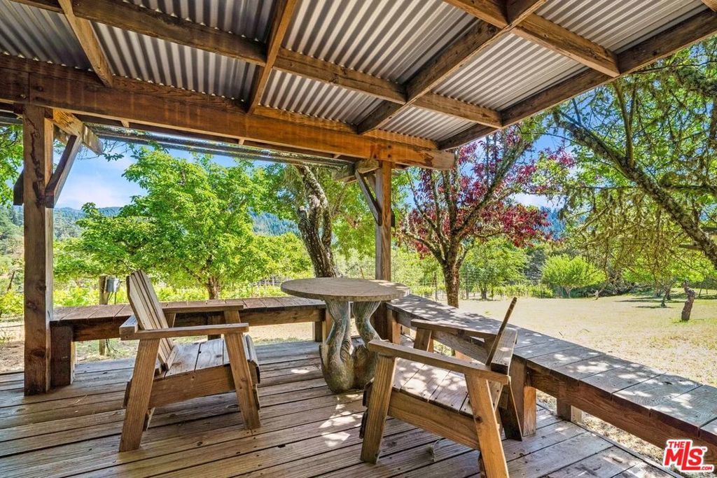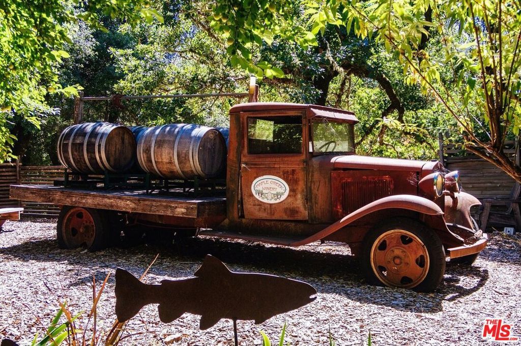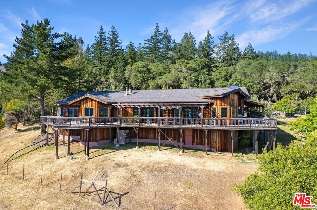 Rare opp to own Maple Creek Winery and Wellness Ranch, world famous for its double gold award wining wine in Mendocino County - where the redwoods meet the vineyards. This 164 acre property qualifies for the Williamson Act making it agricultural / farm land. Enjoy the health benefits of the clean spring water from the multiple springs that run on the property. Land a helicopter on its helipad to visit its tasting room and enjoy the award winning natural wines and taste with the winemaker / artist / owner Tom Rodrigues who is a favorite among visitors for his knowledge, witty insights, and renowned creative works for painting as featured in The Baseball Hall of Fame, production manager and designer at Skywalker Ranch in the glass studio, and wine label graphic designer incl. Far Niente, Nickel & Nickel, Dole, EnRoute, Bella Union, Post & Beam. Walk through the neighboring redwood preserve with trees thousands of years old, take part in horseback riding and host horses in the multiple stalls next to a beautiful art studio, wake up to gorgeous sunrises and toast to stunning sunsets, take part in mushroom hunting and more. The Maple Creek Winery is home to Artevino which is handcrafted, artfully made, double gold award winning Chardonnay, Pinot Noir, Merlot, Flora and Cabernet Sauvignon. This is the Porsche club annual pitstop for community connection. The original owners used this property as a bed and breakfast and currently it is a well respected and beloved winery and wellness California jewel. Wake up to deer, foxes, wild pigs, bald eagles - the wildlife is unbelievable! The quality of the water has been tested and full of natural minerals thought to be from an underground natural aquifer from Oregon. There are two wells on the property, 50 feet deep, 15 gallons a minute - this is the purest water one can find. The main house includes 2000 square feet of deck to enjoy epic views, each bedroom is connected to a bathroom, specialized hardwood floors, vaulted ceilings, massive natural rock fireplace and bountiful windows to appreciate the nature. Enjoy the panaramic views from your private deck hot tub. New roof. A tiny home on the property is where current wine club members have exclusive access to reserve and enjoy. The tasting room with its natural wine with no additives is open five days a week and includes a mini gallery of owner's art. Annual wine club party, pizza parties, weddings, family events are a regular at the property. The longest paved driveway in Yorkville. Art studio attached to the stables with an enclosed barn. Guest house includes outdoor shower and a wood burning stove. Open meadows, 3000 square foot fenced in flower and vegetable garden with an orchard with a variety of fruit trees, fenced in half acre vineyard. Great glamping opportunity, room to add pool / tennis courts (like neighboring ranch). Close to Michelin star restaurants, the Mendocino coast, local shops. There is endless parking at the property, had over 30 Porsches and 40 additional cars parked for events. So much to see and explore on this special property, we look forward to showing you this remarkable destination. Main House: 3200 square feet plus 2000 square feet of decks surrounding 3/4 of the house. Guest House : 690 square feet, covered deck 500 square feet. Barn : 2200 square feet. Art Studio: 1425 square feet. Horse stalls and tack room: 492 square feet. Cabin: 420 square feet, covered deck 420 square feet. Winery: 2135 square feet. Tasting Room: 700 square feet. Crush Pad: 610 square feet. Total: 11,592 square feet. Elevation starts at 900 feet at highway and it goes up to 1600 feet above sea level. All types of flowers, roses, iris, peonies, and the garden can grow an incredible amount of fruit and vegetables from heirloom tomatoes, watermelon, pumpkin, bok choy, onions, squash, potatoes, lettuce, spinach, leeksbroccoli, brussels sprouts, nopal, blackberries, raspberries and on - you can walk right outside and make yourself a meal.