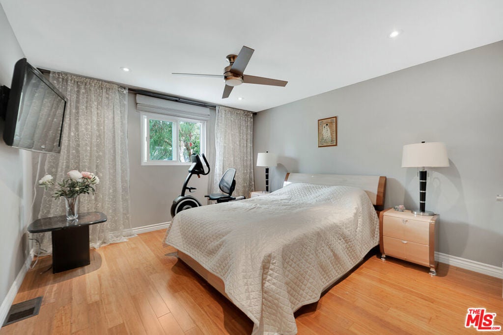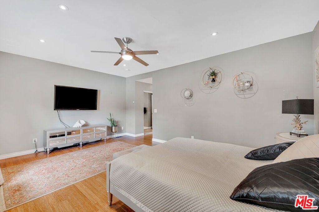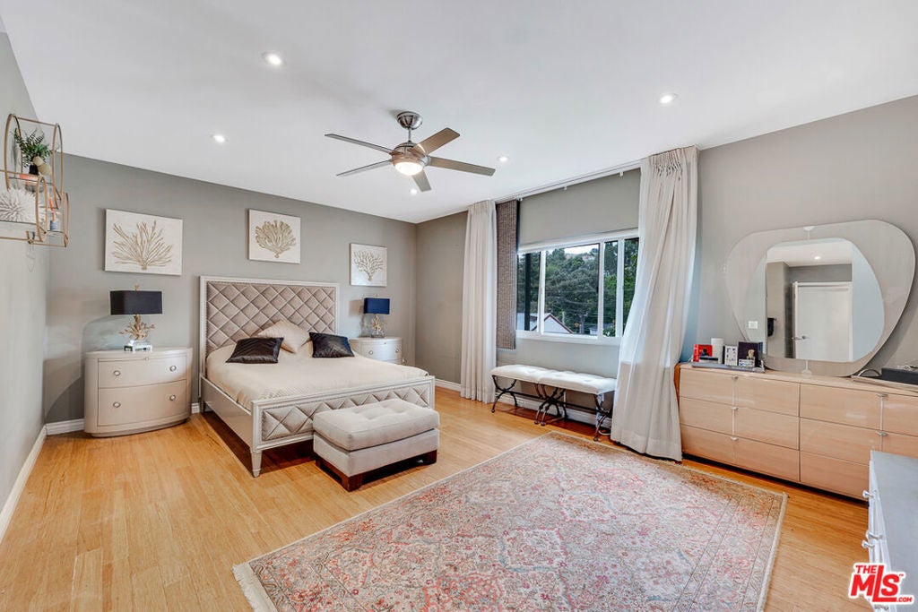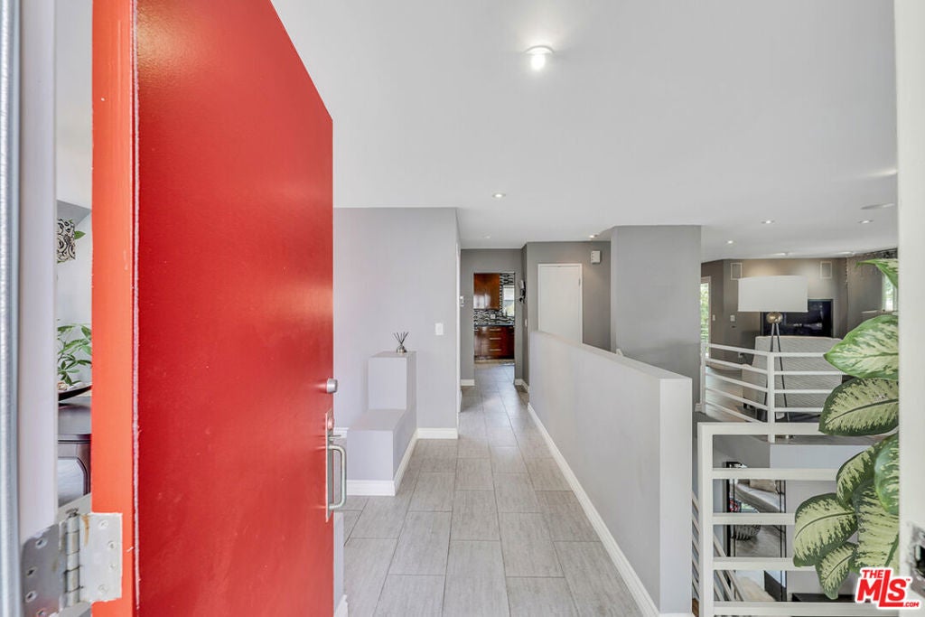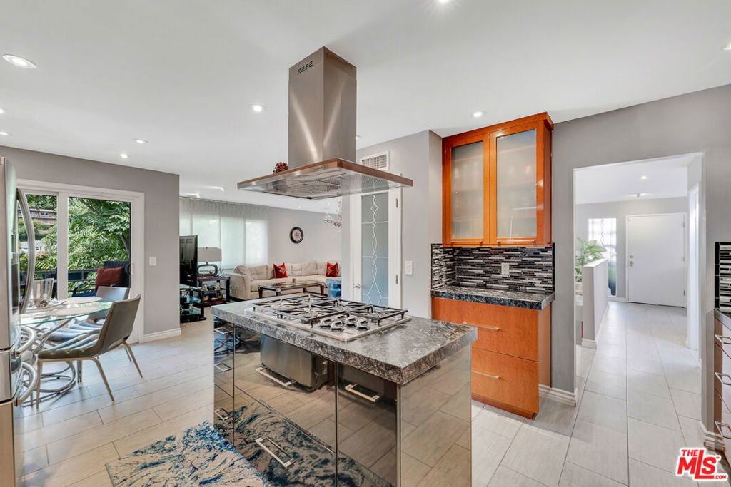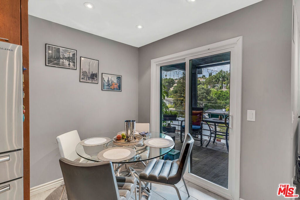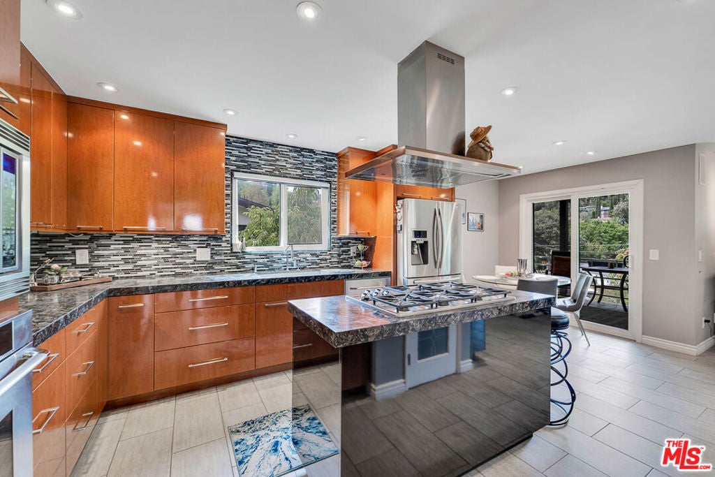 Nestled south of Ventura Boulevard in the highly coveted Sherman Oaks neighborhood, this move-in-ready home offers an exquisite blend of style, comfort, and breathtaking hillside views. Every corner of this residence has been thoughtfully designed to elevate your living experience. On the top floor, a sun-drenched dining room takes center stage, framed by floor-to-ceiling skylight windows that flood the space with natural light which creates a perfect space for memorable meals with loved ones. The chef's kitchen is a culinary dream, boasting premium appliances, a generous center island with a six-burner stove, and abundant storage and walk-in pantry. Step onto the spacious balcony, where your mornings will begin with a cup of coffee and panoramic views that embrace the home. The lower level impresses with dramatic two-story vaulted ceilings and a dedicated living area tailor-made for entertaining. Complete with a stylish bar, wine fridge, and a cozy fireplace, it's the perfect setting for hosting guests or enjoying relaxed evenings. All three bedrooms are conveniently located on a lower level. The primary suite is a retreat unto itself, offering a refined ensuite bathroom with a double vanity, two closets including a walk-in, and a luxurious walk-in shower with a waterfall showerhead and striking black tile design. The second bedroom features a walk-in closet and an elegant ensuite bathroom with a sizable walk-in shower. Third bedroom is just as specious. Outside, the charm continues with a private yard oasis, ideal for weekend barbecues and unwinding amidst the tranquil hillside scenery. Located mere moments from Sherman Oaks' vibrant restaurants, trendy bars, boutique shopping, entertainment, and a top-rated charter school, this home combines unparalleled convenience with the allure of scenic living. Don't miss the chance to make this exceptional property your home! The property now features different furniture.
