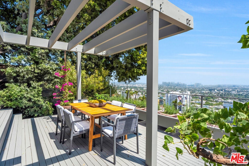 Welcome to "The Miller MCM," a mid-century modern gem perched on a striking overlook just above the Sunset Strip. THE VIEWS ARE UNINTERRUPTED. THESE VIEWS ARE EXCEPTIONAL AND RARE. From dawn to dusk, sweeping panoramic vistas stretch from the glittering skyline of Downtown Los Angeles to Century City and the Pacific Ocean, placing the city's most iconic views entirely at your fingertips. Bright, spacious interiors with high vaulted ceilings offer an architectural statement, blending Zen-inspired calm with mid-century modern elegance. The open kitchen, equipped with dual refrigerators and generous counter space, provides a perfect backdrop for entertaining against endless city-to-ocean panoramas. The top floor is a private master retreat, complete with expansive walk-in closets, a cozy fireplace, and a sun-drenched terrace capturing the horizon in every direction. A dedicated studio space offers a tranquil and creatively inspiring environment, ideal for yoga, meditation, or use as a home office. This is paired with a primary bathroom suite featuring a sauna, creating a sanctuary for wellness and reflection. Outside, secret garden enclaves and terraces provide privacy and serenity, while the expansive lot is perfectly oriented to frame the panoramic views and elevate the outdoor experience. "The Miller MCM" is more than a home, it's a canvas to manifest your private peaceful retreat, combining mid-century modern elegance, architectural creativity, and the dramatic panoramas of Los Angeles.