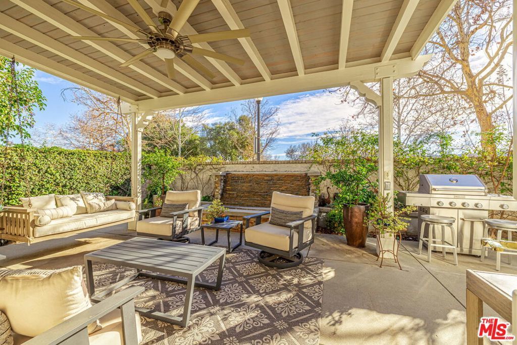 Tucked away at the end of a quiet cul-de-sac in Valencia's coveted Bridgeport community, this beautiful residence offers a rare blend of privacy, sophistication, and everyday comfort. Spanning approximately 2,787 square feet, the home features 4 bedrooms and 4 full bathrooms, including a main-level bedroom and bath ideal for guests or multi-generational living. The thoughtfully designed floor plan is both elegant and functional, highlighted by rich wood flooring, custom millwork, plantation shutters, and designer finishes throughout. At the heart of the home, the remodeled kitchen showcases stone countertops, a generous center island, stainless steel appliances, and seamless flow into the family room with custom built-ins and a cozy fireplaceperfect for both entertaining and relaxed evenings at home. Upstairs, all secondary bedrooms are ensuite, offering privacy and comfort, while the spacious primary suite is complemented by a tastefully updated bathroom retreat.Outside, enjoy the peace and charm of this end-of-court setting, just moments from Bridgeport Lake, parks, and award-winning schools. Residents also enjoy resort-style HOA amenities including a pool, spa, clubhouse, BBQ areas, and scenic walking paths all with no Mello-Roos. A rare opportunity to lease a refined home in one of Valencia's most desirable neighborhoods. Schedule your private tour today.
