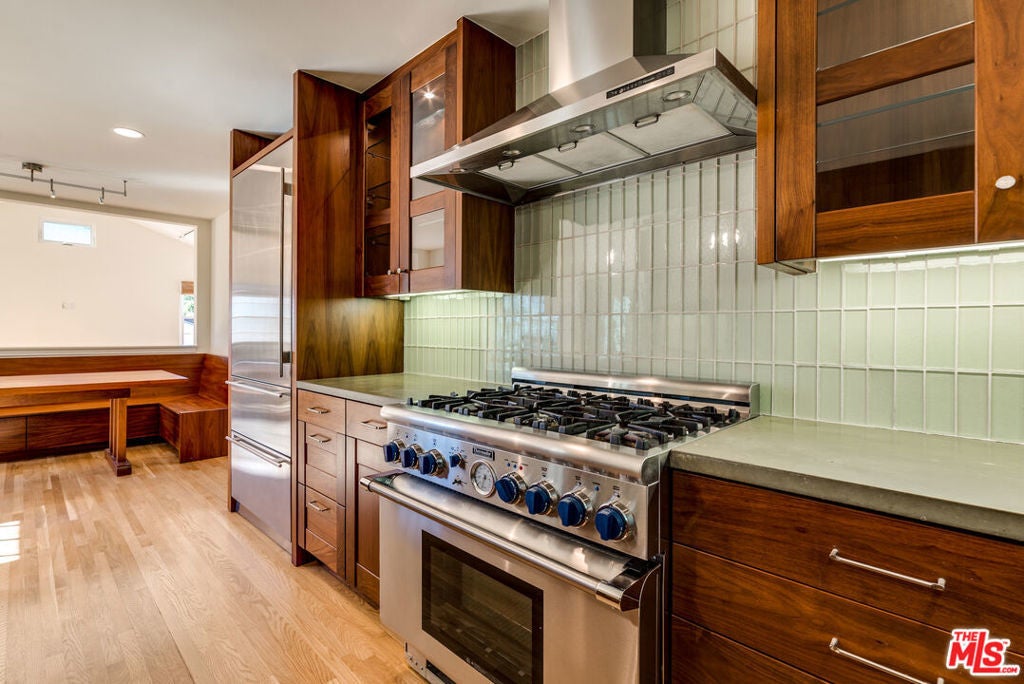 Charming Sunset Park traditional with 3 bedrooms, 2 bathrooms, plus a den and bonus room/garage offering a rare blend of character, light, and indoor-outdoor living. Upon entry, high ceilings, abundant natural light, a cozy fireplace, and beautiful hardwood floors create a warm and inviting atmosphere. The updated kitchen features marble countertops, stainless steel appliances, and a delightful dining nook. In addition to three well-appointed bedrooms, the den provides flexible space ideal for a home office or playroom. Step outside to a private outdoor retreat with a spacious deck and lush yard, complete with lemon and mandarin trees perfect for entertaining or relaxing. Ideally located along vibrant Ocean Park Boulevard, just a short walk to five nearby parks offering sports facilities, playgrounds, dining, and a farmers market, including Cloverfield, Marine, Ashland, Virginia, and Ozone Park. Enjoy peek-a-boo ocean views from the deck, or take a quick stroll to Main Street and the beach, everything you love about the quintessential Santa Monica lifestyle is just blocks away.