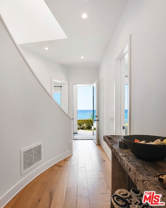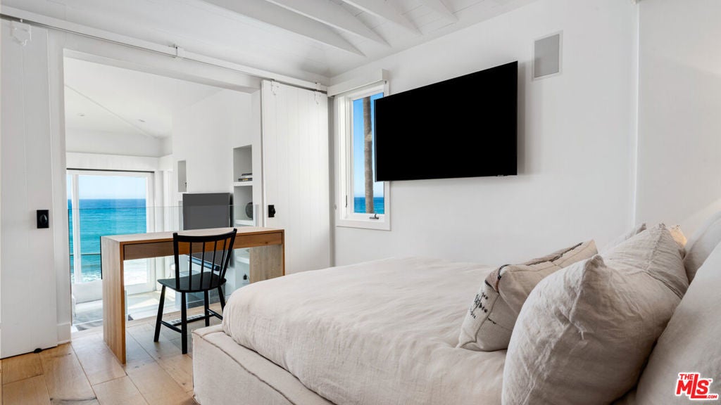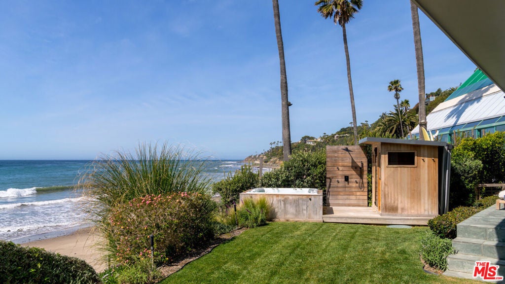 Live like you are on a permanent vacation in this oceanfront home nestled in a low bluff above the beautiful Pacific ocean offering direct beach access to one of the most private and coveted beaches in Malibu. This property sits on a private gated street down off of PCH with an incredible oceanfront location where tranquility and an indoor/outdoor lifestyle are combined. Top of the line finishes and fixtures throughout. The interior spaces of the home are impeccably furnished and offer large glass doors in all rooms that open to expansive patios and balconies allowing the ocean breezes in. The primary suite is on the oceanside with a fireplace, large walk-in closet and a spa like bathroom with bath tub and steam shower. Three additional bedroom suites that each offer sophistication and style while being incredibly comfortable for your guests. Outdoor fire pit with built-in seating area, hot tub, shower and sauna set among the perfectly landscaped grounds make the perfect setting for relaxing and watching the surf during the day or the sunset. Living in a location like this where you see the rugged bluffs meet the sea and the dolphins playing out front is so rare and special!