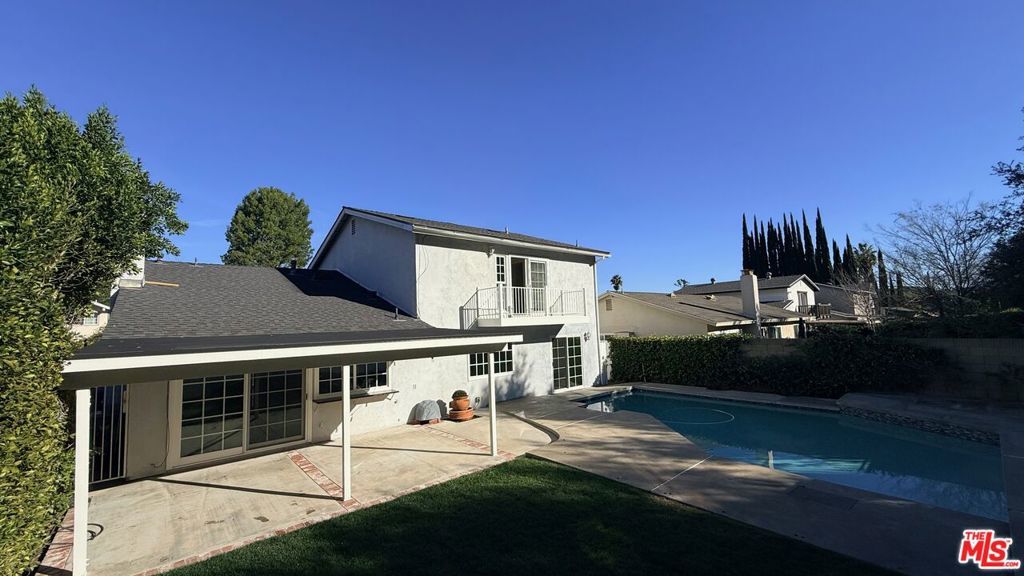 Located in the highly desirable Hillrise community of Agoura Hills, this beautifully updated two-story residence offers an exceptional leasing opportunity within the award-winning Las Virgenes Unified School District, serving Willow Elementary School, Lindero Middle School, and Agoura High School. Set in a peaceful, established neighborhood, the home provides a rare combination of comfort, functionality, and proximity to top schools, shopping, dining, parks, and outdoor recreation. From the moment you enter, the home feels bright, welcoming, and thoughtfully designed. The formal living and dining rooms create inviting spaces for entertaining and everyday living, highlighted by an open staircase and abundant windows that fill the home with natural light. Recent updates enhance both the style and livability of the home, creating a fresh yet timeless feel throughout. The flowing floor plan offers both openness and separation, allowing for comfortable day-to-day living and effortless gatherings.At the heart of the home is the updated kitchen, featuring stone countertops, ample cabinetry, and a seamless connection to the family room. This central living space is ideal for relaxed evenings, family time, or hosting friends. A wine closet adds a refined and functional touch, enhancing the home's entertaining appeal.The main level includes a bedroom and full bathroom, providing flexibility for guests, extended family, or a private home office. Upstairs, the primary suite serves as a serene retreat with a sitting area, private balcony showcasing scenic mountain views, and an en-suite bathroom. Two additional well-proportioned bedrooms and a full bathroom complete the upper level, offering comfortable accommodations for a variety of living needs.Step outside to a private backyard oasis, where the sparkling pool takes center stage. Designed for both relaxation and enjoyment, the outdoor space features a generous pool ideal for warm summer days, a grassy lawn, covered patio, serving bar, and beautifully landscaped grounds framed by tranquil mountain views. Whether enjoying quiet mornings poolside, hosting weekend gatherings, or unwinding after a long day, the backyard offers a true extension of the home's living space and an ideal setting for indoor-outdoor living.Conveniently located near local shopping centers, restaurants, hiking trails, and recreational amenities, this home delivers an ideal Agoura Hills lifestyle with easy access to both everyday conveniences and nature. With its desirable Hillrise community setting, thoughtful updates, resort-style pool, flexible floor plan, and placement within one of the most sought-after school districts in the area, this residence presents a wonderful opportunity for those seeking a high-quality lease in a family-friendly and well-connected neighborhood.