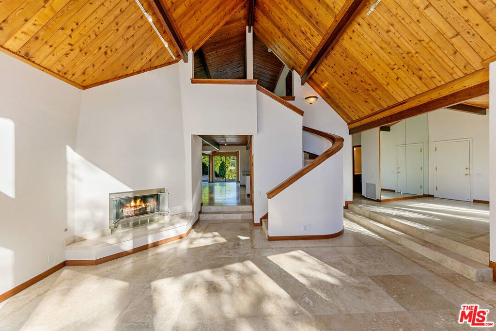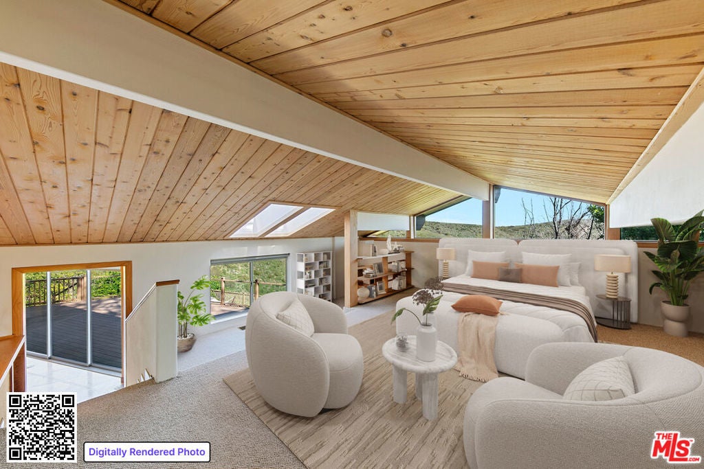 A distinctive architectural residence that seamlessly blends design integrity, thoughtful upgrades, and expansive indoor-outdoor living with ocean outlooks. Warm natural materials and clean lines define the home, highlighted by vaulted wood plank ceilings with exposed beams that add volume and character to the main living spaces. Expansive walls of glass frame ocean, canyon, and hillside views while bathing the interiors in natural light. The open-concept living and dining areas feature stone flooring and open directly to multiple outdoor decks, creating effortless spaces for entertaining or quiet enjoyment of the natural surroundings. The kitchen is beautifully appointed with stainless steel appliances, custom wood cabinetry, stone countertops, and upgraded finishes, flowing naturally into the main living area for everyday comfort and hosting. This thoughtful design continues throughout the private spaces with wood-beamed ceilings and oversized windows, preserving a calm, cohesive aesthetic. Set on a generous parcel, the property offers privacy and tranquility, with outdoor areas designed to capture views and strengthen the connection to nature. Ideally located just minutes from Latigo Beach and a short drive to the restaurants and shops of central Malibu. Disclaimer: Some photos may include virtual staging. Furniture, decor, and furnishings shown are for illustrative purposes only and are not included in the lease.