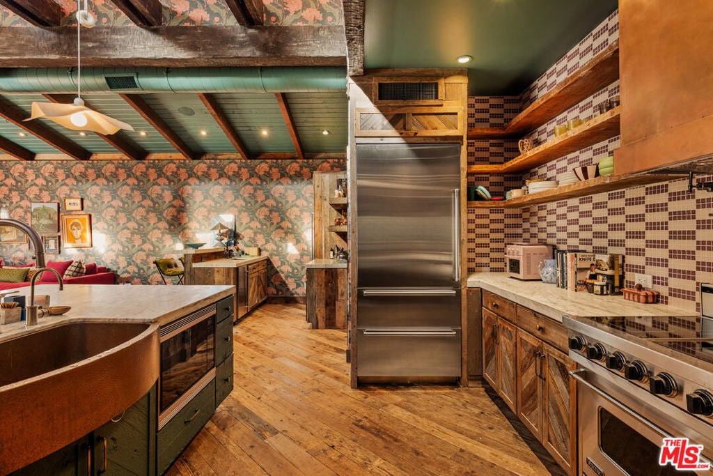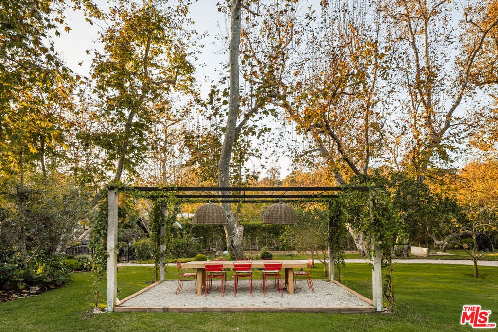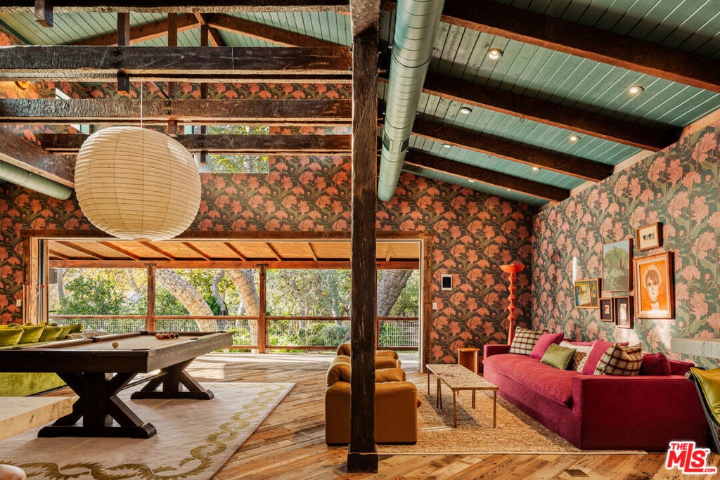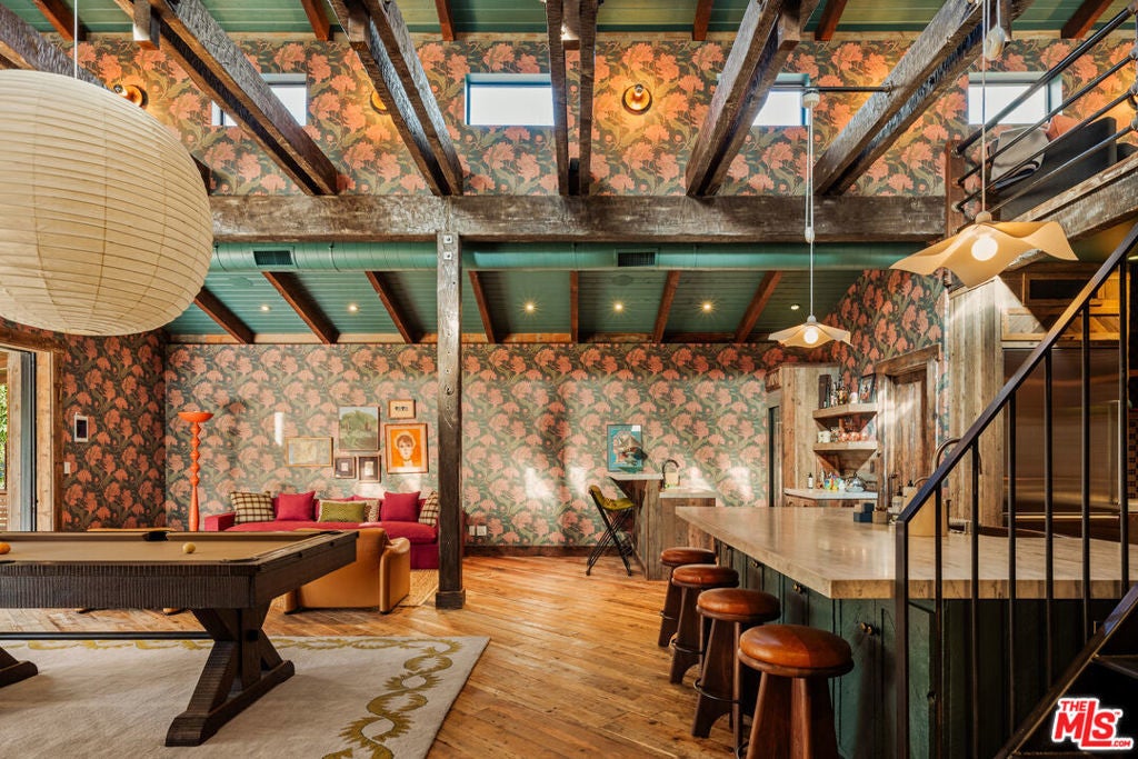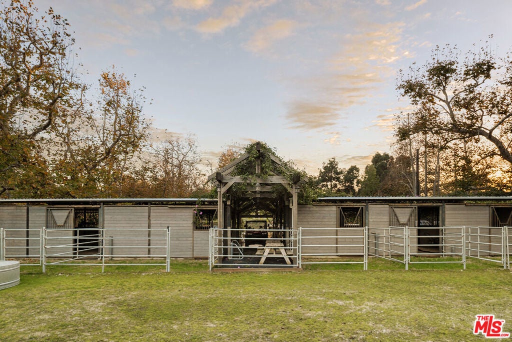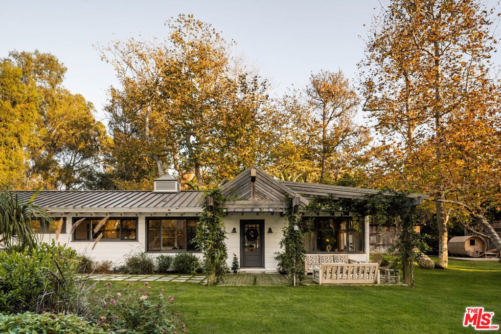 Nestled on a serene 1.86-acre estate in one of Malibu's most idyllic settings, Cranberry Farm offers unparalleled privacy and luxury. A long private driveway leads to a secluded compound featuring a charming three-bedroom main residence with a gourmet kitchen boasting rainbow onyx counters and top-tier appliances, sun-drenched living areas with a fireplace, heated hardwood floors throughout, and a lavish primary suite opening to lush grounds with a spa-like bath including a soaking tub, marble shower, and custom concrete double vanity. Complementing the main house is a versatile repurposed barn ideal for everyday living or entertaining, complete with soaring ceilings, a billiards area, open kitchen with oversized island, bar, lounging and media spaces, plus a peaceful loft bedroom with treetop views and ensuite bath. Additional highlights include a detached all-glass gym overlooking the grounds with outdoor sauna, cold plunge, and hot tub; a recording studio; permanent/mobile Airstream guest quarters; horse stables with riding area; bocce ball court; chicken coop; 4 car garage and expansive landscaped grounds with plentiful grassy lawns. The entire property is seamlessly integrated with a full Control 4 system, Lutron lighting, and Sonos audio for effortless modern living.
