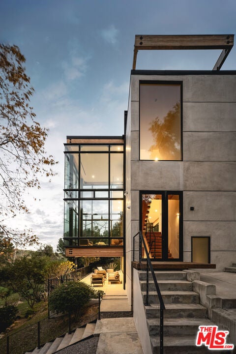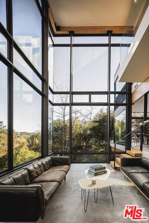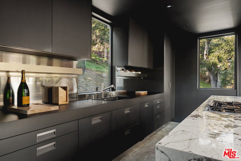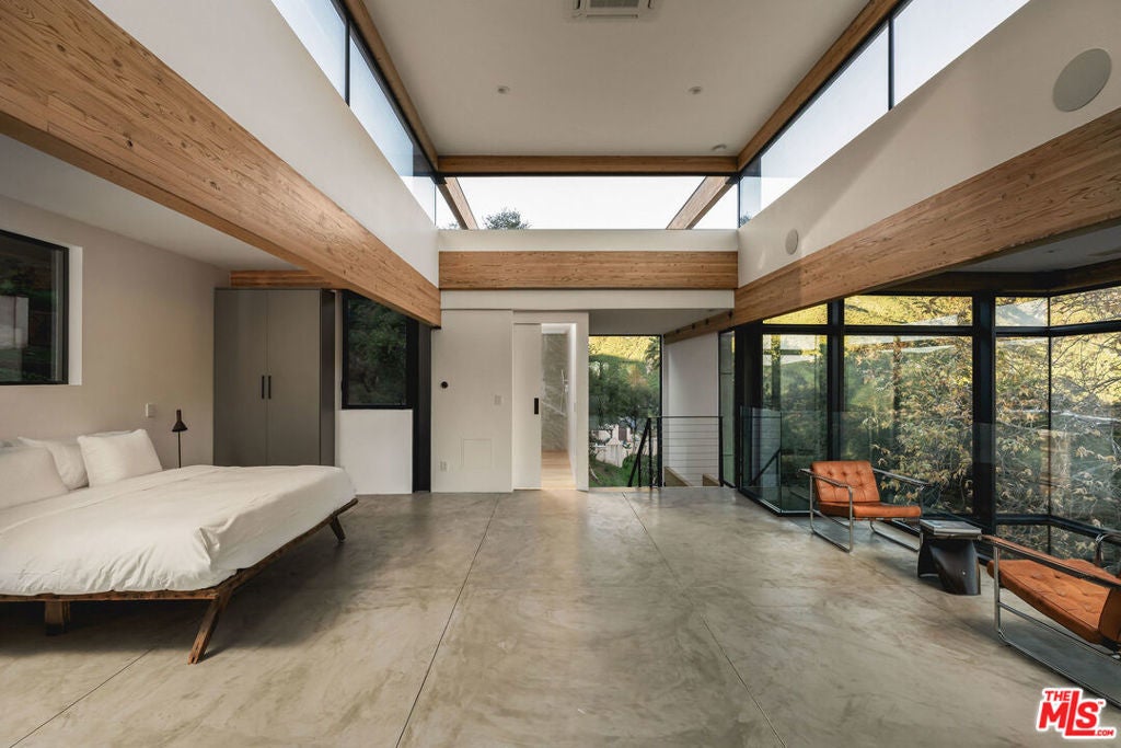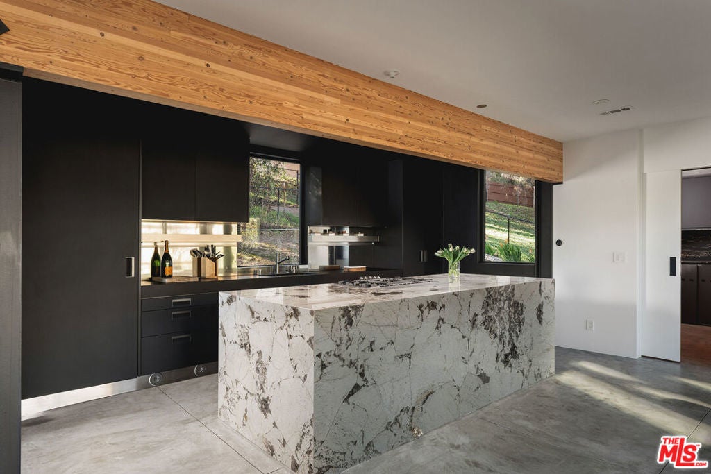 A striking expression of Southern California modernism, 2315 Live Oak Meadows Road is a rare architectural residence designed by Finn Kappe, set on an acre in the secluded hills of eastern Malibu. Framed by mature oaks and canyon terrain, the glass-wrapped home offers an exceptional sense of privacy, light, and connection to nature-while remaining remarkably accessible, just a six-minute drive down Las Flores Canyon to PCH, Malibu's beaches, and the area's most sought-after dining and lifestyle destinations. Walls of glass, dramatic volumes, and layered indoor-outdoor spaces define the home's architecture. Natural light moves throughout the residence, capturing canyon and hillside views and reinforcing a seamless dialogue between the interior and its natural surroundings. Multiple terraces, decks, and outdoor living areas extend the home into the landscape, creating an environment that feels both expansively open and deeply private. The residence is currently configured as two bedrooms and three bathrooms, arranged in an open, modern layout ideal for both everyday living and entertaining. The main living spaces are anchored by a custom Arclinea kitchen with bespoke Gaggenau appliances and a sculptural marble block island, opening directly to a custom deck and outdoor entertaining areas. Concrete floors with radiant heat, integrated lighting, and immersive audio-visual systems support a refined yet relaxed living experience. The home underwent a comprehensive down-to-the-studs renovation in 2018, preserving its architectural integrity while integrating modern systems and curated finishes. Improvements include commercial-grade glazing throughout, a new roof, new electrical and plumbing systems, all-new septic plumbing, re-imagined bathrooms with custom slab and tile work, custom interior and exterior railings, an oversized pivot entry door, a full Lutron lighting system, a dedicated home theater, embedded speakers, and dual-zone HVAC. All interior and exterior wood surfaces were professionally sanded and re-stained. The fully fenced acre features a gated drive, landscaped grounds, and a collection of mature trees and plantings that reinforce the home's peaceful, retreat-like setting. The property also offers potential opportunities for a future swimming pool and for conversion of the existing carport into a garage or possible guest house (buyer to verify). Tucked away in a quiet hillside enclave yet moments from Carbon Beach, Nobu, Soho House, and central Malibu, 2315 Live Oak Meadows Road presents a rare opportunity to own a true architectural residence where design, landscape, and location converge.