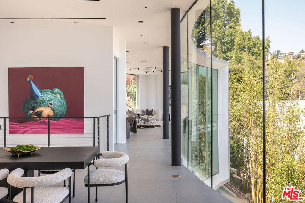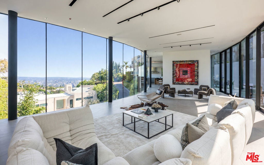 Introducing "The Curve on Thrush", a newly constructed architectural gem nestled in the exclusive Bird Streets above the Sunset Strip. Designed by the award-winning Tag Front Architects, whose portfolio includes some of the most celebrated modern residences in Los Angeles, this sculptural glass home stands as a bold expression of art, architecture, and lifestyle at the highest level. With its sweeping curved glass facade and striking steel form, "The Curve on Thrush" is more than a residence, it is a statement piece. Elevated above the city and surrounded by multi-million dollar estates, it offers absolute privacy while being moments from the very best of Los Angeles. From world-class dining and high-fashion boutiques to iconic nightlife, this home places you at the intersection of Sunset Strip energy, West Hollywood culture, and Beverly Hills luxury.Inside, the interiors unfold with dramatic scale and seamless flow. Soaring ceilings, a floating glass staircase, and expansive open-plan living areas create a gallery-like experience designed for both grand entertaining and intimate living. Every element reflects the architectural precision and material mastery that define Tag Front's work.Three luxurious bedroom suites are appointed with spa-grade finishes and filled with natural light. A private theater, elevator access, and full smart home integration elevate the living experience even further. Outdoors, a sleek pool and spa are framed by drought-tolerant landscaping, blending sustainability with serenity.A rare offering in one of Los Angeles' most coveted enclaves, The Curve on Thrush is not just a home, it is a lifestyle, a legacy, and a landmark of contemporary design.
