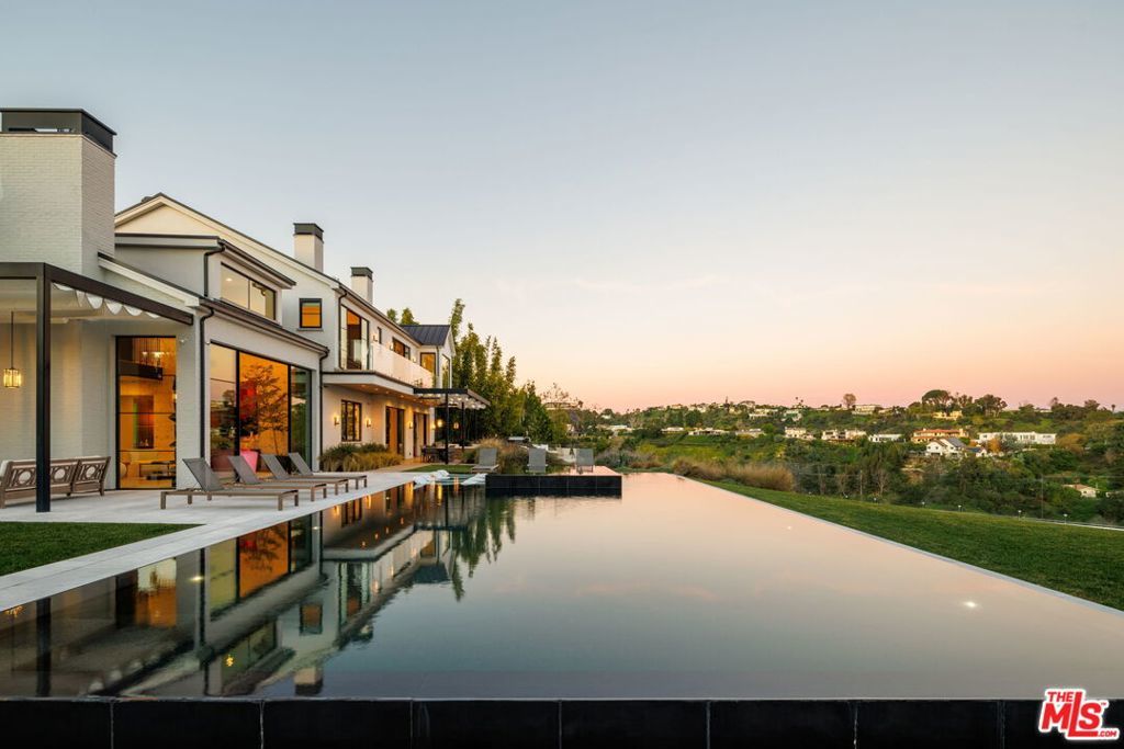 Rare Combination of Ken Ungar Design + Head on City Views. Exquisite Interiors by Adam Hunter. Napa Valley modern farmhouse. High quality construction by Shain Development. Custom in every moment and detail. 9,170 Sq Ft+. Excellent floor plan all opening to grounds and views beyond. A soaring 2-story entry and living room to welcome guests. Gourmet kitchen belongs in a showroom. Upstairs features a vast primary bedroom suite with an editorial bathroom that overlooks the city. Total of 7 generous bedrooms and 8 baths. Lower level Entertainment floor offers all the finest amenities including a gym, wine cellar and major screening room. The grounds include an epic zero-edge infinity pool with fire feature, large flat grassy area, and pickleball court. Prime lower Bel Air, minutes to Sunset.