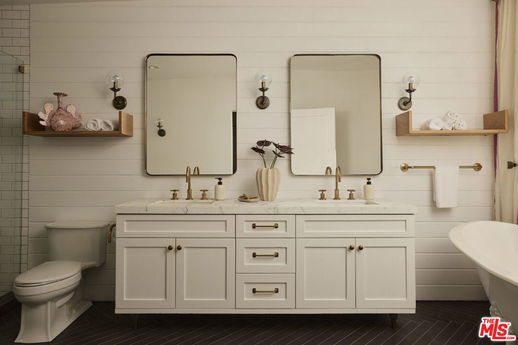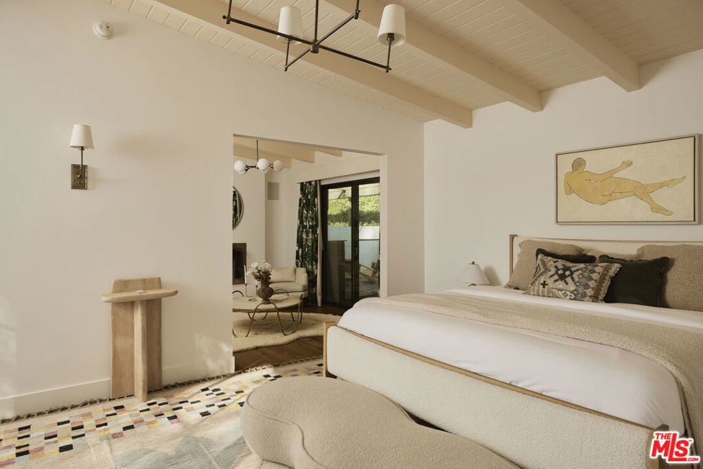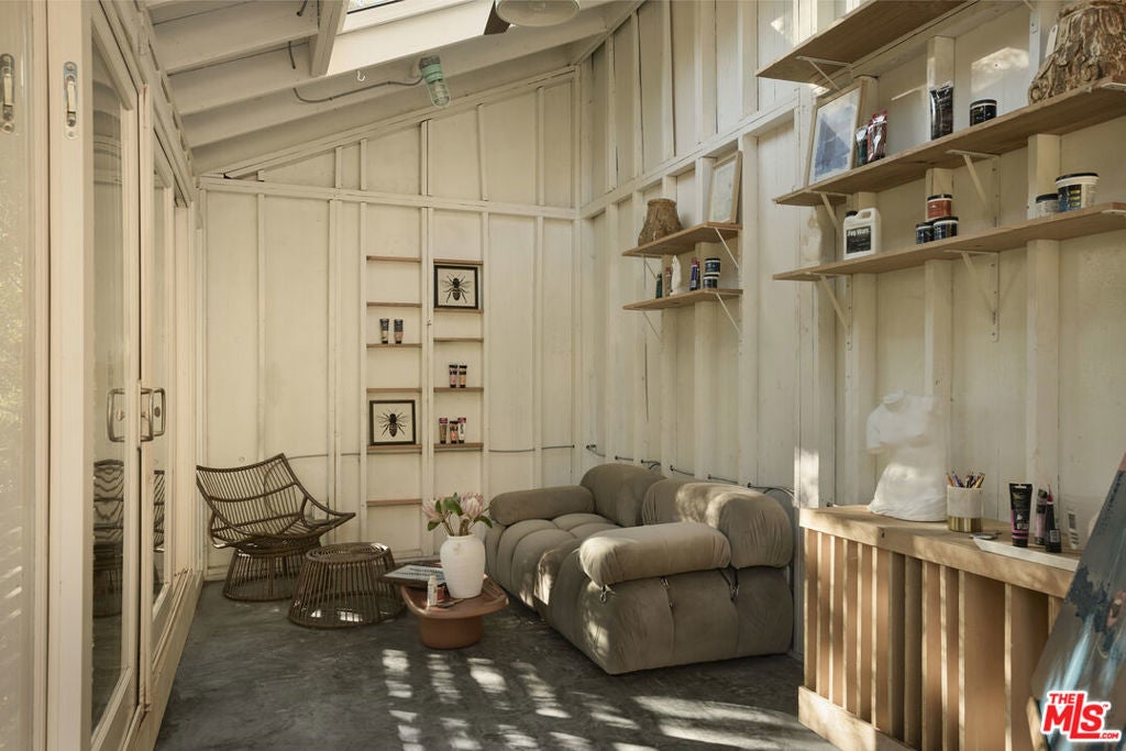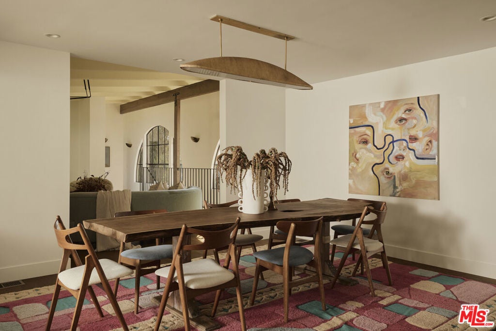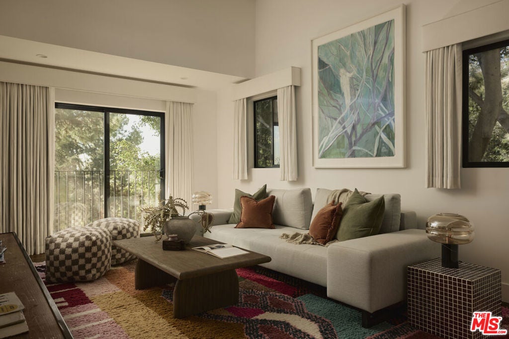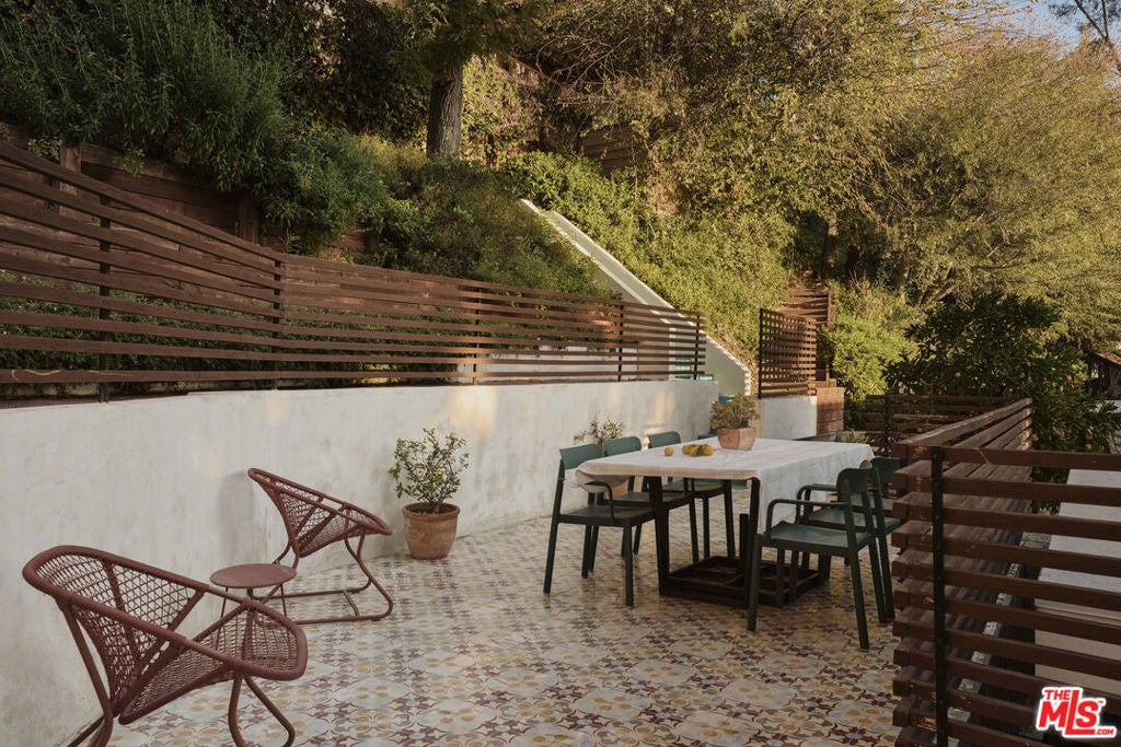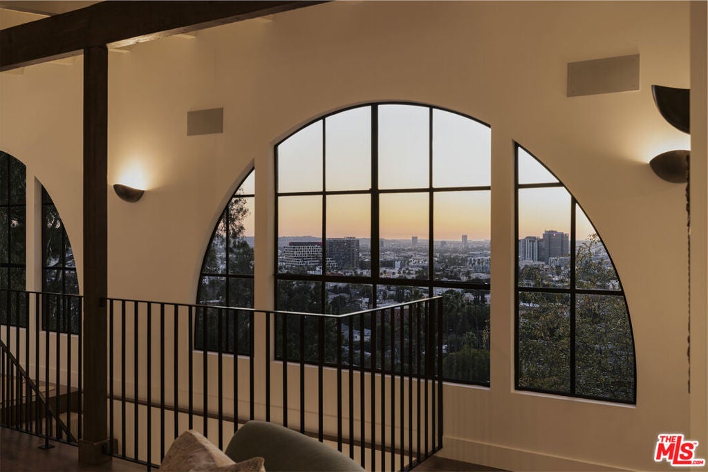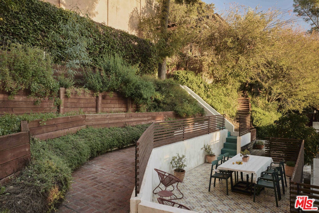 A refined and warmly modern residence in the Los Feliz Oaks, this expansive mid-century inspired estate commands sweeping jetliner views across the city. Thoughtfully designed and layered with serene sophistication, the home offers an effortless blend of contemporary comfort and timeless architectural cues. The entry level hosts two generous bedrooms, a classic hall bath, a finished, extra-large storage room, and an additional en-suite bedroom ideal for guests seeking privacy. Ascend to the main living floor, where walls of glass frame uninterrupted vistas and bathe the interiors in luminous natural light. The living room, anchored by a sculptural fireplace, echoes the clean lines and warmth of mid-century design and flows seamlessly into a dining area with custom bay-window seating and statement lighting. Also providing access to an outdoor lounge area. The kitchen features an oversized center island, a breakfast nook, and abundant custom storage, all opening to a cozy family room with city views, a guest bath, and a laundry room. The primary suite functions as a tranquil, hotel-inspired retreat: a fireside sitting area opens directly to the outdoors, while the spa bathroom offers a soaking tub perfectly positioned to capture cinematic views and ethereal light throughout the day. A custom extra-large dressing room with a custom vanity provides a beautifully curated space for wardrobe and accessories. The lower-level garage conversion creates an inspiring studio workspace with bespoke built-ins and accordion glass doors that dissolve the boundary between indoors and out. The grounds unfold across multiple terraces, providing distinct environments for recreation, creativity, and large scale entertaining. A dedicated studio adjacent to the thriving vegetable and herb garden is ideal for pottery, greenhouse use, or children's activities. Additional outdoor amenities include a grassy side yard, a dining terrace, a sun deck with an outdoor shower, and a vibrant orchard woven into the mature hillside landscape. At the estate's uppermost level, a dramatic pergola-topped entertaining deck with a complete outdoor kitchen and bar. This deck showcases unforgettable sunsets and panoramic city views. Privately positioned at the end of a cul-de-sac and elevated well above the street, this exceptional retreat embodies the elegance, privacy, and enduring allure of California living.