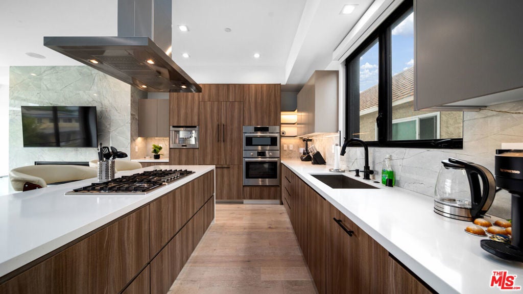 Perched in the heart of Venice, California, at the prestigious address of 2435 S Penmar Ave, awaits a magnificent architectural marvel that epitomizes the very essence of modern coastal living. This is no ordinary home; it's a luxurious sanctuary where elegance and sophistication harmoniously blend with unparalleled comfort. Offering an impressive 4 bedrooms and 4.5 bathrooms, this sprawling residence is a haven of opulence, meticulously designed for short or long-term rental.Upon crossing the threshold, you'll be immediately struck by the cascading natural light that gracefully floods the interiors, courtesy of the grand, sun-kissed windows and soaring 10-foot ceilings. Every inch of this home is a testament to artful design and meticulous craftsmanship.The ground floor is a haven of convenience, boasting a 2-car enclosed garage and guest quarters exquisitely appointed with a bedroom and a full bath, seamlessly connected to an inviting outdoor patio that beckons you to unwind in total seclusion.Journeying to the entertainment level, you'll be met by an open kitchen that is nothing short of a culinary masterpiece. Here, a designer fireplace, adorned with custom tile backsplash, exudes warmth and charm. Multi-slide pocket doors effortlessly blur the line between indoor and outdoor spaces, inviting the ocean breeze to caress your senses. It's a space where culinary artistry meets oceanic serenity.The gourmet kitchen itself is a work of art, boasting top-of-the-line Bosch appliances, including a built-in coffee machine that ensures each morning begins with a perfect cup of java.Ascending to the third floor, you'll discover two resplendent en-suite bedrooms, each bearing its own walk-in closet for indulgent storage. And just steps away, a convenient laundry room adds a touch of practicality to this sanctuary of luxury.But the crowning jewel of this extraordinary residence awaits atop the fourth level, where the primary suite reigns supreme. Here, luxury knows no bounds, as the entire floor is dedicated to your private haven. Step onto your private terrace and behold breathtaking vistas of the cityscape, mountains, and coastline. An indoor/outdoor fireplace bestows warmth and romance, while an expansive walk-in closet ensures that your wardrobe is as finely curated as your lifestyle.Beyond the four walls of this magnificent abode, you'll find yourself immersed in the vibrant Venice lifestyle. Abbot Kinney and Rose Avenue, with their eclectic mix of dining and shopping, beckon you to explore. And when the allure of the beach calls, it's just a leisurely stroll away.This fully furnished, turnkey residence is not just a home; it's a masterpiece of architectural achievement where luxury, artistry, and coastal living converge in an unparalleled display of opulence. Make it yours, and let the grandeur of Venice embrace you in its warm and stylish embrace.