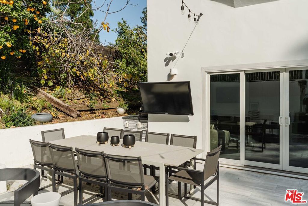 Set in the famed Marquez Knolls, this contemporary residence offers serene privacy in a truly bucolic setting. Guests are welcomed by a stately foyer with gallery walls, leading into an expansive open floorplan designed for seamless entertaining. The great room, anchored by a sophisticated fireplace and formal dining area, is bathed in natural light from large southern-facing windows. The chef's kitchen is a masterclass in design, featuring a Wolf 6-burner double oven, Sub-Zero fridge/freezer, and custom cabinetry centered around a striking waterfall countertop with informal dining. An inviting family room adjoins the kitchen, creating a perfect hub for daily life. Upstairs, the primary suite serves as a private sanctuary, detailed with custom built-ins, skylights, and a large custom closet. The spa-like ensuite bath features dual vanities and an oversized shower with a bench. Three additional bedrooms off the landing offer breathtaking canyon and ocean vistas, sharing a bright, designer bathroom with tub and shower. The resort-caliber backyard is an entertainer's dream, featuring a saltwater pool with a baja shelf, a spa, and a built-in firepit lounge. A dedicated BBQ station services the alfresco dining terrace, while a lush, fenced lawn wraps around the home. The home is completed by a 2-car garage that also functions as a gym along with a laundry area. Located in a tight-knit community known for its resilience and charm, this home offers the quintessential Palisades lifestyle.