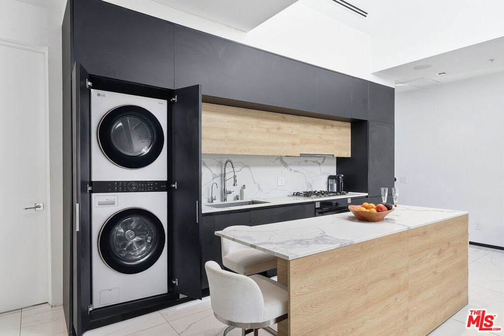 Boutique Design Meets Turnkey Comfort in WeHo. This fully furnished 1-bedroom designer residence delivers a complete lifestyle experience in the heart of West Hollywood. Dramatic vaulted ceilings and a custom skylight frame the open living space, featuring Rove Concepts and RH furnishings as well as Hermes and Louis Vuitton accents. The chef's kitchen boasts Miele appliances, Italian matte-black cabinetry, and a waterfall-edge island. Smart features include SONOS surround sound throughout (including on the private rooftop deck), Nest climate control, blackout blinds, and a sleek in-closet washer/dryer. The spa-style bath rivals a five-star hotel with ambient lighting and a rain shower. Top it all off: the private rooftop deck comes fully equipped with dining + lounge furniture, BBQ, string lights, and skyline views. Two gated parking spaces with EV charger included. This fully furnished rental comes centrally located in a boutique 8-unit building just steps from Melrose and Santa Monica Blvd with local hotspots like Laurel Hardware, Ysabel, Barney's Beanery, and WholeFoods. This condo is a curated blend of modern luxury and smart convenience.