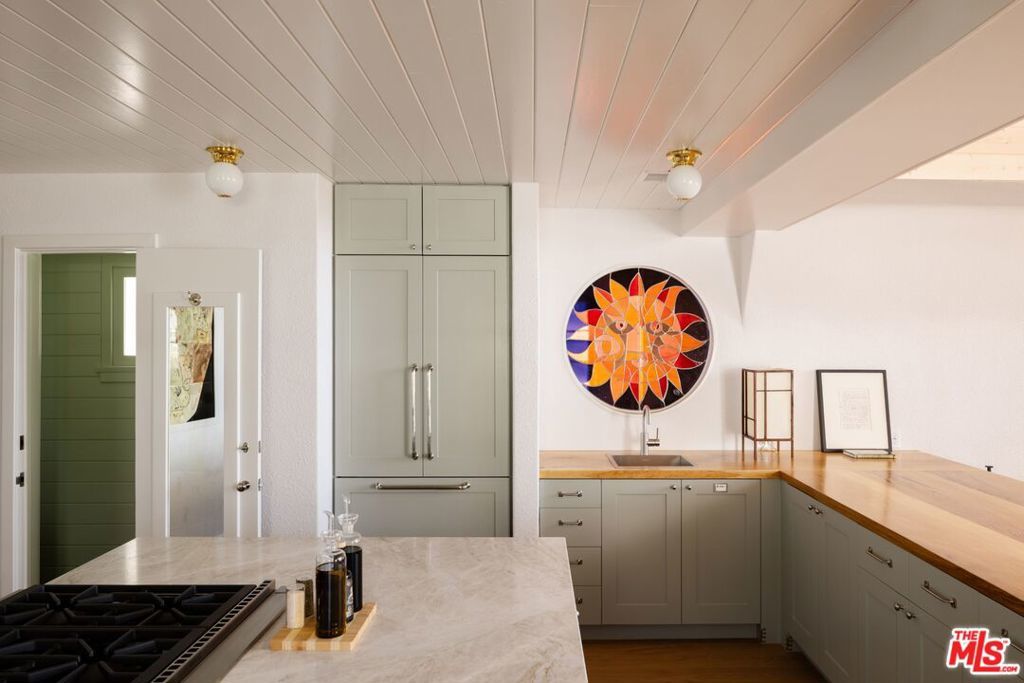 Historic Malibu Colony home, on 37.5 feet of beach, is located in the sandiest section of The Colony. Built in 1928 and fully restored by preservation specialist Tim Gleason, who married the spirit of east-coast Stanford White beach houses with a classic Malibu beach vibe. Walking in the front gate along the flagstone path, the scent of star jasmine transports you to the golden age of The Colony. Two-story beachside windows fill the living room with light and lead to a private patio ideal for entertaining. The home offers five bedrooms and four and one-half baths, including separate guest quarters with a kitchenette. A spacious, open modern kitchen, high ceilings, and an original oversized clinker brick fireplace enhanced by the latest and greatest modern amenities complete the residence. Nothing else combines classic, well-appointed details with a laid-back beach lifestyle.