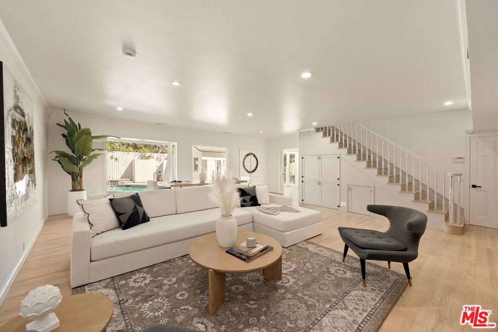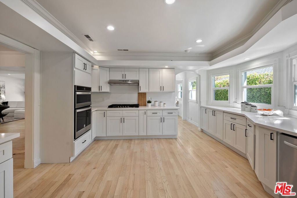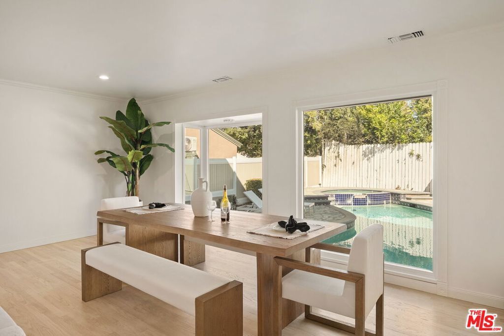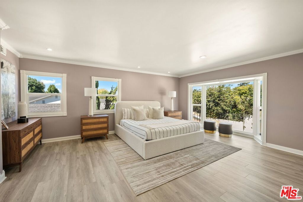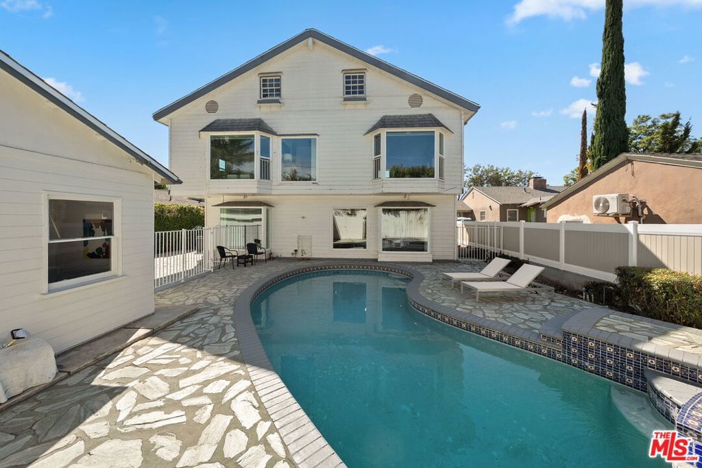 Discover this rare opportunity to own a fully remodeled five-bedroom, four-bathroom residence offering over 4,300 square feet of luxurious living space in the heart of Studio City on a peaceful, quiet street.. A half-moon front driveway framed by mature landscaping sets a grand first impression, while gated entry and covered parking provide both privacy and convenience. Inside, high ceilings, expansive bay windows, and beautiful hardwood flooring throughout create a warm and inviting atmosphere that blends timeless charm with modern sophistication. The open-concept floor plan features spacious living and dining areas that flow effortlessly into a stunning chef's kitchen with quartz countertops, custom cabinetry, stainless-steel appliances, and designer fixtures perfect for entertaining or everyday living. Upstairs, the bedrooms are generously sized, including an exceptionally large primary suite with a walk-in closet and a spa-inspired bathroom featuring an oversized vanity, a soaking tub, and a glass-enclosed shower. Each additional bath has been tastefully updated with elegant tilework, designer hardware, and premium finishes. The top floor offers a versatile bonus level charming, light-filled bonus space ideal for a playroom, media lounge, or creative studio. A flexible ADU-style suite provides the perfect option for a home office, guest quarters, or gym, adapting easily to today's lifestyle needs. Step outside to a resort-style backyard complete with a sparkling pool, spa, and stone patio designed for effortless indoor-outdoor living. Perfectly situated on a quiet, tree-lined street just moments from Ventura Boulevard, Tujunga Village, top-rated schools, and fine dining, this exceptional Studio City home perfectly combines space, style, and sophistication in one of the Valley's most desirable neighborhoods.