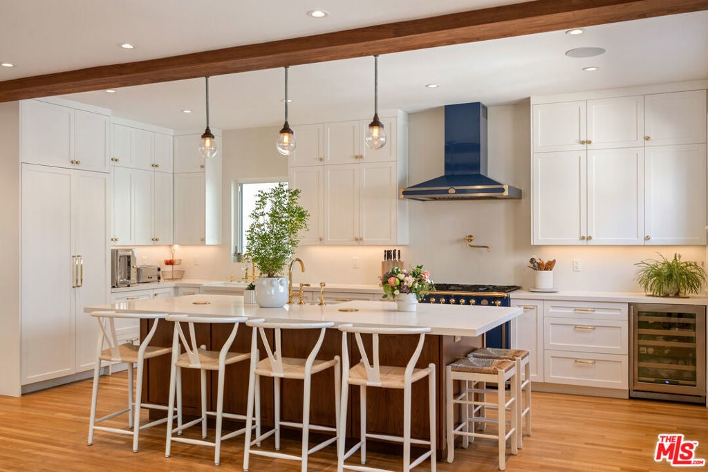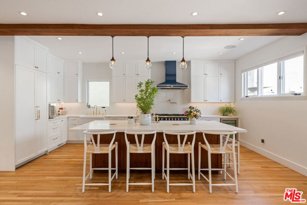 Bespoke Coastal Sanctuary on the Iconic Silver Strand - Located in the heart of the Silver Strand, this home stands as one of the most meticulously dialed-in properties in this sought-after coastal neighborhood. Just seconds from the sand and steps to the scenic Lighthouse Bridge, this rare 3,500+ sq ft offering pairs architectural precision with relaxed coastal living. A solid walnut front door opens to sunlit interiors with white oak floors and a sculptural walnut staircase. French doors and a custom back-lit walnut skylight with triple-laminated glass wash the space in natural light, while a dramatic wood-burning/gas fireplace wrapped in eight slabs of granite anchors the great room. The chef's kitchen impresses with a La Cornue range, Liebherr Monolith refrigeration, Rohl fixtures, Caesarstone surfaces, and custom walnut cabinetry. A true Dolby Atmos media room (14 speakers, double 3M soundboard) delivers cinematic immersion. The serene primary suite features an Amerec steam shower and cast-iron clawfoot tub; all baths showcase Starfire glass and Italian Marble, and all closets are cedar-lined and feature customized built-ins. Six skylights and multiple outdoor moments - an English-style front walk, private courtyard, bamboo-decked roof deck and lush, low-maintenance landscaping invite effortless indoor/outdoor living. Rare for the beach, a climate-controlled, insulated 4-car garage with built-ins adds exceptional functionality, while an infrared sauna brings wellness home. Set within a private, tightly held enclave with 24/7 security patrol, it's a short stroll to Abbot Kinney, the Venice Canals, the Farmers Market, and the Westside's best dining and boutiques.