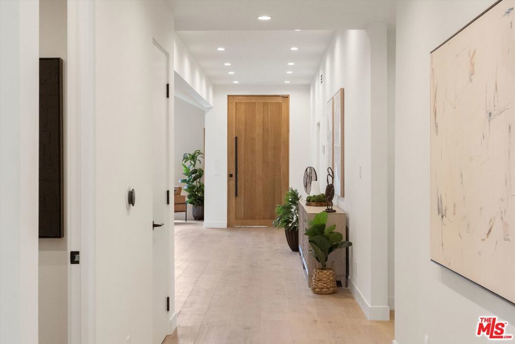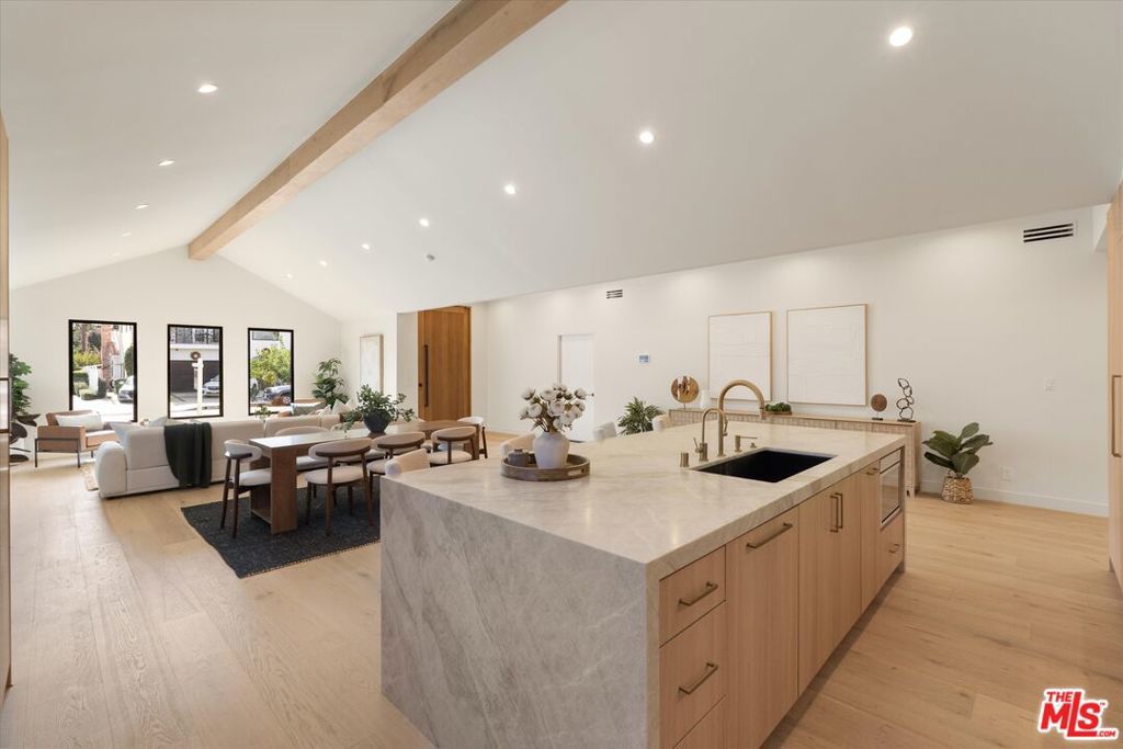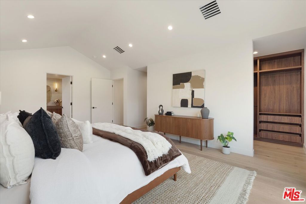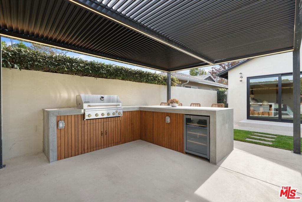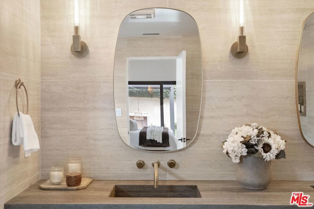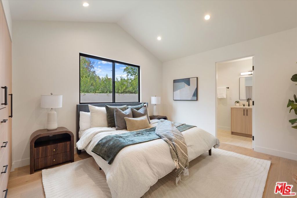 Fully remodeled, single-story Mediterranean Modern tucked in one of Sherman Oaks' most sought-after pockets of Chandler Estates! This 3 bedroom, 3.5 bathroom, single story home was taken down to the studs and completely reimagined with today's luxury buyer in mind. A number of major upgraded have been added to include new electrical, plumbing, drywall, HVAC, roofing, doors, windows and top of the line designer finishes throughout. The exterior showcases authentic Jerusalem stone, while inside features soaring vaulted ceilings, Burton Way hardwood floors, and oversized windows flood the open floor plan with natural light, creating an airy, open aesthetic. The chef's kitchen features Taj Mahal quartzite countertops, custom whitewashed Santa Barbara rift oak cabinetry with dark walnut accents in the primary suite, all crafted with Blum soft-close mechanisms, European hinges, and undercount tandem slides, with premium Thermador appliances. Each sizable bedroom includes its own ensuite bathroom, finished with travertine stone, Venetian plaster walls, and a standout green travertine powder room. Additional upgrades include side by side LG washer/dryer, Sonos surround system, Starlink WiFi built into the home, Amazon smart tablet control panel, Ring doorbell, EV charging capabilities and built-in cameras for modern convenience and peace of mind. The entertainer's backyard is your private oasis complete with an outdoor kitchen, wine fridge, built-in BBQ, and covered lounge surrounded by lush, low-maintenance landscaping. Turnkey, timeless, and truly one of a kind.