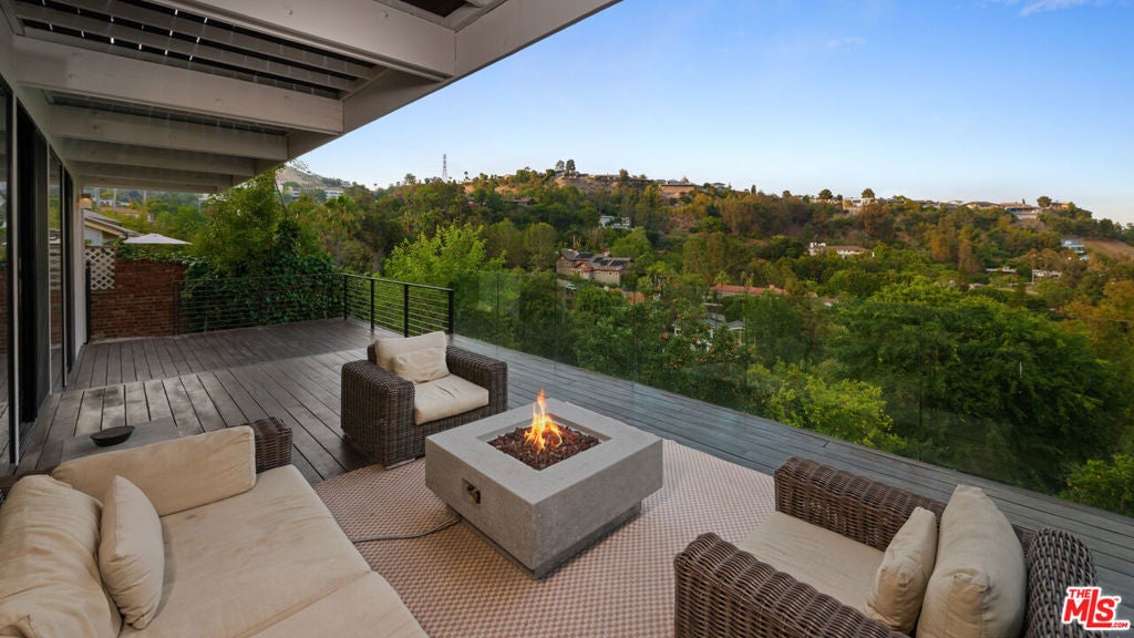 Perched in a celebrity-favored enclave of Outpost Estates, this is the kind of Hollywood Hills home that instantly sets the tone; infinity-edge pool, spa, and a front-row seat to the skyline. It's bold, stylish, and effortlessly cool, blending timeless mid-century character with modern sophistication, all framed by some of the most breathtaking views in Los Angeles. Inside, the home offers 4 bedrooms and 3 bathrooms with clean lines, open living spaces, and seamless indoor-outdoor flow. A chef's kitchen with high-end appliances anchors the heart of the home, opening to sun-drenched interiors wrapped in walls of glass that keep the landscape in constant view. Outside, the home opens to expansive decks and a show stopping infinity-edge pool with a Baja shelf and spa, all set against a cinematic backdrop of city lights and canyon views. Whether you're hosting at golden hour or enjoying a peaceful morning coffee, the setting feels unforgettable. Quiet, private, and long loved by artists and creatives, this is more than a home, it's a full Hollywood Hills lifestyle. A rare opportunity to own a turnkey hillside stunner in one of L.A.'s most iconic neighborhoods.